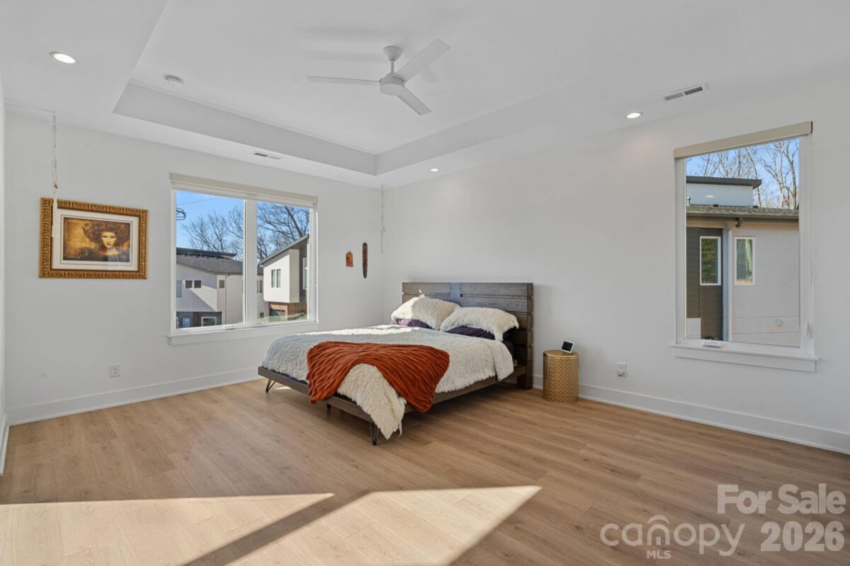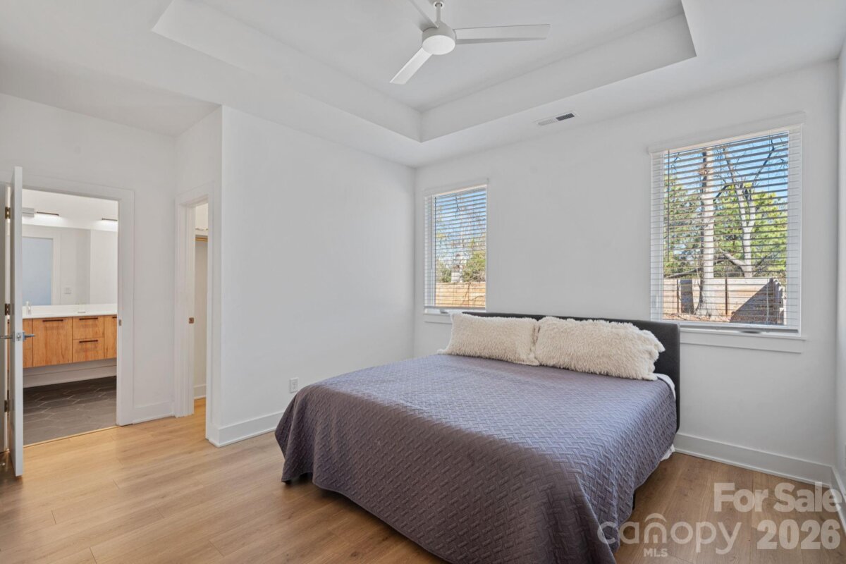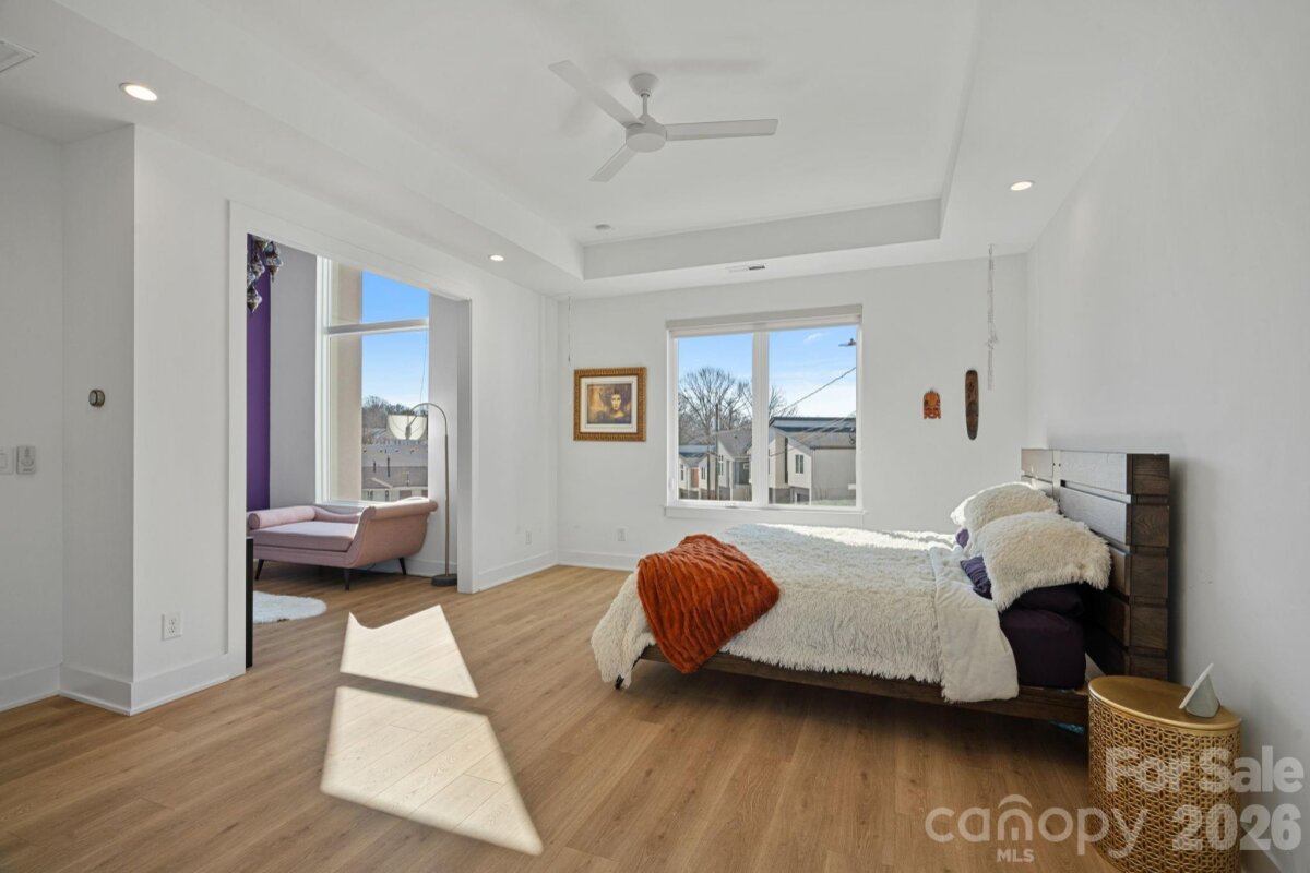 Welcome to City Side West by Chelsea Builders! This meticulously designed duet home showcases modern luxury with 10-foot ceilings and 8-foot doors on the main level, creating a bright, open feel from the moment you enter. Up to $14,250 available for buyers—no income limits and no repayment (see flyer for details). Featuring a sleek, contemporary design, this home offers 3 spacious bedrooms, including secondary bedrooms with tray ceilings, and an open-concept layout perfect for everyday living and entertaining. The chef’s kitchen stands out with quartz countertops, wall oven, flush full-face cabinetry, and a stylish blend of earth tones with a pop of color. The living room centers around a modern gas fireplace and is filled with natural light from expansive windows, while solid plank flooring flows throughout the main living areas for a cohesive, upscale look. The primary suite is thoughtfully designed for comfort, featuring a versatile bonus area ideal for a home office or flex space. Additional highlights include a separate laundry room, drop zone, generous storage, and a 1-car garage equipped with an EV charger (220V). Situated on one of the largest duet lots, the property boasts a spacious, privacy-fenced backyard—perfect for pets, play, or entertaining. Located just a short walk to the Gold Line and minutes from Uptown, this home offers exceptional convenience and access to city amenities. Smart home features integrate the security system, garage door, locks, and cameras into a single app for ease of use. Neutral paint tones, a tankless water heater, and high-end finishes complete the home. Tucked at the end of a cul-de-sac, the property offers added privacy. A rail line is located behind the home and operates a few times per week. Experience refined, low-maintenance living in one of the city’s most desirable locations.
