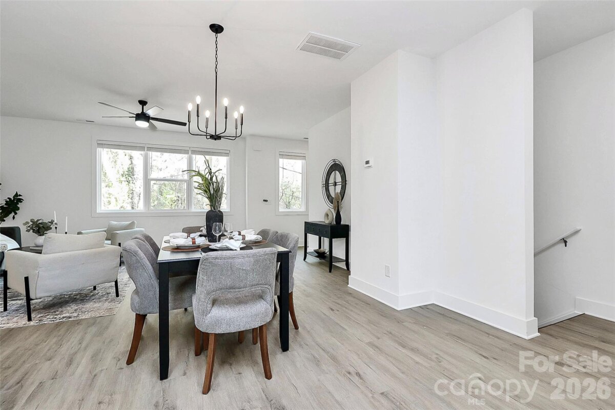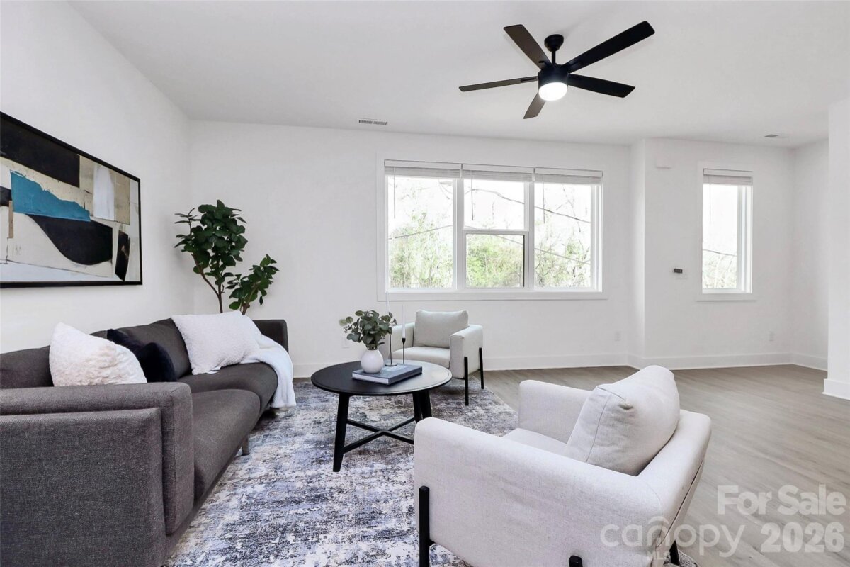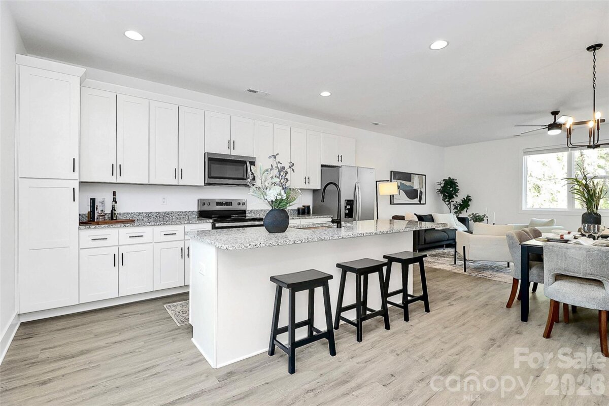 STUNNING MODERN NEW townhome just minutes from Uptown Charlotte! This thoughtfully designed 3-level home offers 3 bedrooms and 3.5 baths with a BRIGHT, OPEN-CONCEPT. Second floor dedicated entirely to LIVING and ENTERTAINING—no bedrooms on the main living level. The chef’s kitchen features GRANITE countertops, a LARGE ISLAND, WHITE SHAKER cabinetry, MATTE BLACK fixtures, and MODERN finishes throughout. SPACIOUS living and dining areas are filled with natural light and complemented by durable LUXURY VINYL plank flooring. Each bedroom includes its own bathroom, offering privacy and flexibility for guests or roommates. All bathrooms flaunt contemporary black matte accents and granite vanities with the chic Primary bathroom also featuring a double vanity and tiled shower with glass door. Enjoy low-maintenance living in close proximity to the dining, entertainment, and vibrancy of Uptown Charlotte. HOA covers Water, Trash, Common Areas Exterior Maintenance, Landscaping and Street Lights.