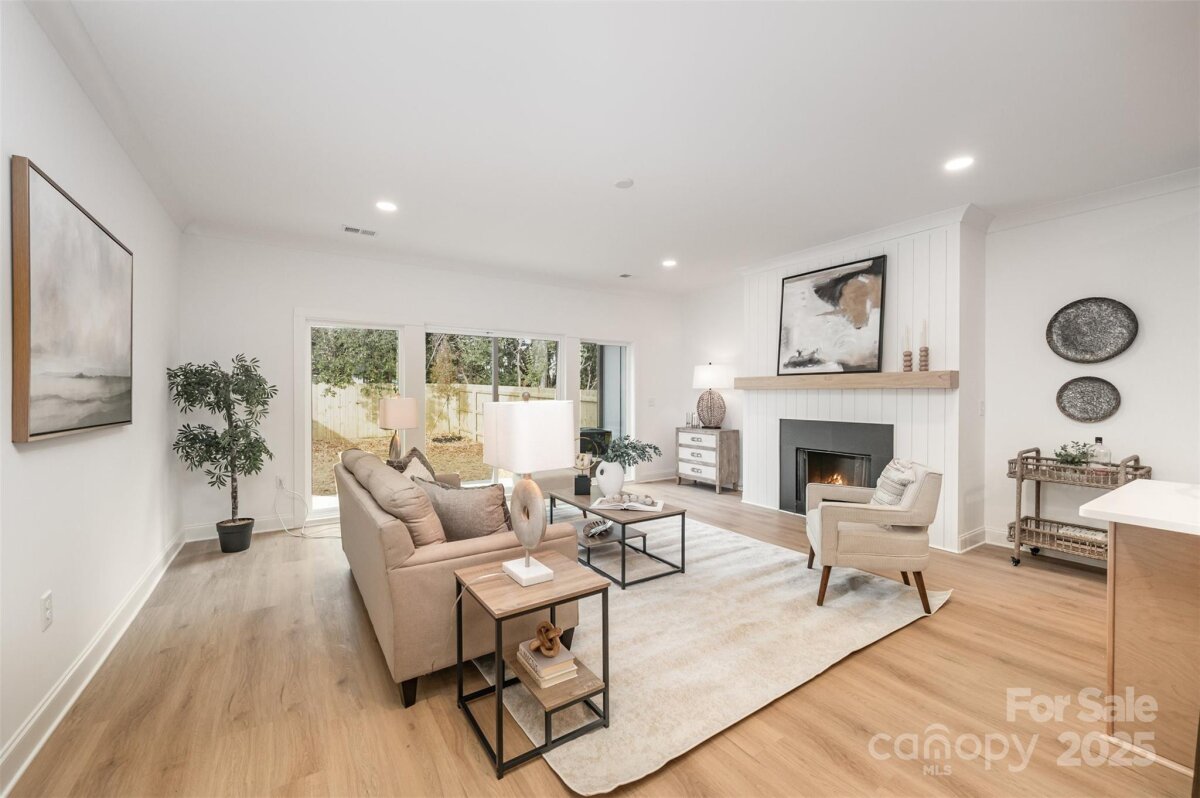 Discover modern living at its finest in this stunning new-construction townhome—crafted with thoughtful design, elevated finishes, and an unbeatable location. Featuring 3 spacious bedrooms, 2.5 baths, and a fenced backyard, this home blends style, function, and convenience in one incredible package. Step inside to a bright, light-filled entryway highlighted by a sleek glass front door and custom drop-zone built-ins complete with open cabinets, bench seating, and hooks—perfect for everyday organization. The open-concept main level is designed for effortless living and entertaining. The chef’s kitchen offers quartz countertops, a custom herringbone tile backsplash, a custom-built range hood, gleaming stainless steel appliances, an oversized island, and a full-size walk-in pantry with built-ins. The living room centers around a custom fireplace with an oak mantle, creating warmth and style in one. Upstairs, retreat to an oversized primary suite featuring an accent wall, a generous walk-in closet with custom built-ins, and a spa-inspired ensuite bath. Enjoy dual vanities with gold fixtures, a luxurious floating soaking tub, and an oversized custom tile shower with bench seating. A standout feature—the primary closet connects directly to your full-size laundry room for maximum convenience. Two additional bedrooms offer flexibility for guests, office space, or family needs. And with no carpet throughout the entire home, maintenance and modern living go hand-in-hand. All of this in a prime location: just an 8-minute walk to Oaklawn Language Academy, 4 minutes to Camp North End, 2 minutes to Johnson C. Smith University, and quick access to the Gold Line, Uptown, and I-277. Contemporary style. Thoughtful upgrades. Unmatched convenience. Your new townhome awaits.