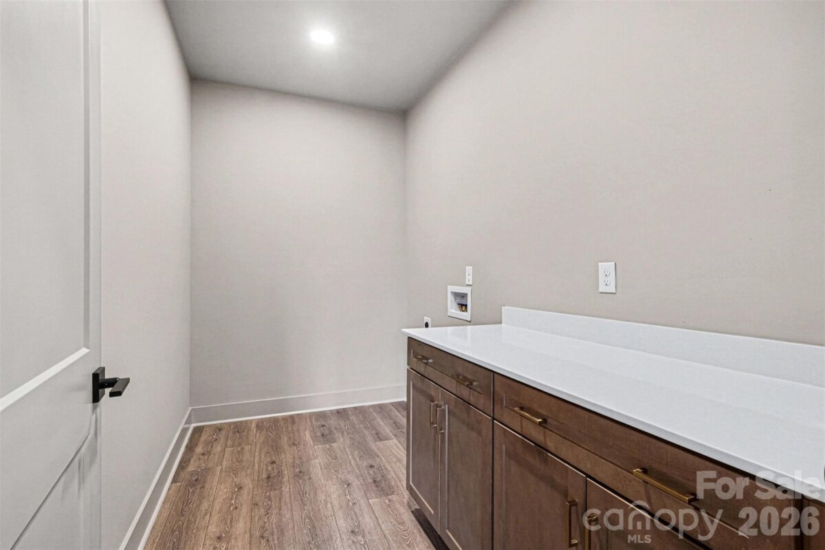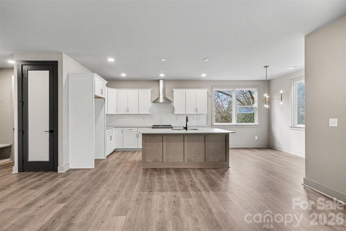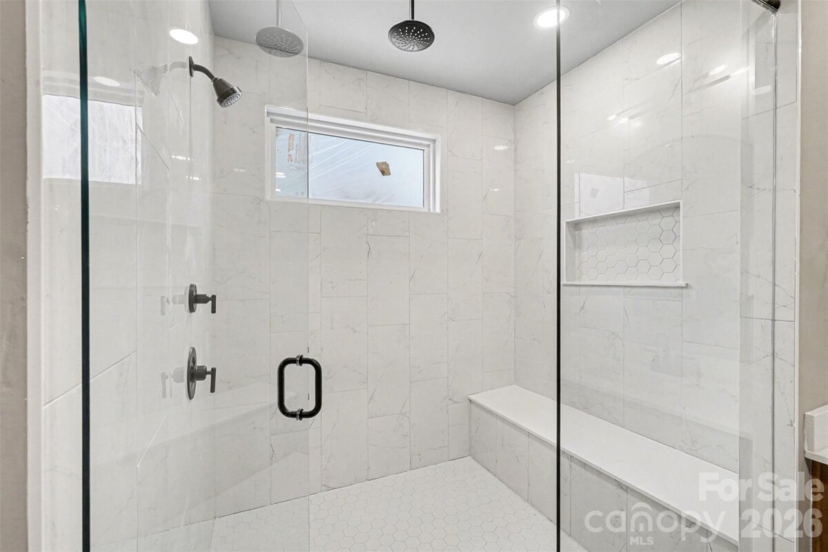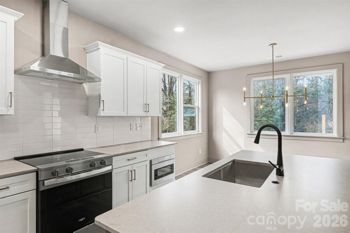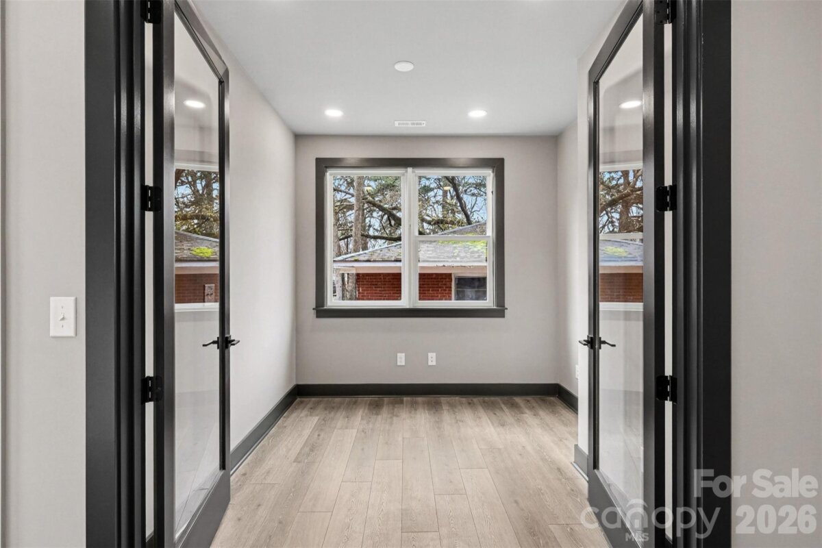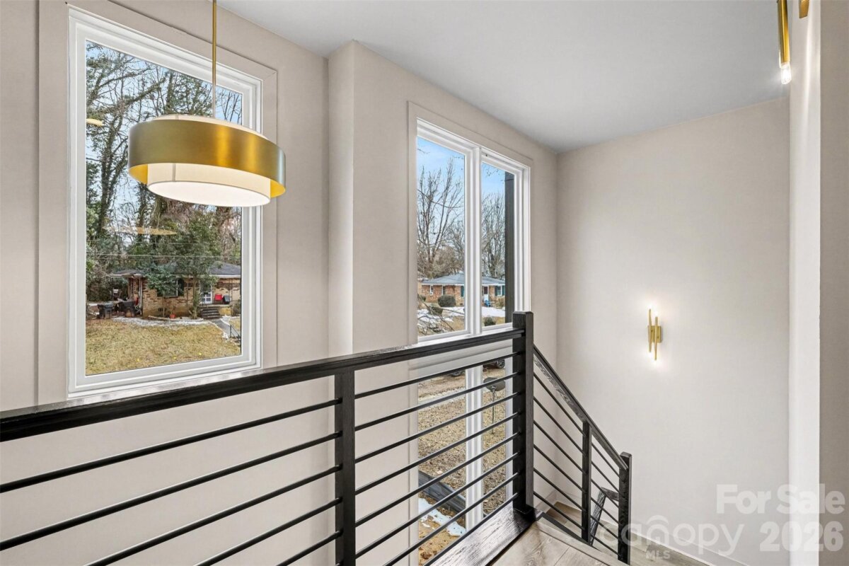 Welcome to the Crestview Duets — a rare opportunity to own a modern, design-forward home just minutes from Uptown Charlotte. This move-in ready 3-bedroom, 2.5-bath residence blends bold contemporary exterior architecture with upscale interior finishes across an open 2,300-sq-ft layout. The home features a dramatic two-story stairway framed by oversized windows that flood the interior with natural light. The gourmet kitchen offers quartz countertops, soft-close cabinetry, upgraded gold and matte-black hardware, and an oversized island flowing seamlessly into expansive living spaces. A private office with glass doors, shiplap accents, RevWood flooring, 9’ ceilings with tray detail in the primary suite, walk-in closet, and spa-inspired baths elevate daily living — including a huge owner’s suite shower with rainfall head. Outside, enjoy an exceptionally deep, private backyard backed by a protected Tree Save area, plus a full-width Trex deck with privacy wall and covered patio — a rare level of outdoor space and seclusion. Located on a quiet residential street with space to breathe, yet steps from the Gold Line, walkable to the park, 5 minutes to Uptown, and 11 minutes to CLT Airport. No HOA. EV-ready garage.