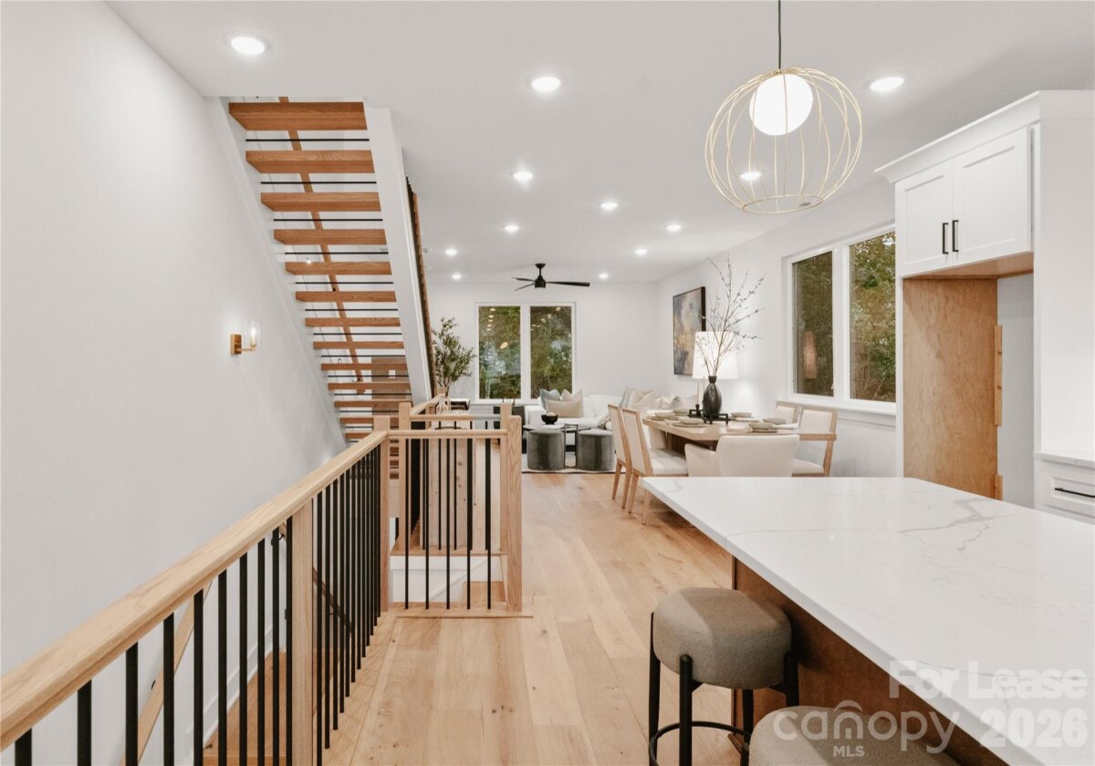 Nestled alongside a gentle small creek, this home offers a serene, private setting surrounded by mature trees. Enjoy the soothing sound of the creek just steps from your backyard. The home offer luxury living including 3 bedrooms, 3.5 baths with oversized garage and storage. Tons of high-end finishes such as engineered hardwoods throughout, wood floating staircase, metal railing, 8ft doors and fireplace in family room. Kitchen is perfect for entertaining with 12ft island, Kitchen aide appliances, wall oven and microwave, refrigerator. Bottom floor has a private bedroom and bathroom, with it's own entrance. Third floor has owners suite and additional bedroom. Each bedroom has it's own private full bathroom. Short distance to uptown Charlotte, hot area of Biddleville. Move in now!!! Agent is owner.