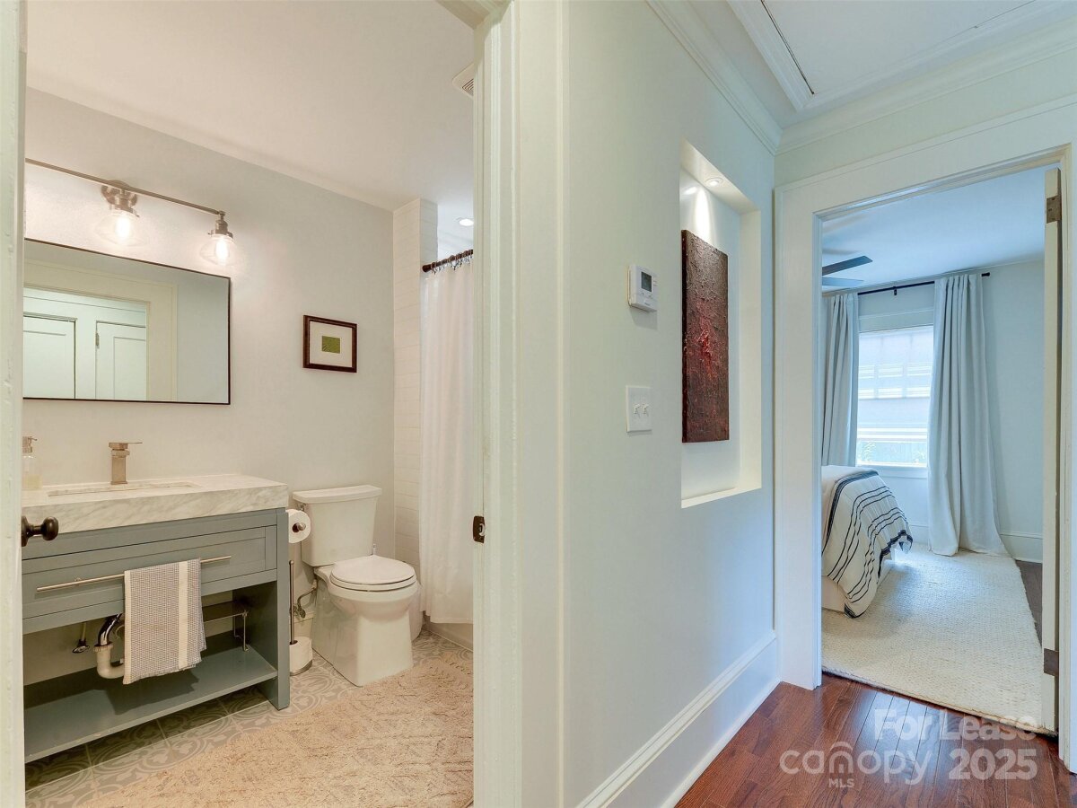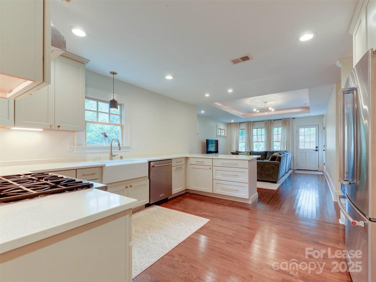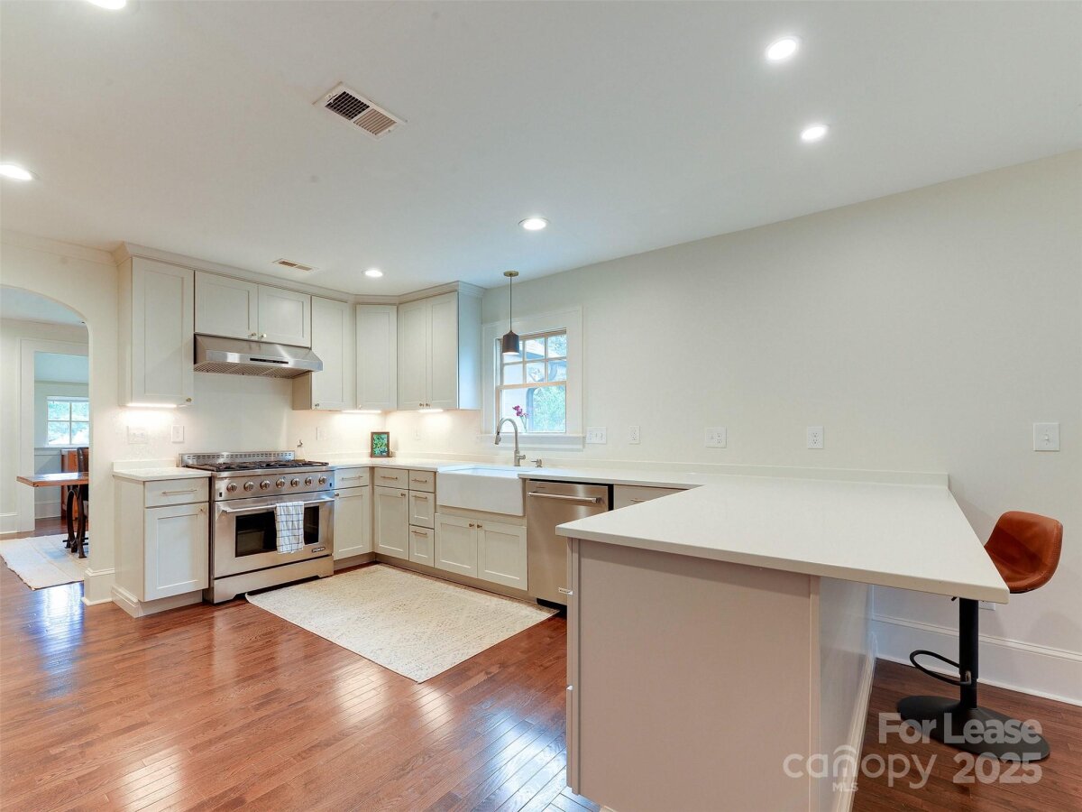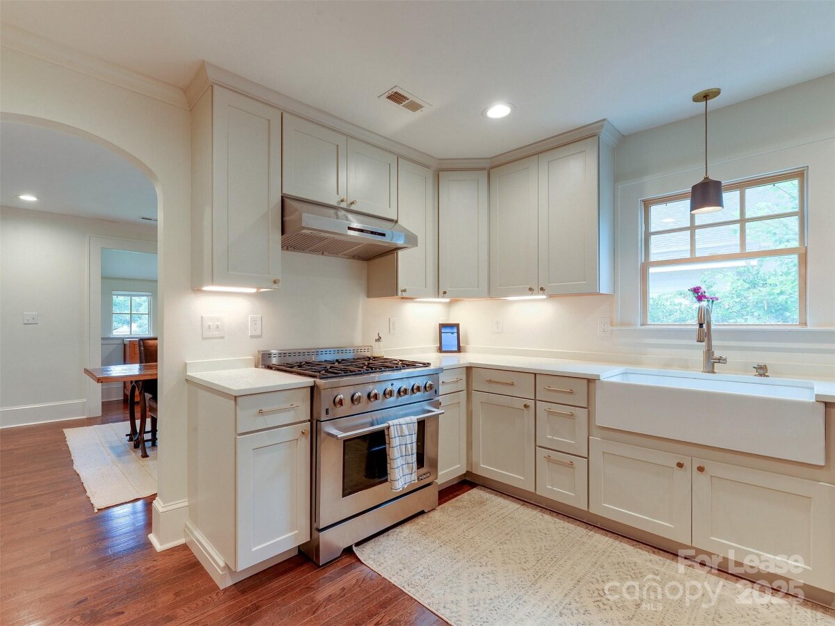 This renovated home has all the modern amenities but the charm of yesteryear in the HOT Smallwood neighborhood. This stunning home was lovingly renovated and it shows! As you walk in, the entry foyer directs you left to a bedroom that is being used as an office, straight to the next bedroom or left to the formal living room with conditioned sunroom on the side. All of this leads to the chef's kitchen complete with 36" gas range, stainless steel appliances, drawer microwave, quartz counters and plenty of cabinet space. This opens to the den in back with great views of the incredibly well landscaped yard. The primary suite is in the back of the home and features a walk in closet and en suite bath. Highlights of the primary bath are the floating dual vanity and large tile shower. All of this just minutes to everything! The street car stop is .7 miles, Uptown is 1 mile, 77 and 277 are 1 mile away, airport 6 miles and just minutes to multiple parks and the greenway. Take a look today! **6 month lease available for $3,000 per month.**