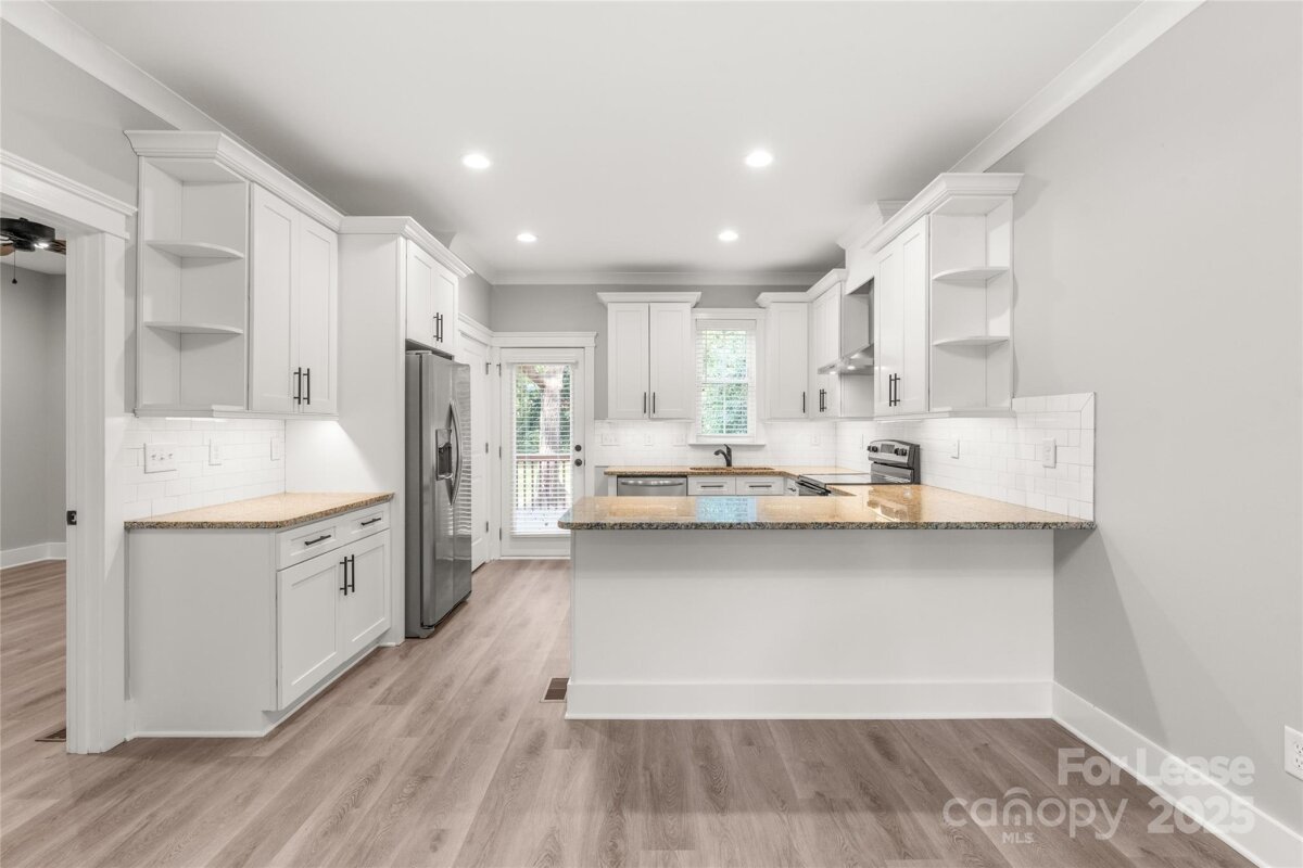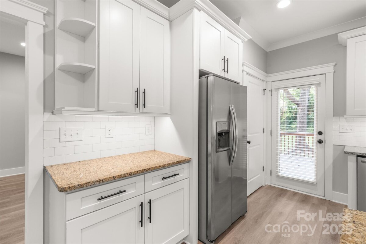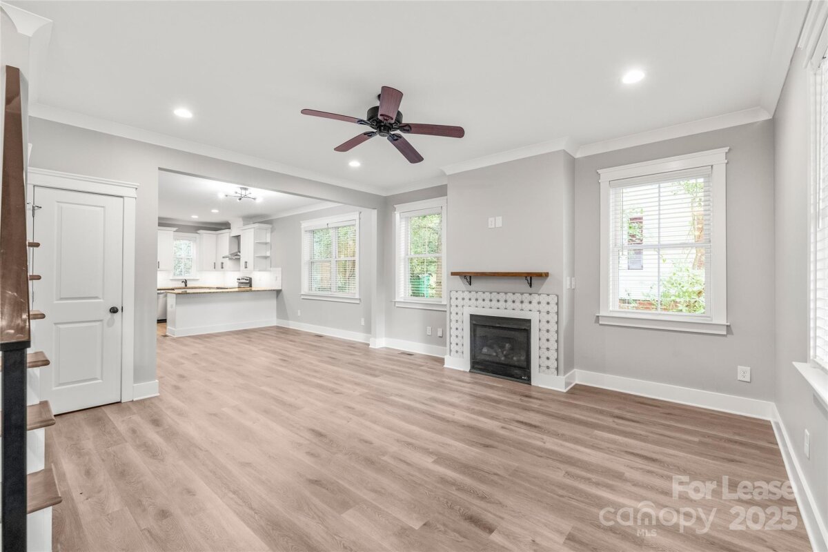 This stunning bungalow in the heart of Biddleville is a must-see. The home offers an open floor plan with luxury vinyl plank flooring throughout most of the space, a primary suite on the main level, a gorgeous kitchen, and a spacious loft. The open kitchen features stainless steel appliances, white shaker cabinets, granite countertops, and a subway tile backsplash. The living room includes a cozy gas log fireplace and large windows that fill the space with natural light. The primary bedroom offers direct access to the backyard deck and includes a walk-in closet. The attached primary bath boasts a walk-in shower, dual vanity with granite countertops, and stylish tile flooring. Upstairs, the loft provides a great space for a home office, reading nook, or workout area. Two additional bedrooms and a full bath complete the second level. Enjoy outdoor living on the back deck, and relax in the beautifully landscaped backyard featuring a charming gazebo, ideal for quiet mornings. Unwind on the covered front porch in the evenings. Conveniently located just minutes from Uptown Charlotte, major highways, and local shopping. Call us today to schedule a tour!