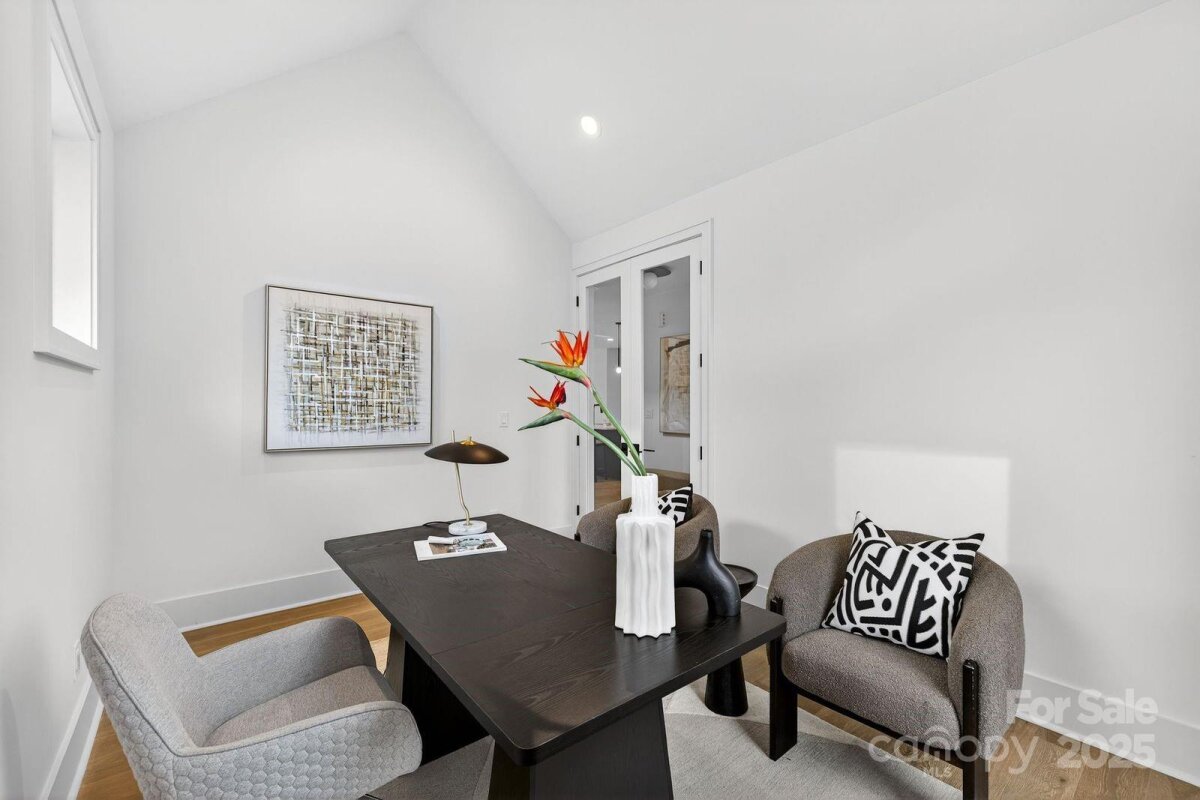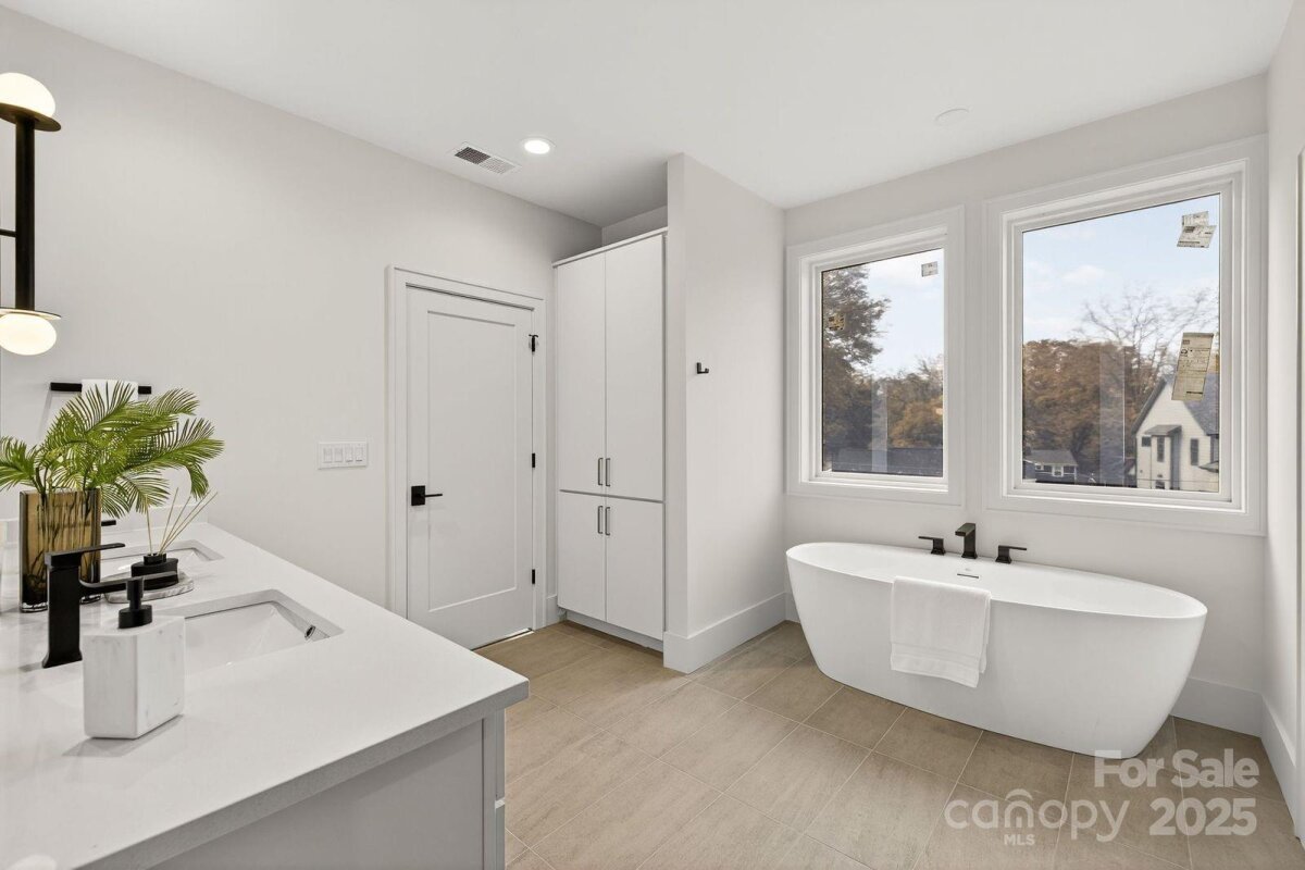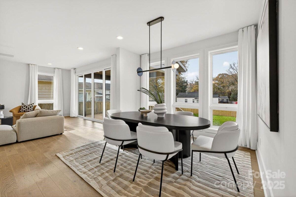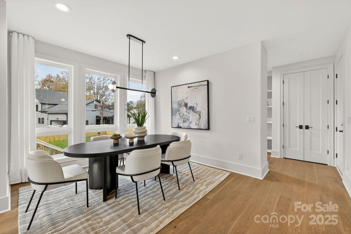 Experience modern living at its finest in this meticulously designed new construction home, nestled in the highly sought-after Smallwood neighborhood. With its prime location just minutes from uptown, I-77, South End, and the airport, you'll enjoy unparalleled convenience and accessibility. As you step inside, you'll be captivated by the meticulous attention to detail and contemporary elegance throughout the home. The stunning kitchen is a chef's dream, featuring soft-close flat panel cabinets, white quartz countertops, a custom tile backsplash, a convenient pot filler, and stainless steel appliances, including a gas range and beverage fridge. The butler's pantry adds a touch of sophistication with additional storage, floating shelves, and a built-in microwave—perfect for entertaining. The open floor plan downstairs creates a seamless flow for gatherings, while a separate office space with vaulted ceilings offers a serene escape for productivity. Plus, the thoughtfully designed drop zone area comes equipped with custom built-ins for your convenience. Go upstairs to the primary suite, where you'll be greeted by soaring vaulted ceilings and an abundance of natural light. The primary bathroom is like a spa, featuring a double vanity, a freestanding tub, a private toilet closet, and an oversized shower. A generous walk-in closet, complete with custom built-ins, ensures your space remains organized and stylish. The laundry room is as functional as it is beautiful, boasting cabinetry, quartz countertops, and a sink. This property also includes a two-car garage with extra storage or workspace, a covered back porch for relaxation, and a spacious fenced-in yard—making it the ideal home for modern living. Don't miss your chance to own this exquisite home that perfectly blends style, comfort, and convenience!