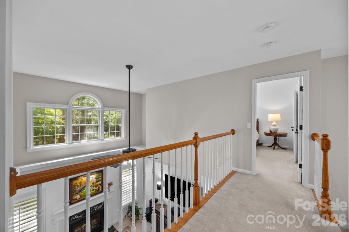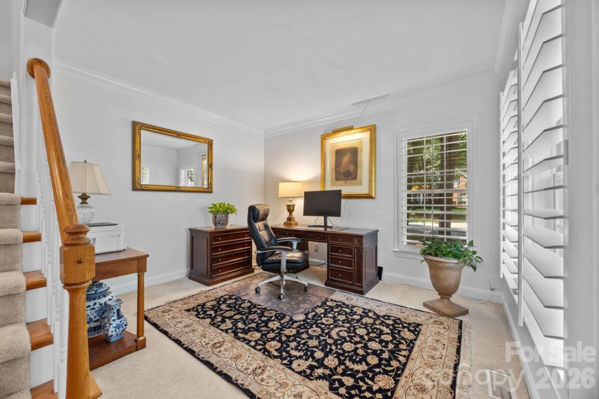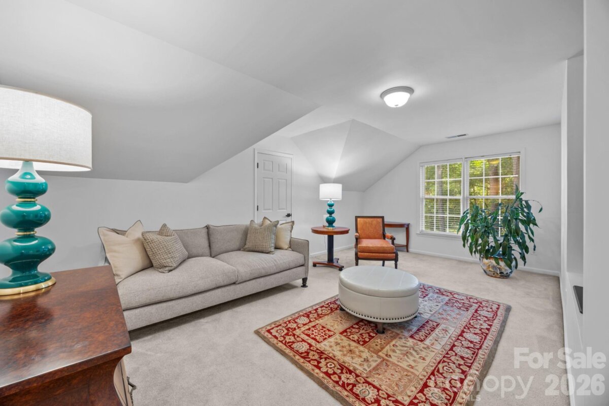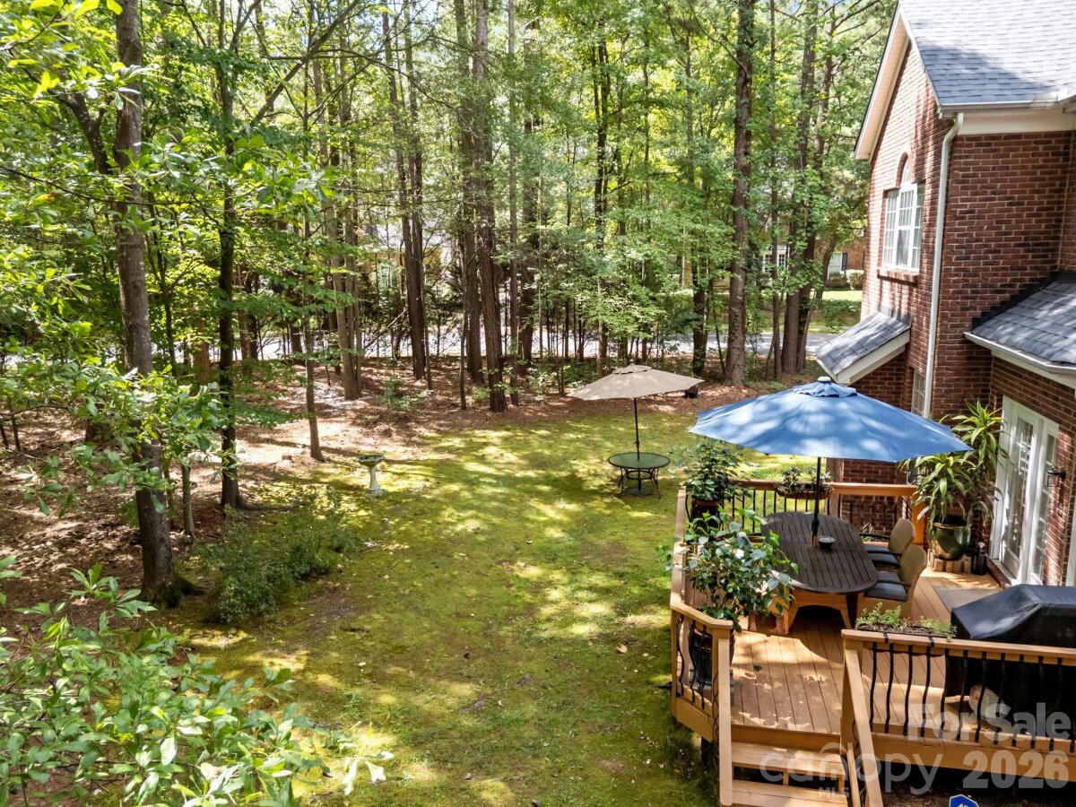 WELCOME HOME to OVERLOOK! This exquisite 4 bedroom 2.5 bath home sits on an exceptional private corner lot surrounded by trees! A 5 minute walk to the abundant community amenities including a pool, clubhouse & tennis/pickleball courts; your bright and airy freshly painted home awaits! Completely renovated front landscaping including in-ground irrigation greets you as you approach the front door. Upon entering, you will be struck by the light filled space with new plantation shutters on the entire main floor windows. The white kitchen has all new appliances, new back splash and new lighting. The 2-story great room is a wonderful gathering place open to the kitchen with a fireplace. You will also find a spacious office/ flex space, living room and dining room on the main level. A split floor plan upstairs provides privacy for the large primary suite with vaulted ceilings, new closet system, and updated primary bath with new tile, updated lighting and mirrors, and new frameless shower surround. The other 3 bedrooms and full bath center around a bonus room and can be closed off for additional privacy and quiet. Spacious walk-in attic storage adds to the ample storage throughout the home. Enjoy relaxing on your deck in your private, flat back yard in the shade of mature trees! All this within minutes of uptown Charlotte!