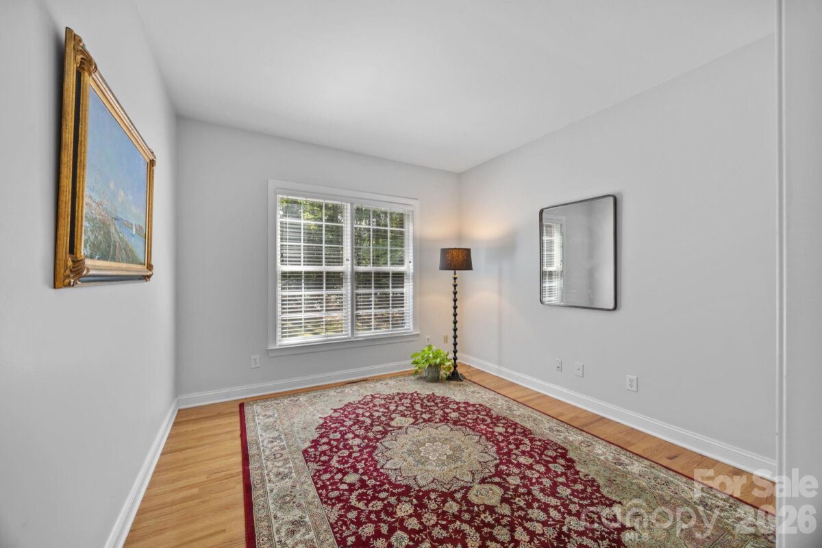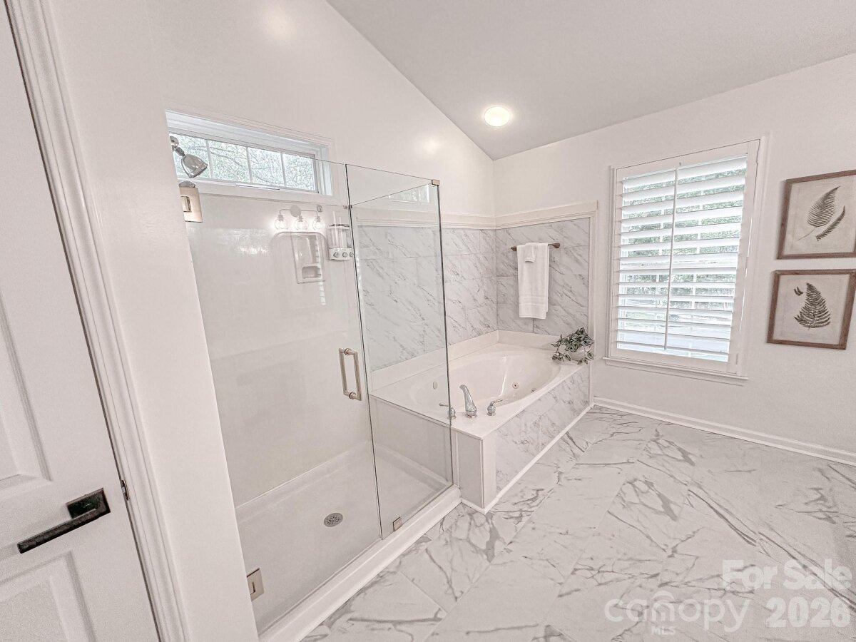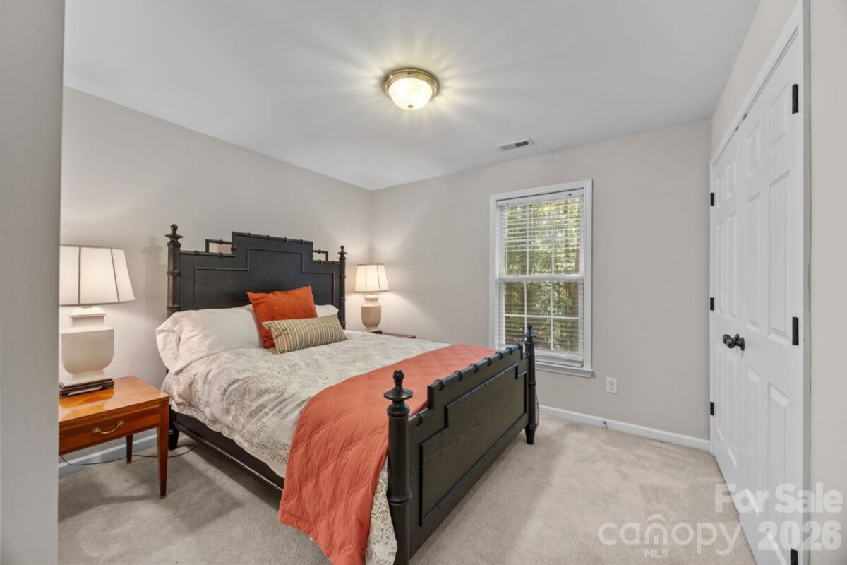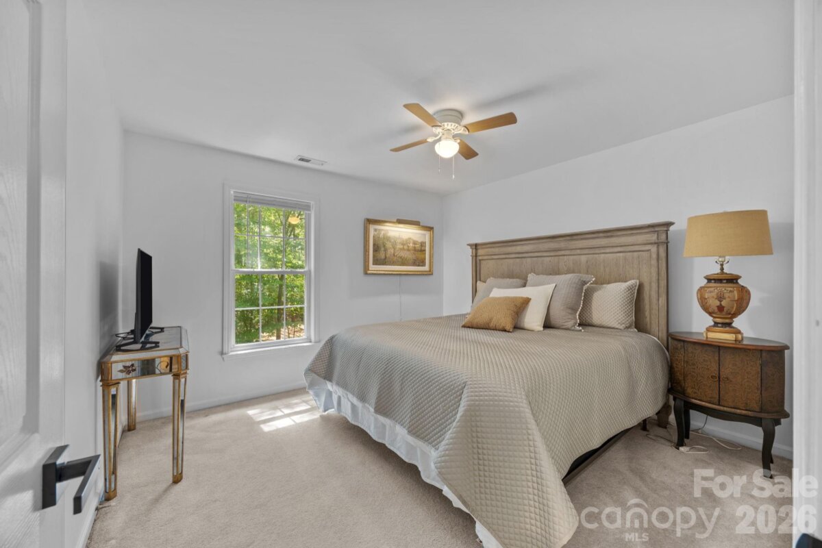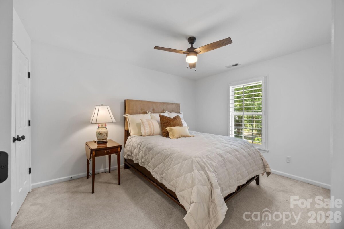 WELCOME HOME to OVERLOOK! This exquisite 4 bedroom 2.5 bath home sits on an exceptional private corner lot surrounded by trees! A 5 minute walk to the abundant community amenities including a pool, clubhouse & tennis/pickleball courts; your bright and airy freshly painted home awaits! Completely renovated front landscaping including in-ground irrigation greets you as you approach the front door. Upon entering, you will be struck by the light filled space with new plantation shutters on the entire main floor windows. The white kitchen has all new appliances, new back splash and new lighting. The 2-story great room is a wonderful gathering place open to the kitchen with a fireplace. You will also find a spacious office/ flex space, living room and dining room on the main level. A split floor plan upstairs provides privacy for the large primary suite with vaulted ceilings, new closet system, and updated primary bath with new tile, updated lighting and mirrors, and new frameless shower surround. The other 3 bedrooms and full bath center around a bonus room and can be closed off for additional privacy and quiet. Spacious walk-in attic storage adds to the ample storage throughout the home. Enjoy relaxing on your deck in your private, flat back yard in the shade of mature trees! All this within minutes of uptown Charlotte!