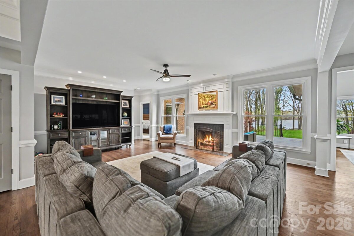 Experience exceptional lakefront living on the shores of Mountain Island Lake in this expansive and meticulously designed 4-bedroom, 3 full bath, 1 half bath luxury residence. Offering more than 4,000 square feet of heated living space, this home blends elegant craftsmanship with breathtaking natural beauty — all with unparalleled views of Latta Park and the sparkling water beyond. The main level features a spacious open floor plan highlighted by rich hardwood flooring and abundant natural light. The owner’s suite on the main provides comfort and convenience, while a stunning sunroom captures panoramic lake views — perfect for morning coffee or relaxing evenings. A formal dining room, breakfast nook, and a beautifully integrated family room with gas fireplace create ideal spaces for both everyday living and refined entertaining. A dedicated main-level office with hardwoods offers a quiet workspace or library retreat. The upper level hosts four exceptionally large bedrooms, office and a generous bonus room, providing flexibility for guests, multigenerational living, recreation, or media use. Every room feels open, airy, and thoughtfully designed. Outdoors, the property truly shines with exceptional lakefront amenities, including hot tub, a private dock, boat slip, and a covered gazebo — offering endless opportunities to enjoy the water, entertain, and savor stunning sunsets. This is lake living at its finest. With its ideal layout, extraordinary views, and direct access to Mountain Island Lake, this expansive and beautifully appointed home offers a rare opportunity to own a premier lakeside retreat with room to live, work, play, and unwind.