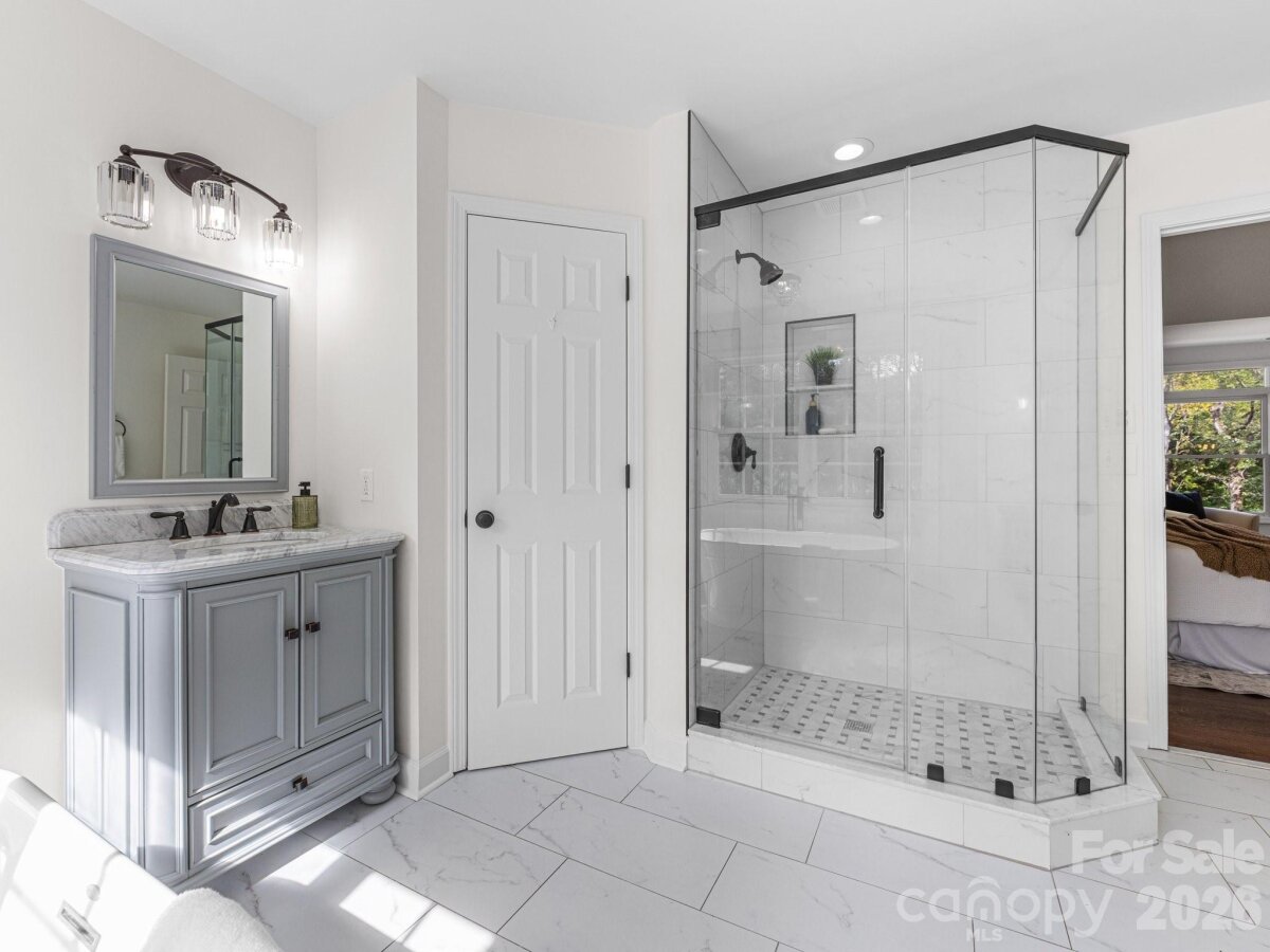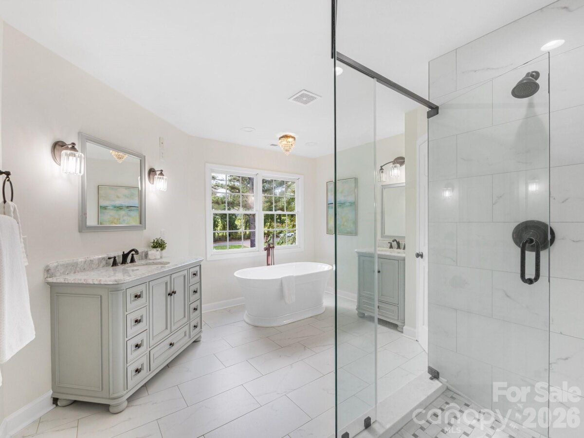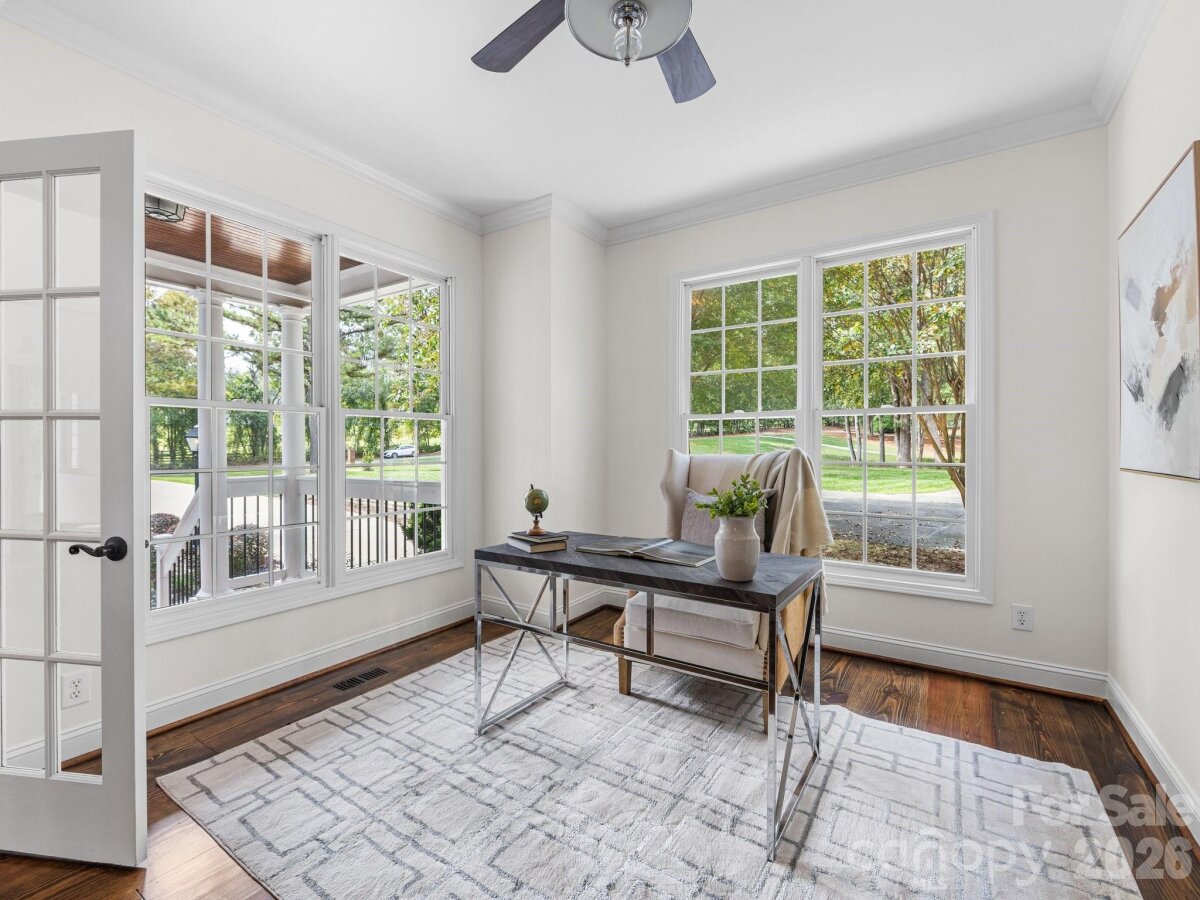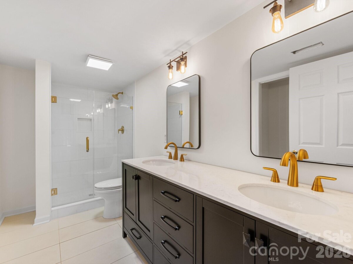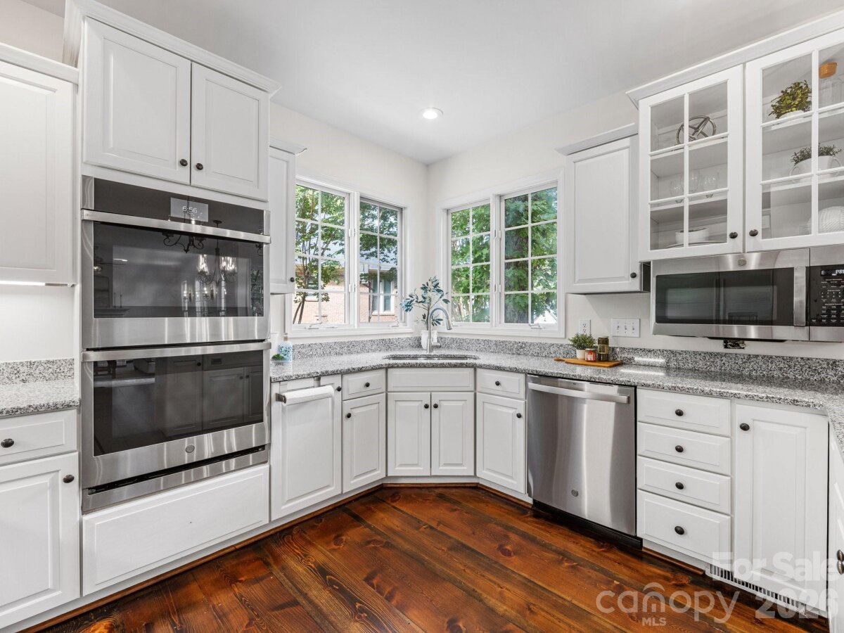 Experience lakeview living at its best in this beautifully maintained home at 5619 Mountain Point Ln sitting on 1.79 ac. Enjoy peaceful mornings on the covered front porch with a beadboard ceiling, or relax on the expansive 325 sq. ft. back deck overlooking the serene lake. Step inside the two-story foyer to find wood flooring throughout most of the home. The main level offers a private office with glass French doors, built-in desk, and bookcase. The spacious formal living room connects to the dining area through French doors—ideal for entertaining or flexible use. The open family room features a cozy wood-burning fireplace & flows seamlessly into the remodeled kitchen. The kitchen (remodeled in 2020) showcases granite countertops, GE Profile double convection ovens(with Wi-Fi app control, air fryer and scan-to-cook features), a Sub-Zero refrigerator, trash compactor, and a brand-new dishwasher. Upstairs, the vaulted primary suite includes a sitting area with lake view & three walk-in closets, including a custom California Closet measuring 14.5’ x 14’. The remodeled primary bath offers a glass-enclosed tile shower, soaking tub, dual vanities, & a private water closet. The oversized second bedroom (approx. 21’ x 15’) is filled with natural light, & the guest bath has been beautifully updated with tile finishes. The finished basement includes a recreation room with tile flooring, a pre-wired media room, & a kitchenette (missing only a stove to function as a full second kitchen). The remodeled basement bath includes a laundry closet, plus two flexible rooms with closets,doors, & windows that could be used as bedrooms, office, or gym space. Additional features include fresh interior and exterior paint, a whole-house water filtration system, irrigation system, dual driveways (concrete with brick paver parking plus a secondary gravel drive leading to a concrete pad), & a large storage area under the deck that could accommodate additional vehicle parking. Other updates include: roof (2018), A/C units (2018 & 2020), commercial-grade water heater (2020), and septic pump (2020). While Duke Energy owns a few feet at the rear of the lot for a buffer—preventing a private dock—residents enjoy access to the community boat ramp just down the street. Home is convenient to shopping, dining, etc. Downtown Charlotte & Charlotte Douglas Airport are about 12 miles away. Come see the thoughtful upgrades, generous spaces, and calming lake views that make this home truly special.