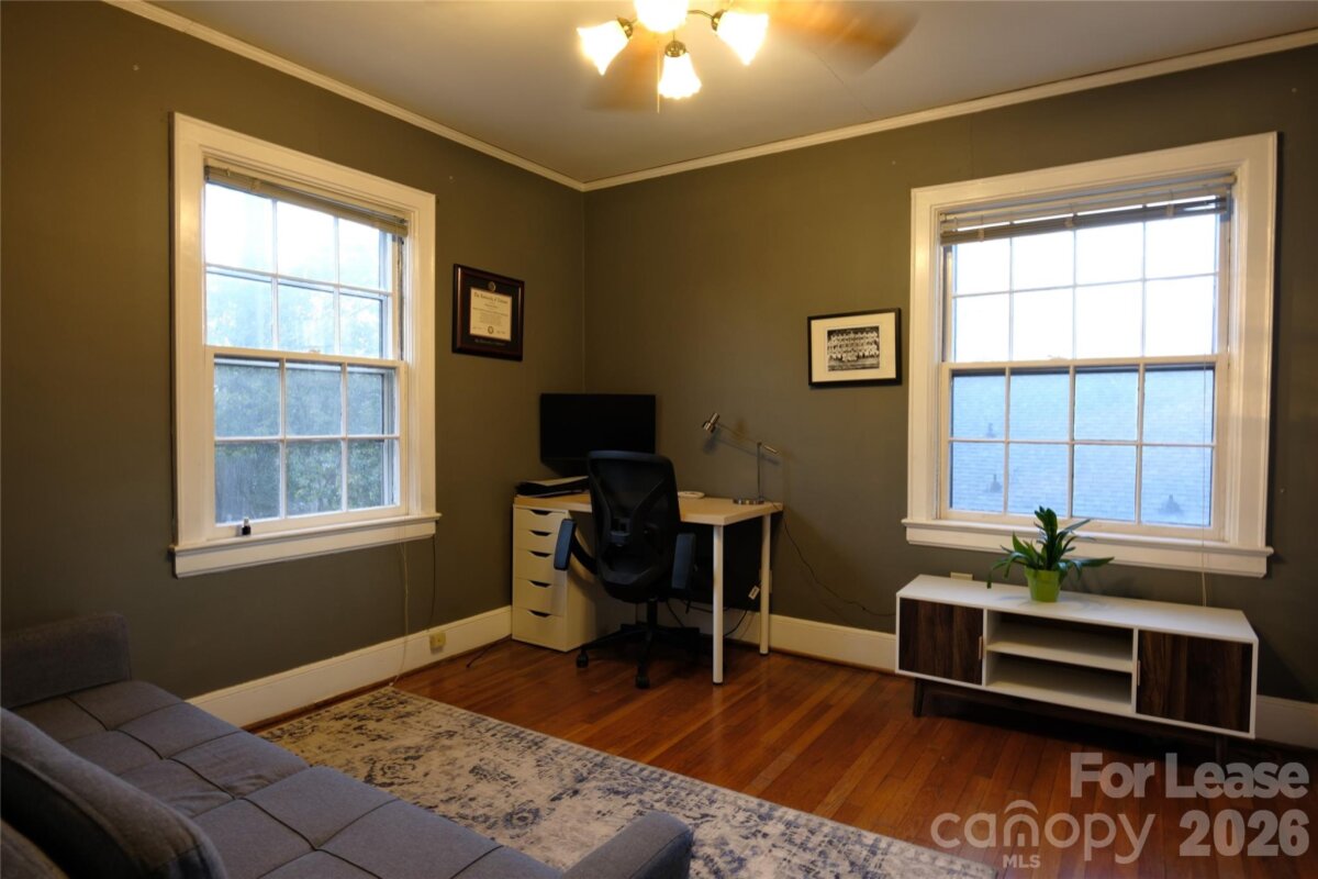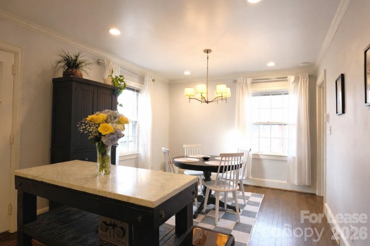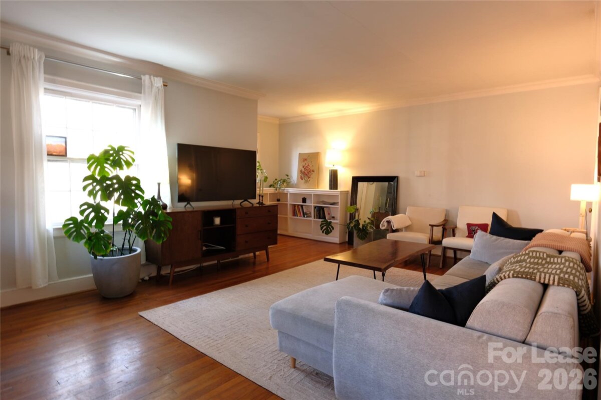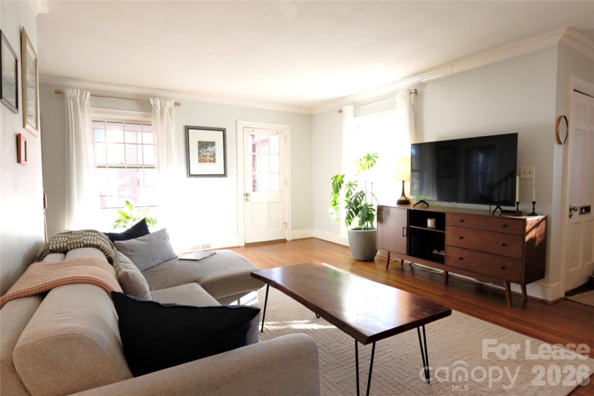 Location, Location, Location! Situated in a historic, tree-canopied Myers Park - long known as one of the most prestigious areas in Charlotte, this large 2 bedroom, 1.5 bath duplex on S. Kings Drive offers recently remodeled kitchen with solid wood soft closing cabinets, quartz counter tops and stainless steel appliances. Hardwoods throughout. Large primary bedroom easily accommodates king size bed. Screened in porch, back deck and rare for Myers Park 2 car garage. Plenty of additional storage in a walk up attic or garage. Stroll through the 0.48 acre fully fenced, park like and pet friendly backyard. Private gate at rear of property opens to the Little Sugar Creek Greenway between East Blvd and CMC Main/Atrium. Walking distance to restaurants, shops, Freedom Park, AtriumHealth Main, Metropolitan and the best that Myers Park/Dilworth have to offer. All the amenities are at your doorstep and less then 5 min. drive to uptown. Available March 1st. Reach out to be connected with owner for showings/questions. Owner holds active NC real estate license.