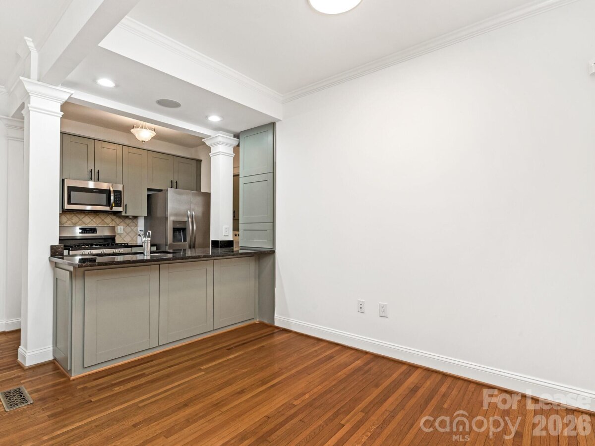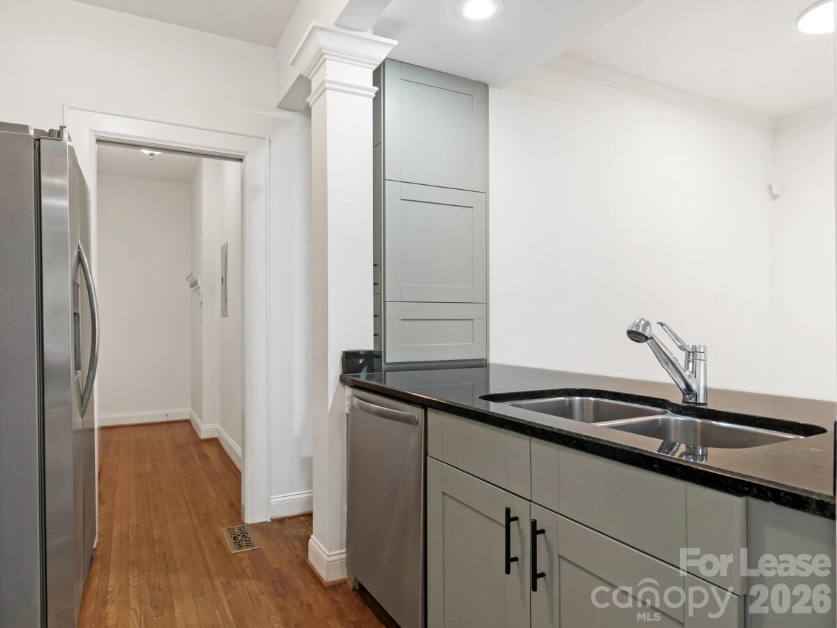 Spectacular 2-bedroom 2-bathroom quadplex located in Myers Park. Living room with fireplace. Beautiful sunroom. Kitchen features granite countertops, stainless steel appliances, gas range, dishwasher, refrigerator, and microwave. Washer and dryer included. Primary suite features double vanity in master bathroom, separate tub/shower, and large walk-in closet with built ins. Relax in the evening on the covered back porch. Each unit has a single car garage for extra storage. Gated entrance with paved parking lot. This unique property will not last long, don't miss out on this one!