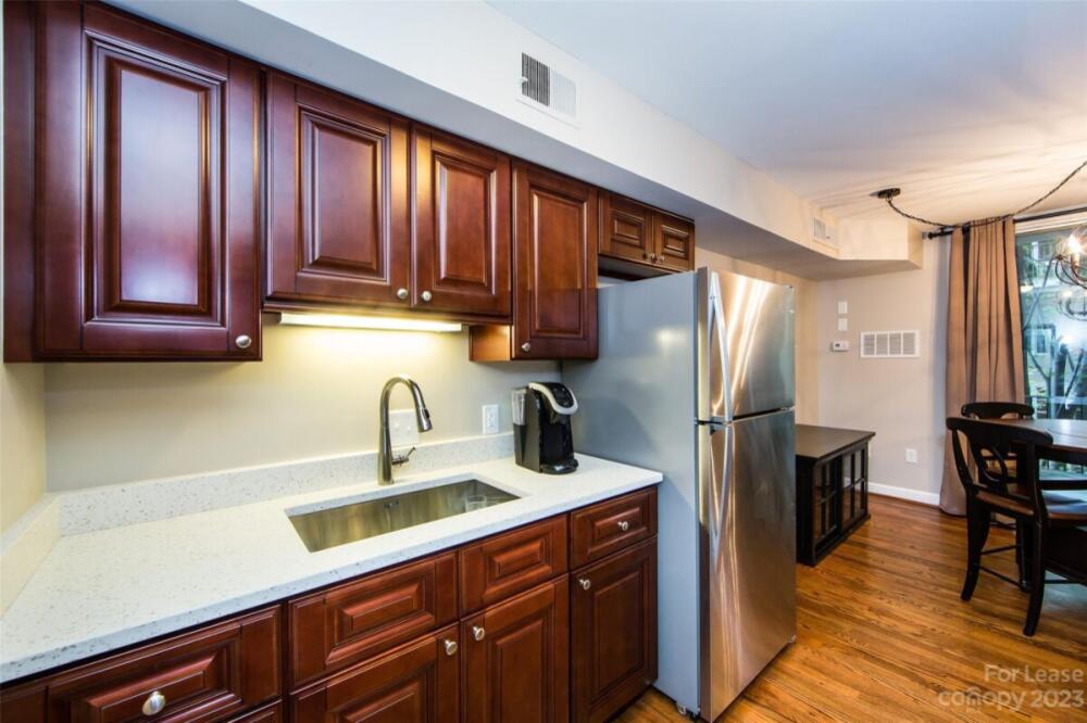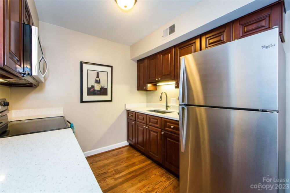 Furnished 1 bedroom in Myers Park. Large balcony. Refinished Hardwoods. Updated kitchen cabinets and quartz counter tops. Bath updated floors & vanity. Large BR with walk in closet. On Site Laundry. Walking distance to Myers Park/Elizabeth/Metropolitan. Sorry, NO PETS $100 application fee per adult. Furnished Details - Includes linens & kitchen utensils. Rent includes all except for electric, internet/cable. 1st month rent & 1 month security deposit required with signed lease.