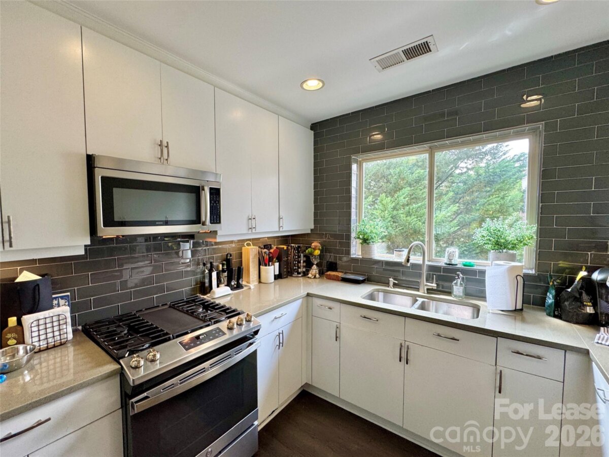 This luxury townhome at 420 Queens is nestled on Queens Rd in Myers Park. Experience the best of the best as this home is a one of a kind. Designed as the signature home of the community. Hardwood floors throughout. Addtional features: 2 Private patios, Indoor/Outdoor Fireplace, Glass vessel sinks, Quartz countertops, SS appliances, Glass Mosaic Tiles, Frameless glass shower door & diffused glass panel doors throughout. Don't miss the fenced in front yard! Up to 3 private garage parking spaces available in secure garage. Includes storage unit.