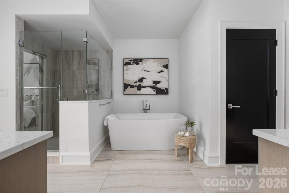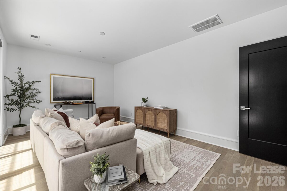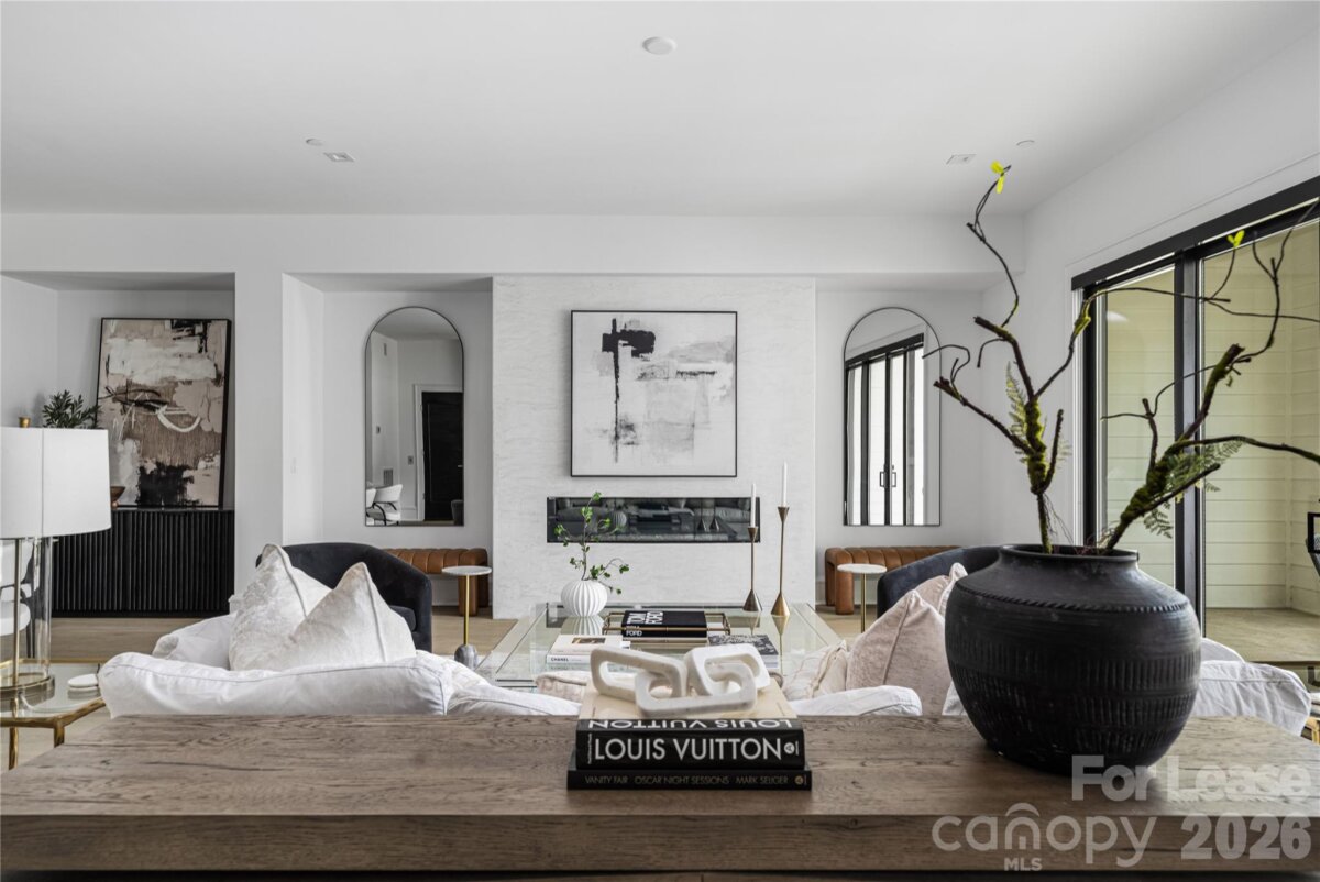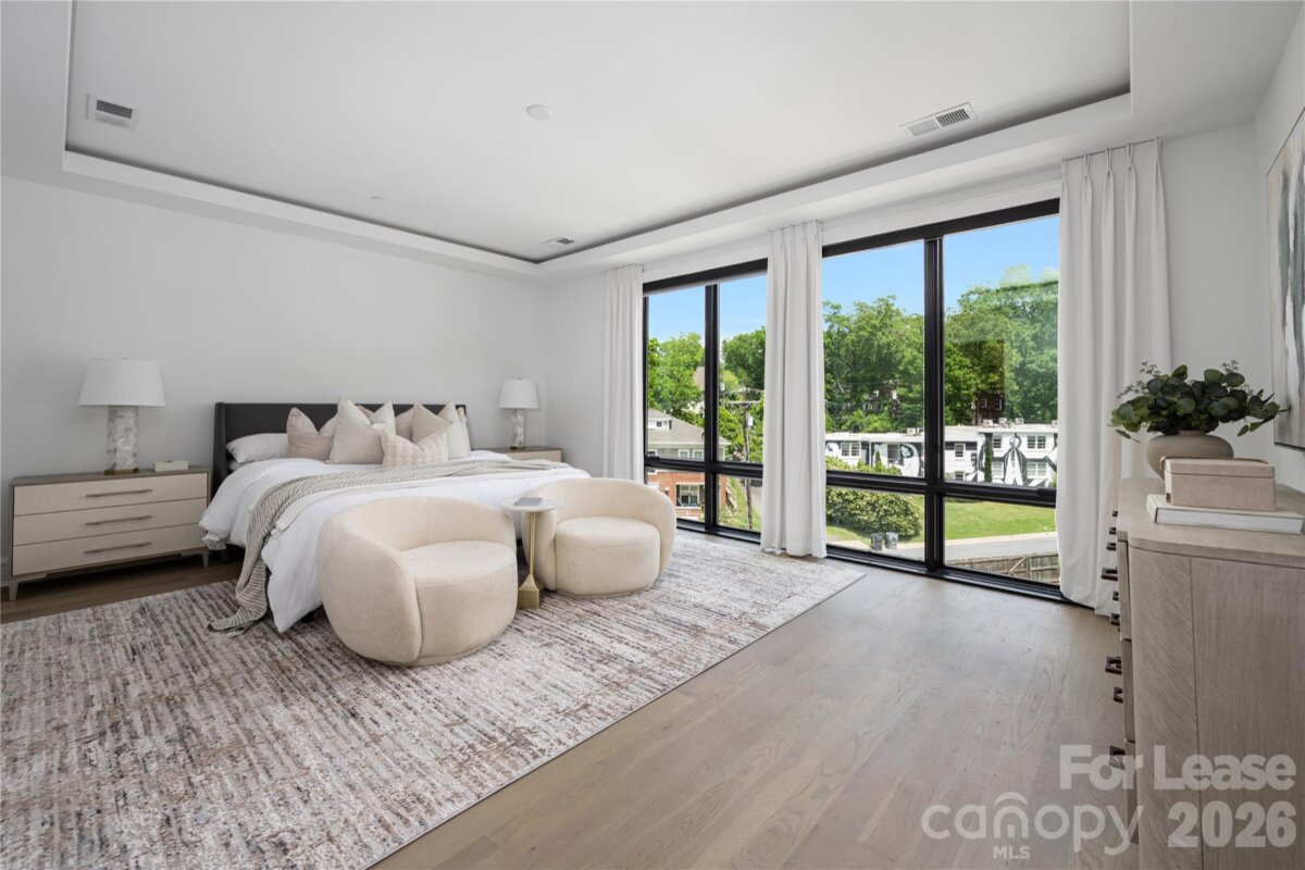 Welcome to this stunning modern townhome located in the highly sought-after Myers Park area. This beautifully crafted residence, part of an elite five-unit enclave by Chiott Custom Homes, is just steps from shopping, dining, and the Little Sugar Creek Greenway. The townhome offers a private 2-car garage leading to a shiplap-accented drop zone, flex guest room/office with an en-suite bath, and access to a serene outdoor space. The main level is designed for entertaining, featuring a light-filled, open floor plan, a chef’s kitchen with Sub-Zero and Wolf appliances, and a large working island that connects to the dining area and family room. Enjoy a cozy covered balcony with views of Queens Road or unwind in your private planning office. The upper level includes a luxurious primary suite with a spa-like bath, two guest rooms, a full bath, and a laundry room. Take the elevator to the rooftop terrace and enjoy panoramic views of the Queen City skyline-perfect for hosting gatherings!