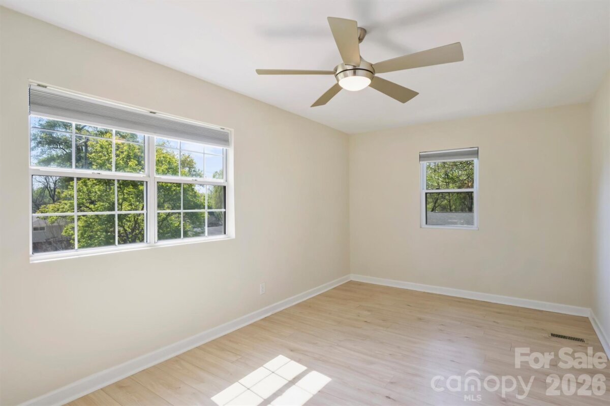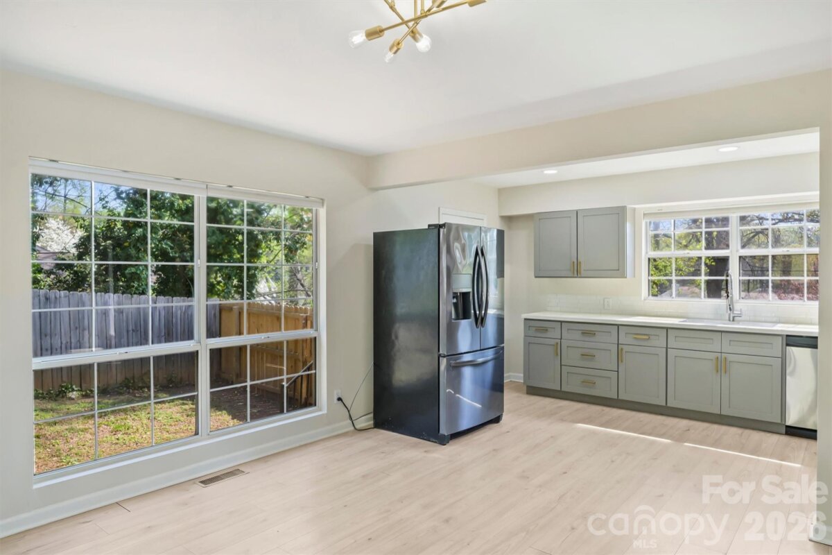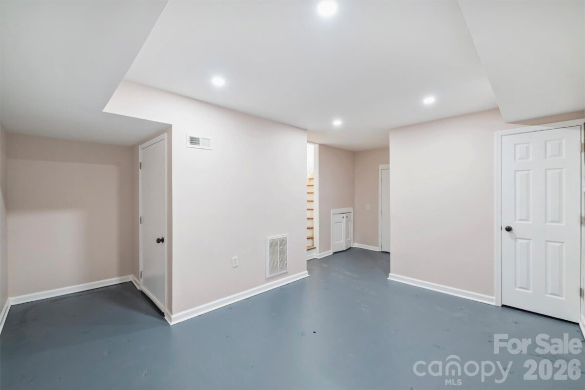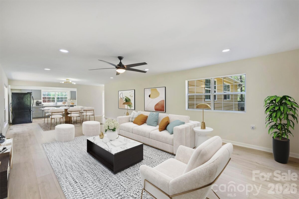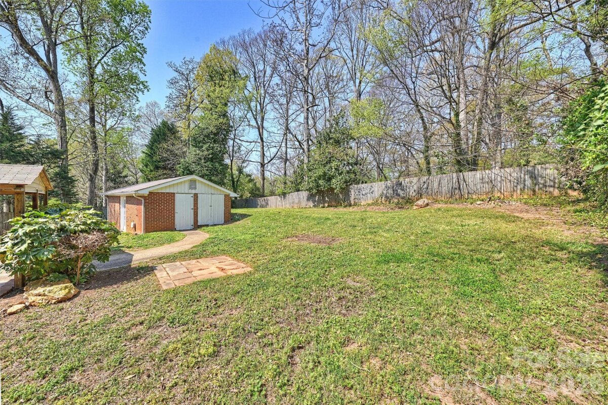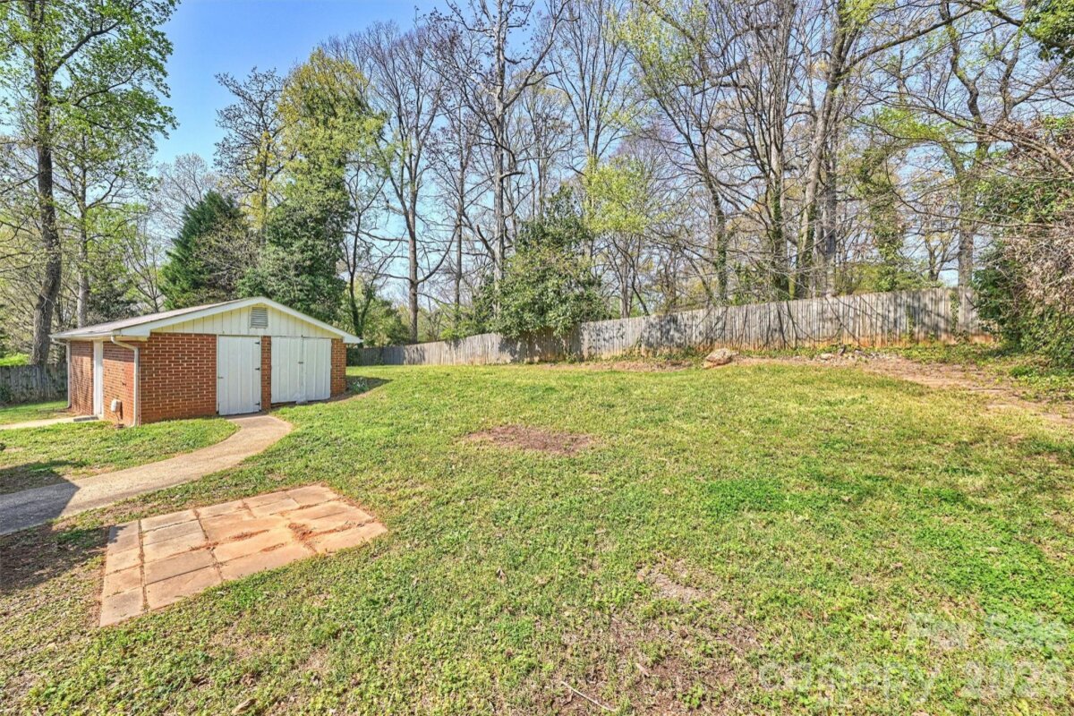 A UNIQUE OPPORTUNITY awaits just 10 minutes from Center City in Uptown Charlotte. This single-story ranch-style residence, complete with a basement, is situated on nearly half an acre of land. The open floor plan showcases numerous renovated finishes, transforming the property into a modern dwelling. A spacious front yard and expansive fenced-in backyard provide ample space for children or pets, complemented by a patio area for relaxation. The single-car garage offers substantial storage capacity. The CROWNING FEATURE is a detached backyard structure providing versatile living space, with a kitchen, bathroom, and bedroom, ideal for guests, office, or studio use. There is NO HOMEOWNERS ASSOCIATION. Property is minutes from Camp North End, the Music Factory, and NODA, with easy access to highways 77 and 85.