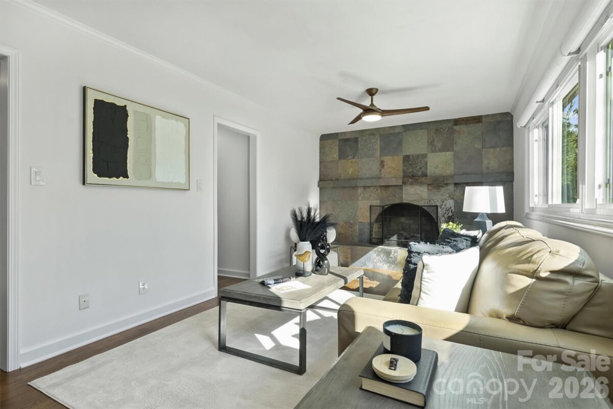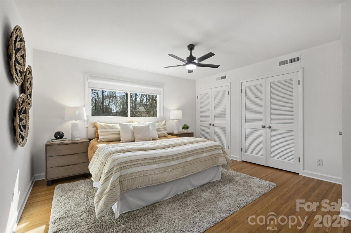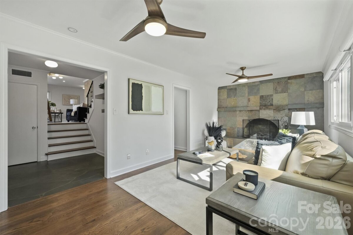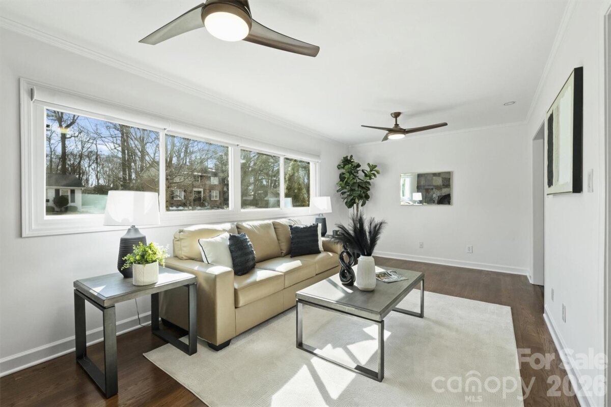 Classic mid-century modern style shines throughout this Beverly Woods split-level, blending iconic architecture with fresh, thoughtful updates. Clean lines, warm wood floors, built-in features including lovely dining room cabinetry, and an inviting entry foyer create an authentic MCM vibe, while lovely French doors lead to an amazing brick-fenced courtyard. The living and dining spaces feel open yet defined—perfectly true to the era’s design sensibility. Recent improvements include new interior paint throughout, all new windows, updated light fixtures and ceiling fans, and a completely renovated full hall bath, making this home truly move-in ready while preserving its original character. Kitchen was updated in last eight years and has all the creature comforts and modern touches. A cozy gas fireplace anchors the den, offering a comfortable retreat for everyday living or entertaining. All bedrooms feature wood floors, fresh paint and new ceiling fan lights. Outdoor spaces are a standout feature. The large, level, fully fenced backyard provides endless possibilities for gardening, play, or gatherings, while the brick-fenced side courtyard delivers a private, design-forward outdoor space—ideal for morning coffee, al fresco dining, or a firepit lounge. These spaces extend the home’s livability and echo the indoor-outdoor connection that mid-century homes are known for. Ideally located on a quiet street with little thru-traffic in the established Beverly Woods neighborhood with easy access to SouthPark, dining, shopping, and top schools, this home offers a rare opportunity to own a true MCM-inspired property with modern updates and exceptional outdoor living.