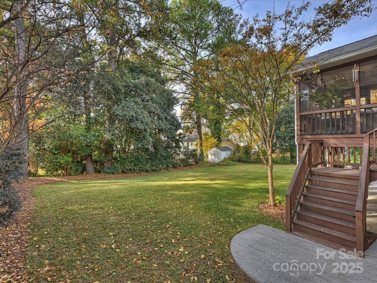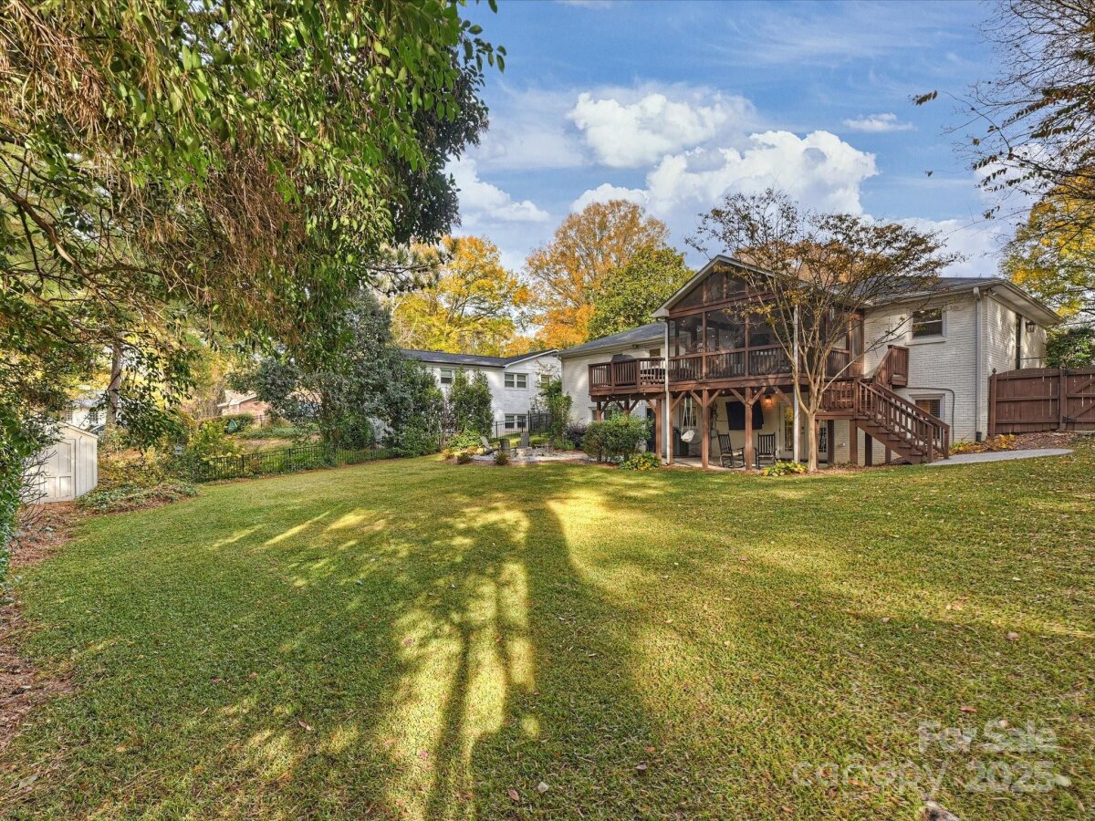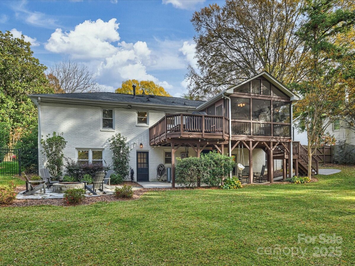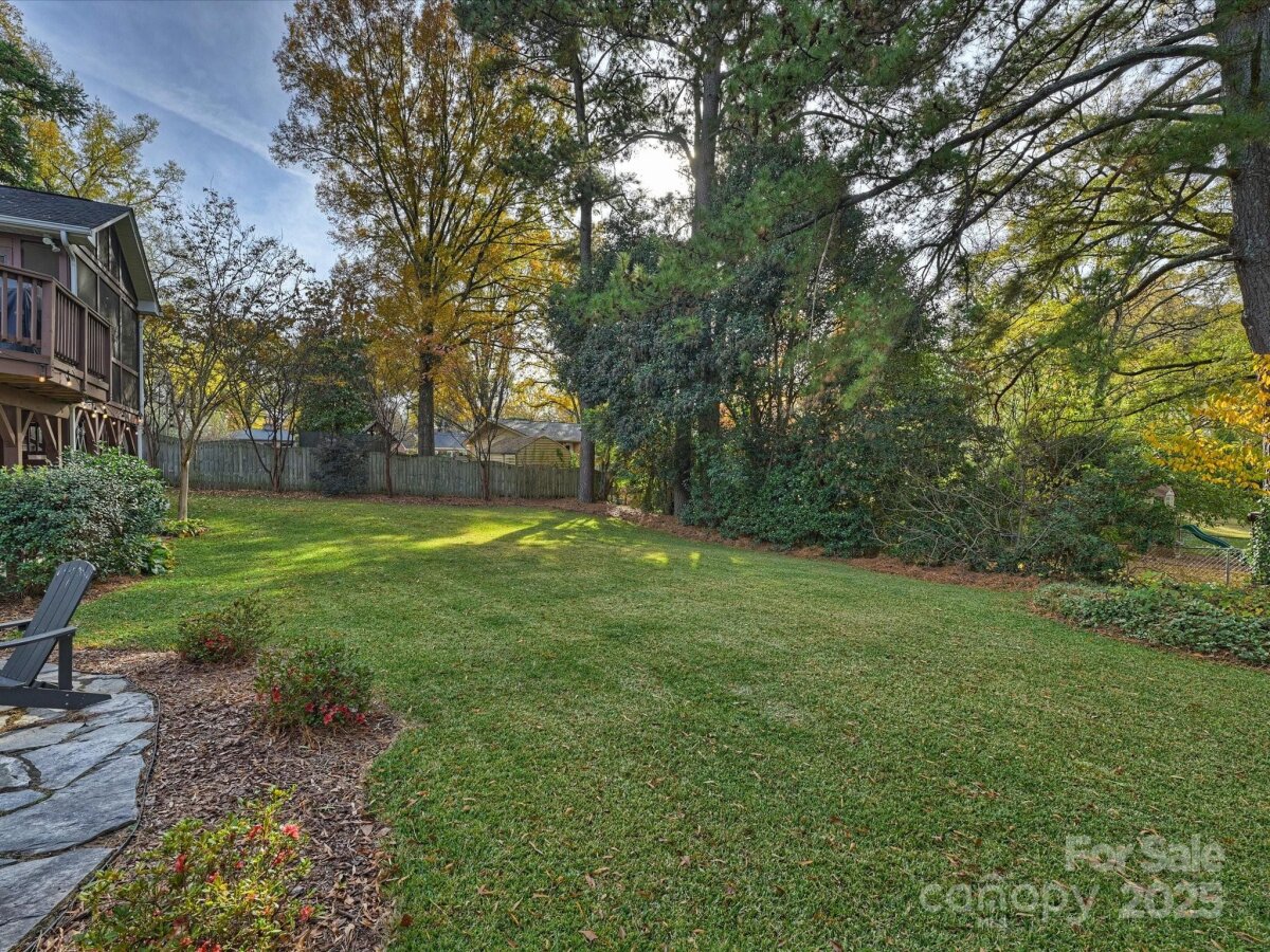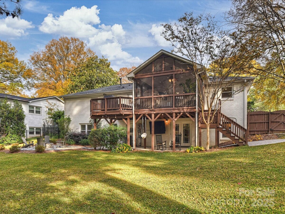 Welcome to this charming brick ranch in Beverly Woods. This one is a rare find offering over 3000 square feet of living space. Located in the heart of Southpark, with close proximity to uptown, the airport and South Charlotte. The floorplan is open and bright. The main level includes living, dining and kitchen areas including a full wall of built in shelving and storage. The kitchen opens into a screened in porch for optimal outdoor living space. There is also large deck for grilling and more gathering space. The primary bedroom with has an ensuite bathroom, two additional bedrooms and another full bath complete the main level. Downstairs is the expansive bonus room. This amazing multi-purpose space is a homeowners dream offering endless opportunities. It opens to the lower patio which provides a shaded area for outdoor lounging. Back inside is a privately appointed fourth bedroom with an ensuite full bathroom. Completing the lower level is the laundry room, drop zone hallway, and a utility room with an abundance of additional storage space. The home has beautiful re-finished hardwood flooring throughout. The large back yard is fully fenced with a built-in fire pit area. This home offers tremendous space, charm and elegance in the heart of Southpark.