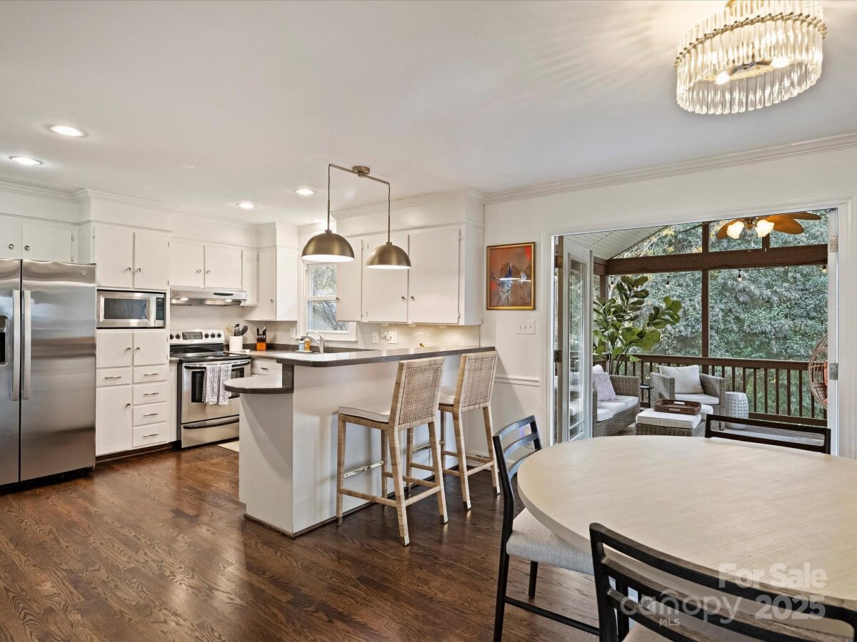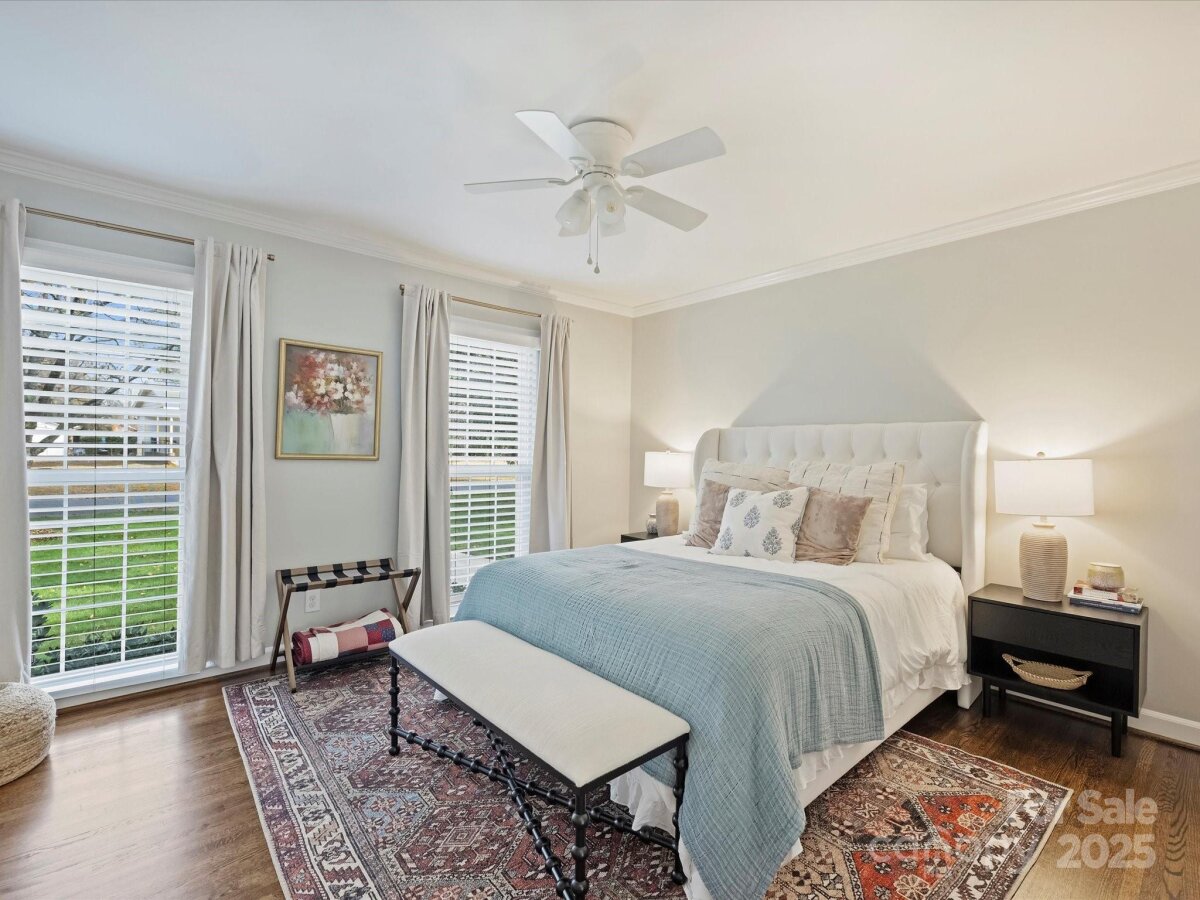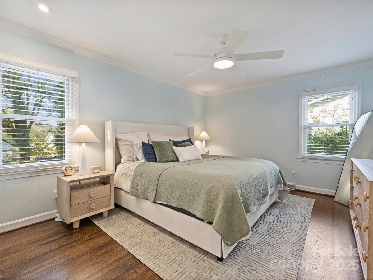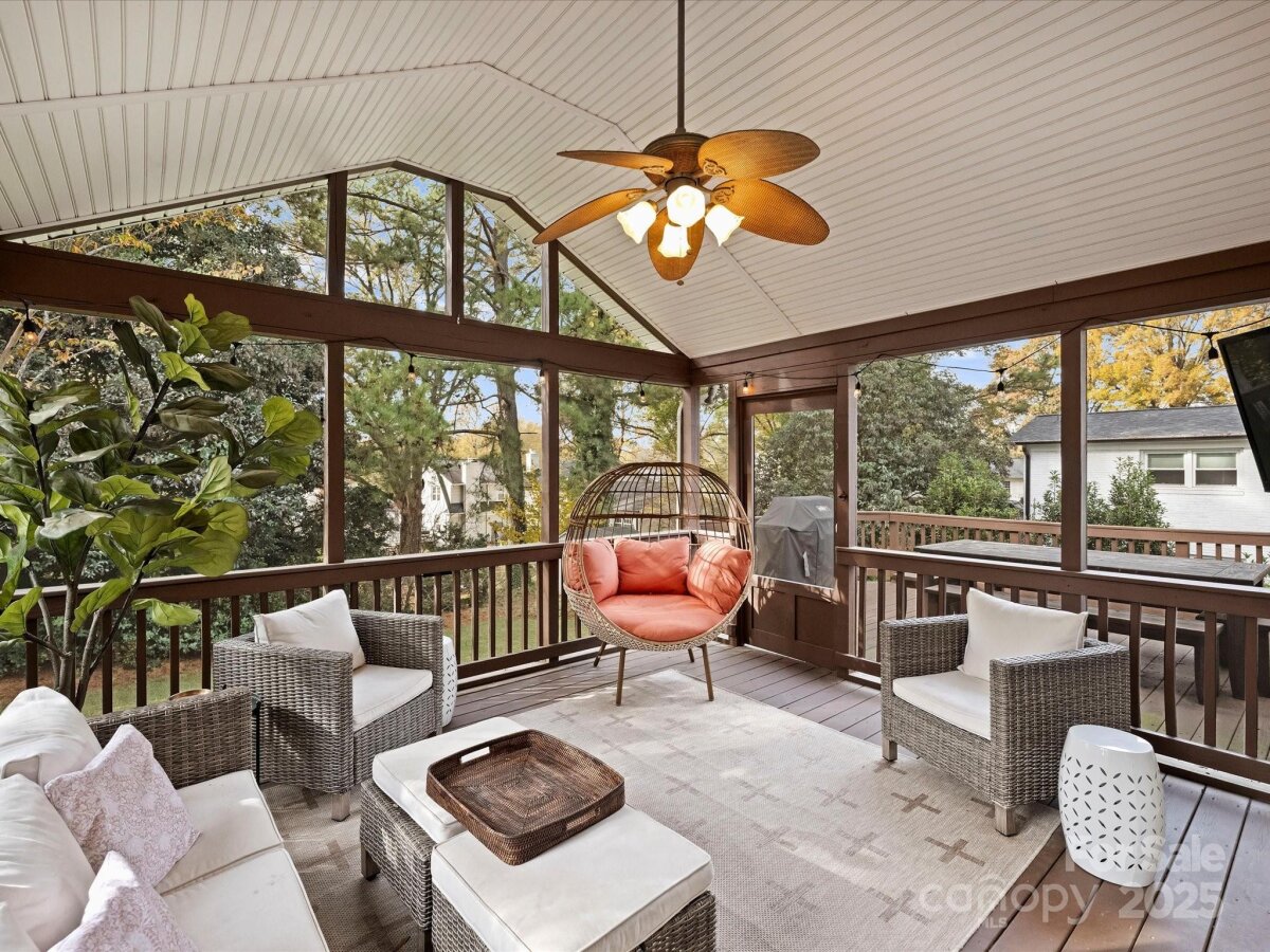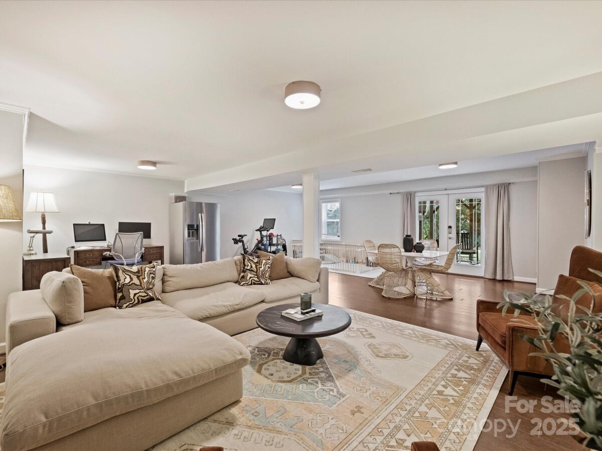 Welcome to this charming brick ranch in Beverly Woods. This one is a rare find offering over 3000 square feet of living space. Located in the heart of Southpark, with close proximity to uptown, the airport and South Charlotte. The floorplan is open and bright. The main level includes living, dining and kitchen areas including a full wall of built in shelving and storage. The kitchen opens into a screened in porch for optimal outdoor living space. There is also large deck for grilling and more gathering space. The primary bedroom with has an ensuite bathroom, two additional bedrooms and another full bath complete the main level. Downstairs is the expansive bonus room. This amazing multi-purpose space is a homeowners dream offering endless opportunities. It opens to the lower patio which provides a shaded area for outdoor lounging. Back inside is a privately appointed fourth bedroom with an ensuite full bathroom. Completing the lower level is the laundry room, drop zone hallway, and a utility room with an abundance of additional storage space. The home has beautiful re-finished hardwood flooring throughout. The large back yard is fully fenced with a built-in fire pit area. This home offers tremendous space, charm and elegance in the heart of Southpark.