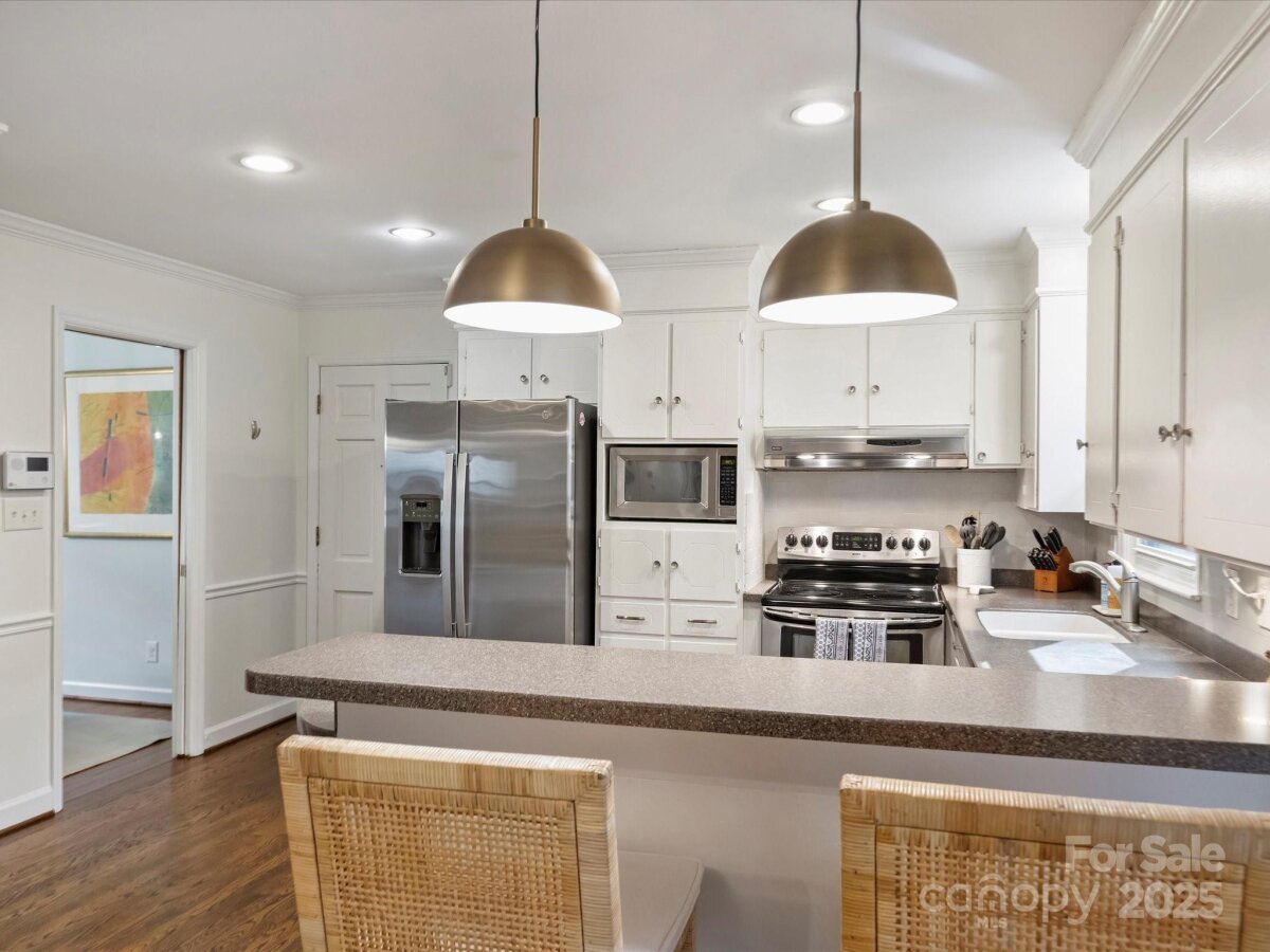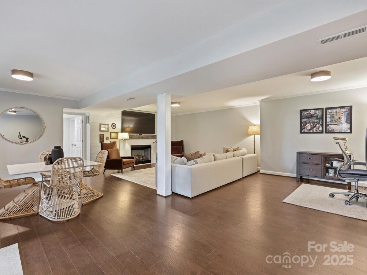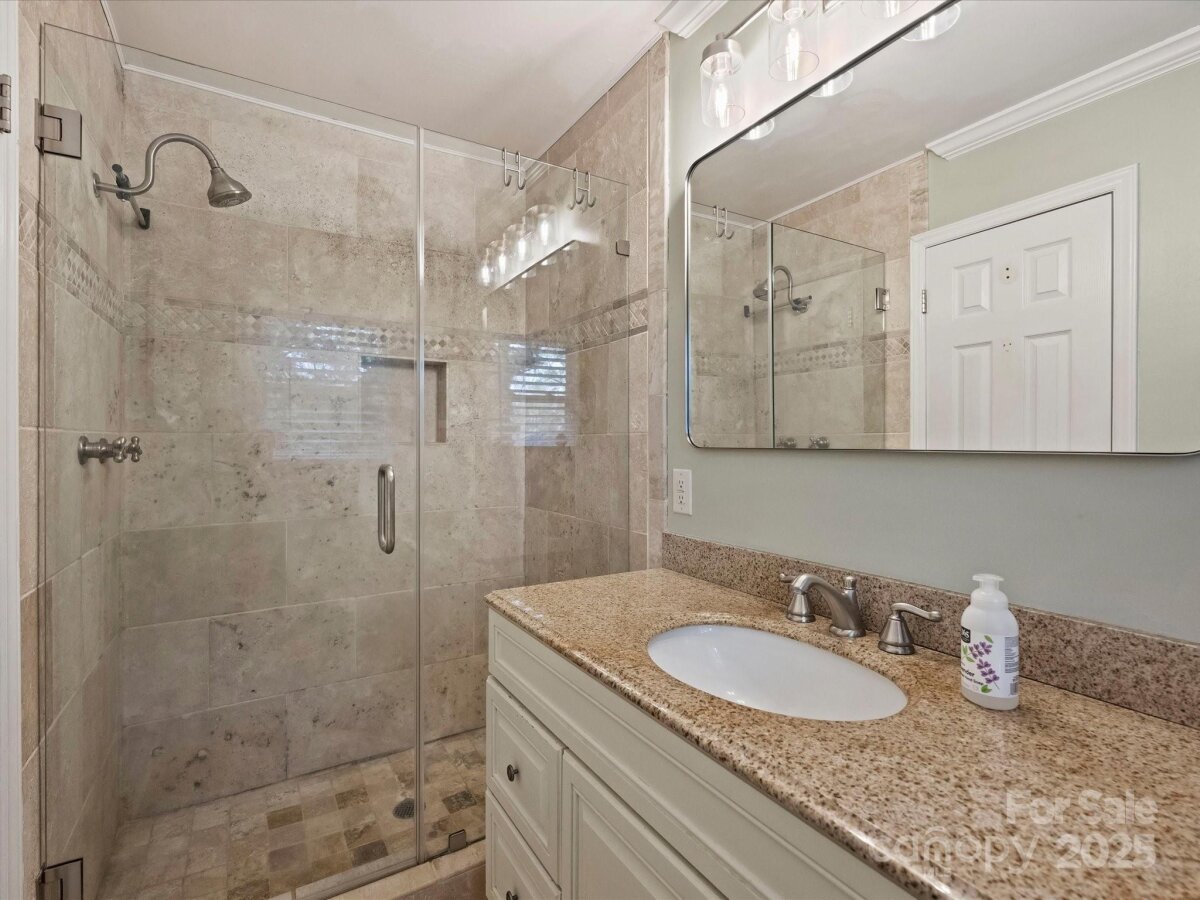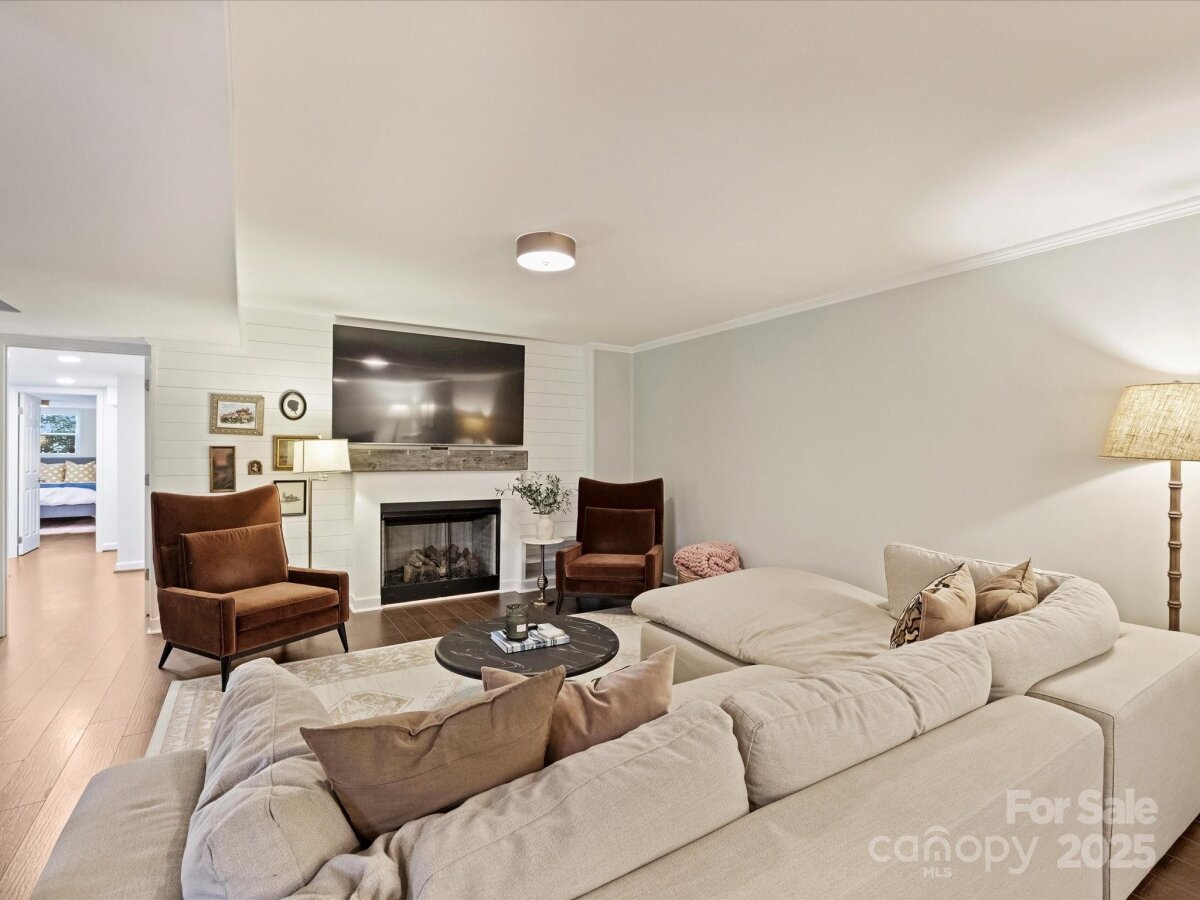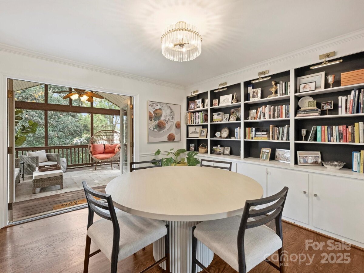 Welcome to this charming brick ranch in Beverly Woods. This one is a rare find offering over 3000 square feet of living space. Located in the heart of Southpark, with close proximity to uptown, the airport and South Charlotte. The floorplan is open and bright. The main level includes living, dining and kitchen areas including a full wall of built in shelving and storage. The kitchen opens into a screened in porch for optimal outdoor living space. There is also large deck for grilling and more gathering space. The primary bedroom with has an ensuite bathroom, two additional bedrooms and another full bath complete the main level. Downstairs is the expansive bonus room. This amazing multi-purpose space is a homeowners dream offering endless opportunities. It opens to the lower patio which provides a shaded area for outdoor lounging. Back inside is a privately appointed fourth bedroom with an ensuite full bathroom. Completing the lower level is the laundry room, drop zone hallway, and a utility room with an abundance of additional storage space. The home has beautiful re-finished hardwood flooring throughout. The large back yard is fully fenced with a built-in fire pit area. This home offers tremendous space, charm and elegance in the heart of Southpark.