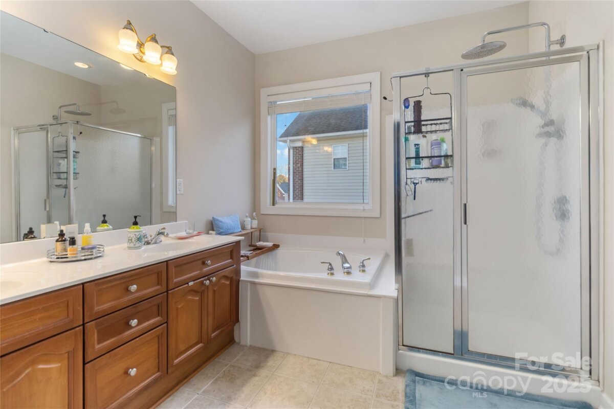 Welcome home to Fountaingrove! Gorgeous 5/3 partial brick with all major components recently upgraded. Tech enabled home features EV charger, auto solar blinds, wi-fi enabled sprinkler system and Tesla solar panels. 2-story foyer with open floor plan, hardwood flooring, crown molding, built in book case w/modern fireplace insert. Main level features full bed and bath. HVAC upstairs/down, Gas water heater both replaced in 2022. Architectural shingle roof replaced 2017. Owner's bedroom oversized 20' x 14' w/ garden tub, dual vanities and custom closet organizer. Walk or skip to Trader joe's. Playground/pool area... Fantastic location near all mallard creek!
