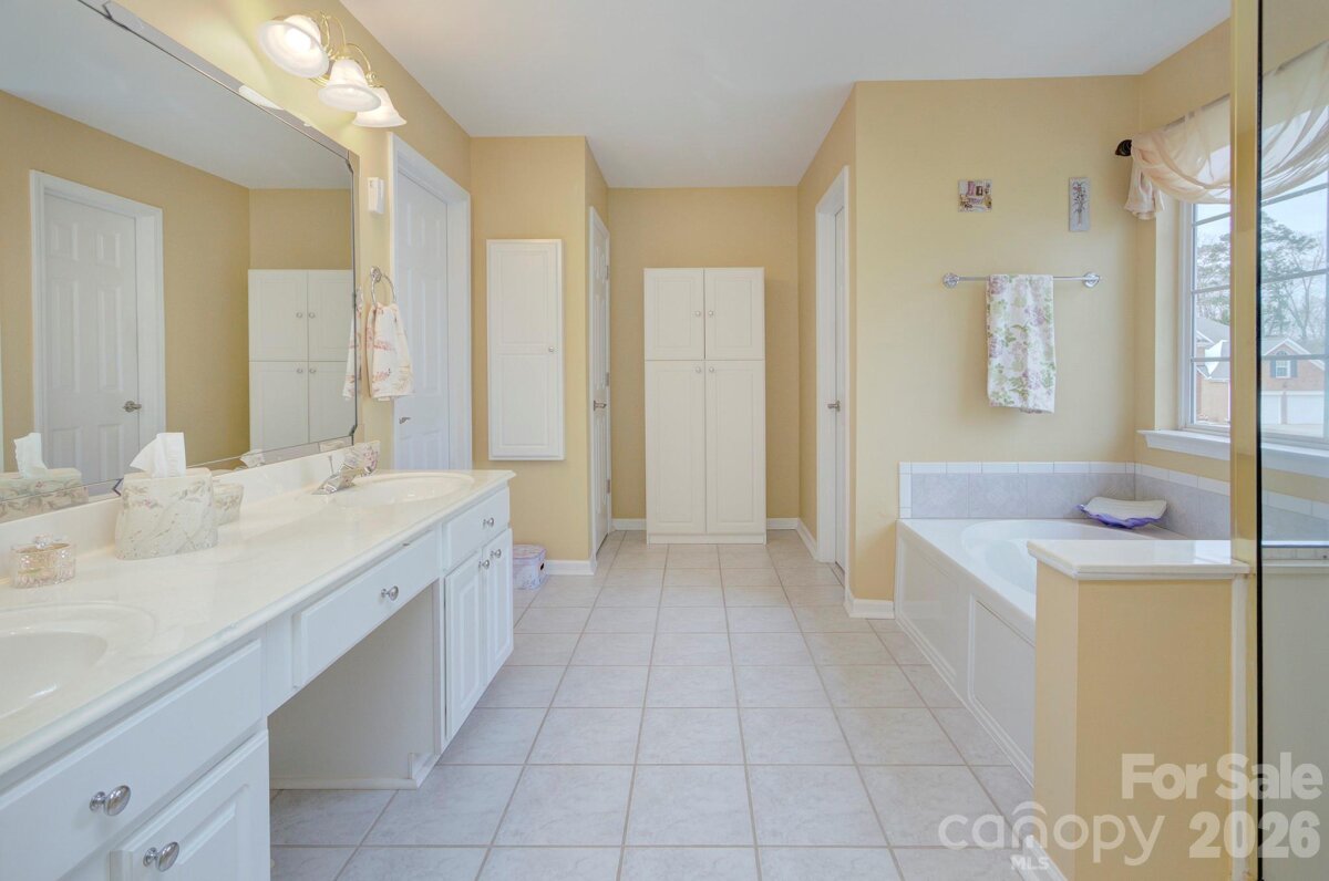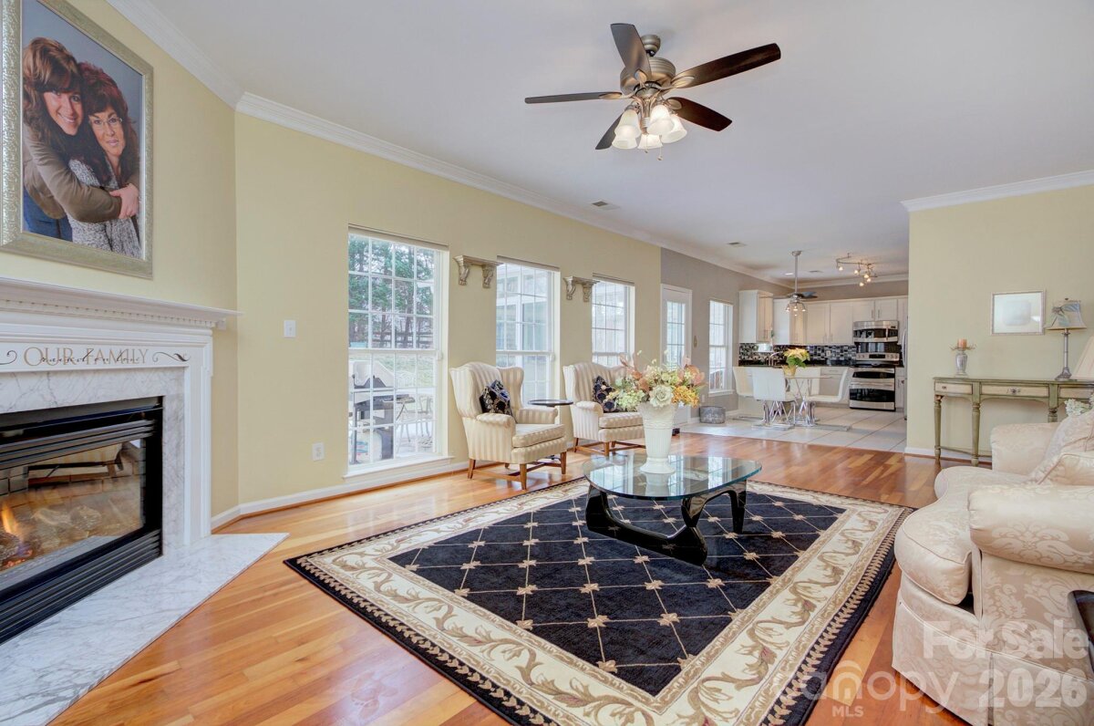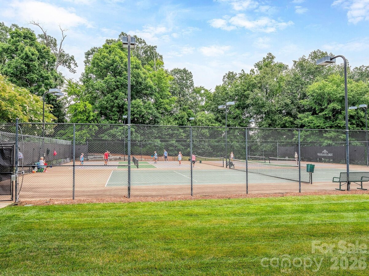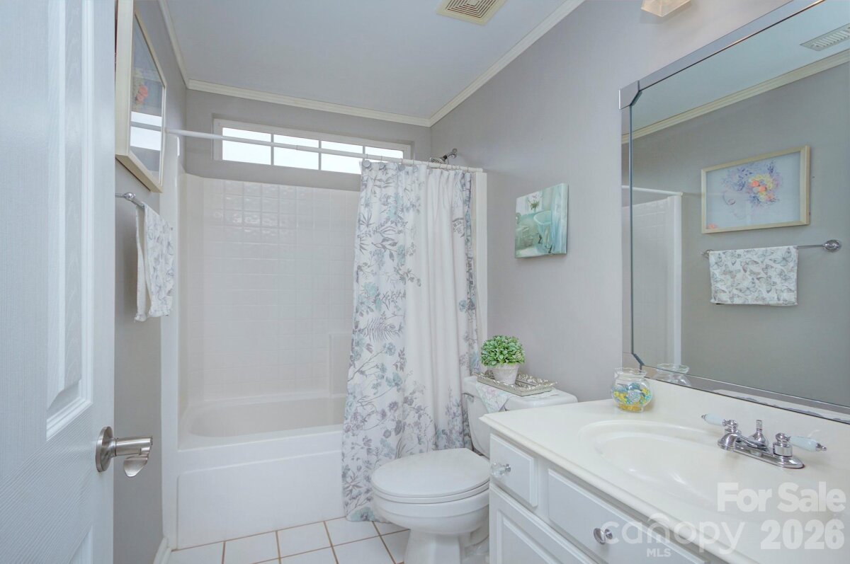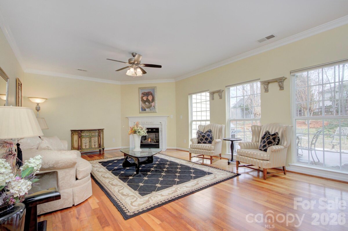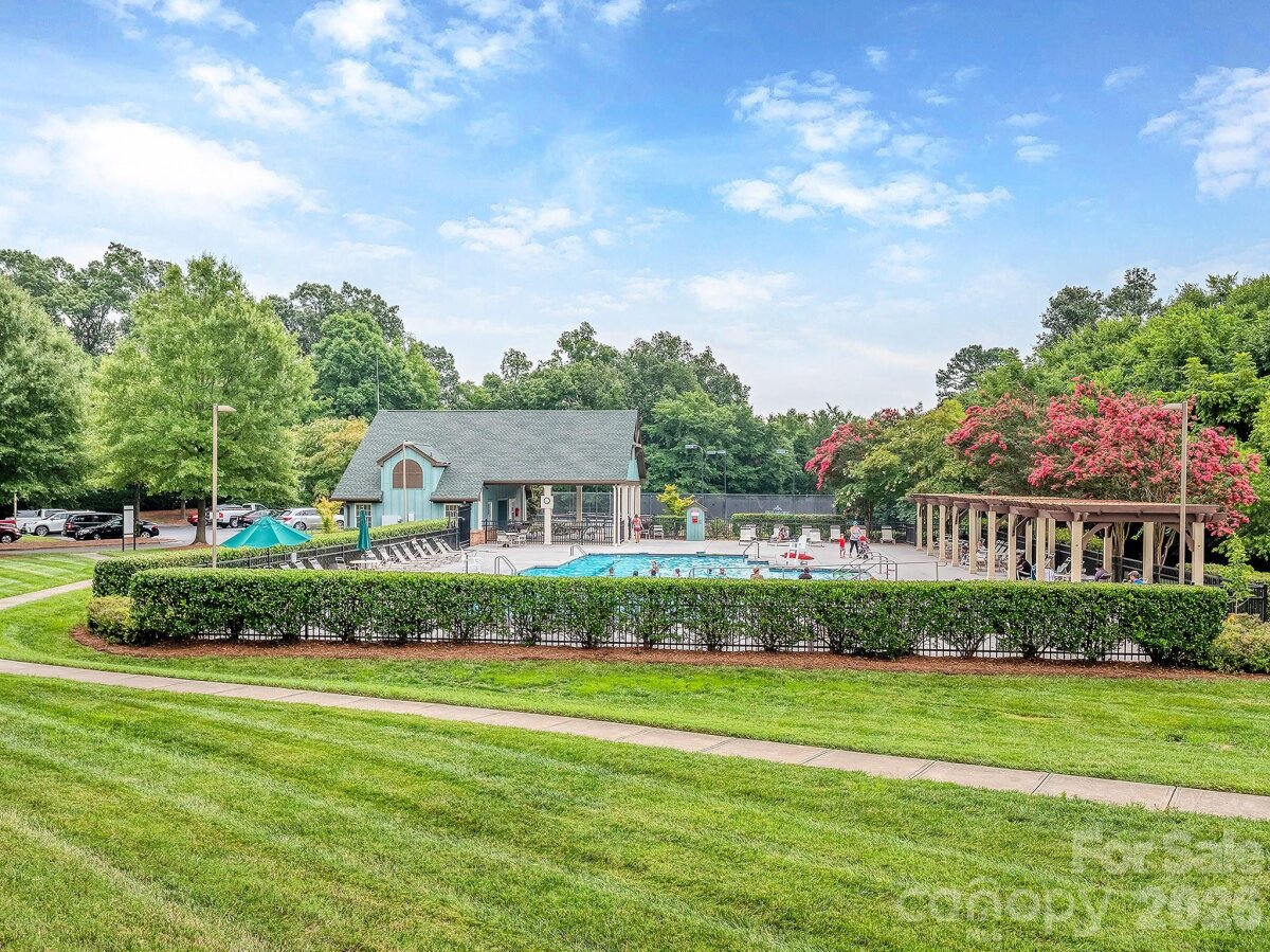 Sought-after Highland Creek home in a perfect location near shopping, dining, and the interstate—plus incredible community amenities including 4 pools, tennis courts, basketball courts, sand volleyball, walking trails, and playgrounds. This home truly stands out with its own private, fenced-in backyard oasis featuring a gorgeous saltwater fiberglass pool installed in 2022 by Superior Pools, an extended patio, and a stunning sunroom overlooking the fenced backyard—outdoor living at its finest! Inside, enjoy an expansive great room with hardwood floors and a gas fireplace, open to a bright white kitchen with granite countertops, custom ceramic tile backsplash, and stainless-steel appliances. A huge walk-in laundry room on the main level offers abundant storage. (White cabinet in laundry room remains.) Formal dining room with gleaming hardwoods. Adorable powder room on main level with upgraded vanity. Two-car garage features a sealed finished floor and built-in storage shelving. Upstairs includes a spacious family room/loft for additional entertaining, three bedrooms, and two full baths. The primary suite is generously sized with room for a sitting area and overlooks the beautiful backyard. Primary bath offers an expansive vanity, separate shower and garden tub, private water closet, linen closet, built-in ironing board, and a huge walk-in closet with adjacent walk-in attic storage. White cabinet in primary bath remains. Loft includes surround sound speakers (never used, sold as-is). Extra storage room next to patio. Additional features: whole-house water softener (no known problems - sold as-is), roof approximately 2013, HVAC approximately 2016 and 2022. Washer, dryer, refrigerator, and wicker furniture in sunroom remain. Windows sold as-is. ADT alarm currently connected to windows. This is a gem! Rare home in Highland Creek which offers it's own saltwater pool and sunroom!