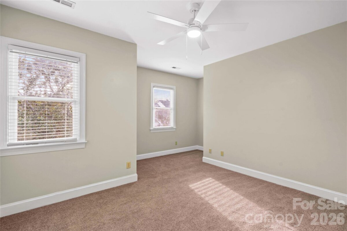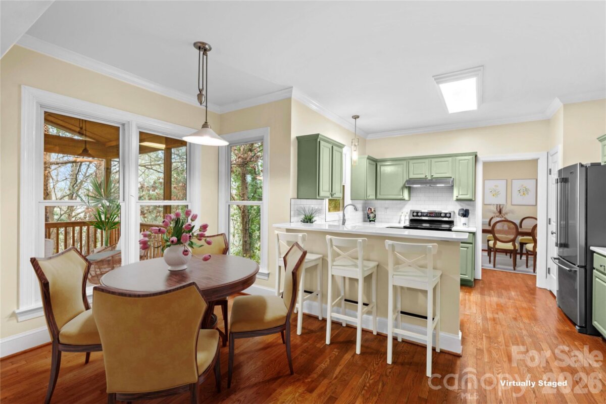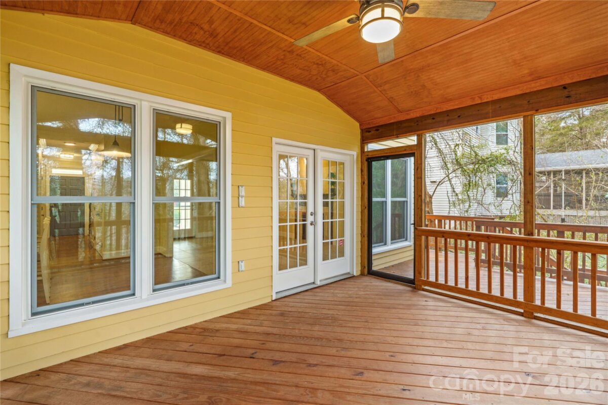 Charming home with rocking chair front porch is located in the highly sought after McConnell subdivision a mile from the heart of Davidson. On a cul-de-sac street, this private, wooded lot provides serene views of treetops and community pond. Enjoy a morning coffee or evening cocktail on the screened porch feeling like you are on vacation in the mountains. Community greenspace and playground are a very short stroll around the corner – perfect for gathering with friends. Extremely well-maintained home has open floor plan including a formal dining room and living room featuring hardwood floors. Kitchen with quartz countertops, tile backsplash, and stainless appliances is open to family room with cozy fireplace. Spacious primary bedroom has vaulted ceiling, walk-in closet, and bathroom with garden tub. Three generously sized secondary bedrooms and a full bath are down the hall. Interior of home has been freshly painted and all appliances convey. Exterior highlights include attached storage shed, walking trail straight to pond, treetop views from screened porch, walk-in encapsulated crawlspace provides extra storage space, maintenance free backyard, flat front yard and driveway, short walk to neighborhood greenspace and playground. Recent updates to the home include encapsulated crawlspace (2025), air purification systems (2025), all new Pella windows installed (2024), quartz countertops (2024), Stainmaster carpet throughout second floor (2024), HVAC systems (2018/2019). McConnell is a hugely popular community within walking or biking distance to downtown Davidson and only 0.4 miles to the Davidson Greenway. This home creates a lifestyle of nature appreciation, outdoor activities, and small town vibes.