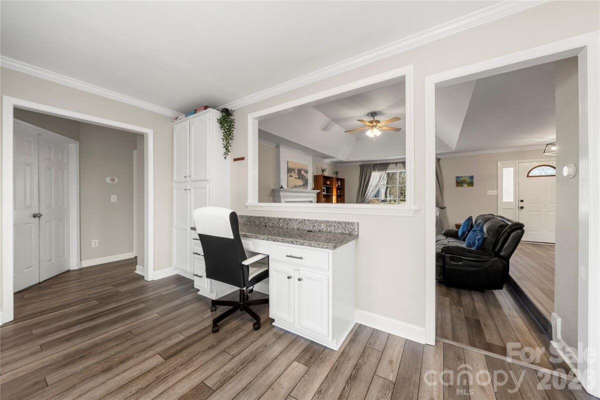 Welcome to 8615 Golf Ridge Drive, an updated ranch-style home perfectly positioned on the 5th green of the golf course. Step inside to find new LVP flooring throughout most of the main level (1/2026). The kitchen features granite countertops, stainless steel appliances, a tile backsplash, breakfast nook, and direct access to the outdoor deck. The dishwasher was replaced in 2022. The living room is highlighted by a gas fireplace with logs replaced in December 2024. The primary suite offers a walk-in closet, direct access to the outdoor deck and an ensuite bath with double vanity, walk-in shower, and soaking tub. A flexible bonus space provides the perfect option for a home office, workout room, or hobby space. Three additional bedrooms and two full bathrooms complete the functional layout. Outside, enjoy the expansive 37’ deck overlooking the golf course, a fully fenced backyard, and a fire pit—ideal for entertaining or relaxing. Notable updates include: • Roof replacement (12/2020) • Exterior siding and deck repainted (2/2026) • Tankless water heater (6/2025) • Gutter leaf guards and French drains (1/2021) • Vapor barrier & dehumidifier added to crawlspace (6/2021) • Washer & dryer (3/2024) • Furnace replacement (10/2020) One of the standout perks of this neighborhood is that the Raintree Country Club initiation fee is waived for residents!! Optional membership (monthly fee applies—see attached details) provides access to two 18-hole golf courses, a practice facility with two putting greens and a driving range, an outdoor pool with waterslide, nine lighted tennis courts (five clay, four hard), a fitness center, banquet and meeting spaces, and the Lakeside Grill with three dining levels. All residents also enjoy community amenities including a pond, playground, and outdoor workout area at no additional cost. Come see all this property has to offer!