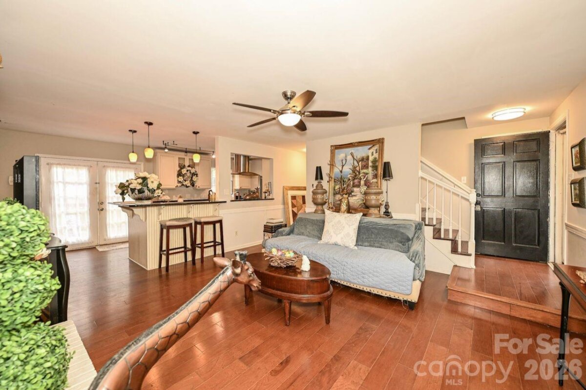Well-maintained home in the heart of South Charlotte is ready for your tour. Upon entering, you will fall in love with the open floor plan when you first view the inviting living room with gas fireplace. Continue on to see the chef's dream of a kitchen with gas range, range hood, granite countertops, stainless steel appliances and modern lighting. The house is fresh and clean with new flooring in primary bedroom, and new carpet and paint in both upstairs bedrooms. Out back you will appreciate the deck and privacy of a fenced in back yard. Within the past six months, owners installed new fiber cement siding on most of the house. This home is so pretty that you won't want your tour to end!