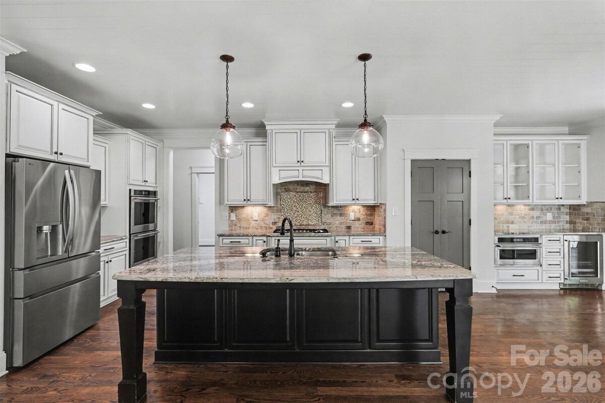 Located on one of the premier lots in The Reserve at River Run, this meticulously maintained home is truly move-in ready. Freshly painted and filled with thoughtful custom touches, it offers both elegance and functionality throughout. The open-concept living space is designed for effortless Carolina entertaining, featuring trifold doors that seamlessly connect the kitchen to a spacious screened porch. The great room showcases a coffered ceiling, a gas log fireplace, and beautifully lighted built-in shelving. The kitchen is a chef’s dream, complete with double ovens, a gas cooktop, a built-in beverage center with cooler, and glass cabinet shelving. A butler’s pantry with wine cooler adds both convenience and style. A secondary bedroom on the main level provides flexibility for guests or multi-generational living. Upstairs, you’ll find three generously sized bedrooms with walk-in closets, a large bonus/game room over the garage, and walk-in attic storage. Additional flex space currently set up as a private office with built-in desk and shelving. Step outside to enjoy a raised patio, heated/cooled screened porch/4 seasons room, and beautifully landscaped yard designed for relaxation and privacy. There is room for a pool, several options. The upgraded irrigation system and premium Zenith Zoysia grass enhance both beauty and efficiency. Additional highlights include a conditioned/sealed crawl space, Rinnai tankless water heater, and a new LG refrigerator. Close access to Greenway and Nature Preserve. This exceptional home blends comfort, style, and smart design—perfect for modern living.