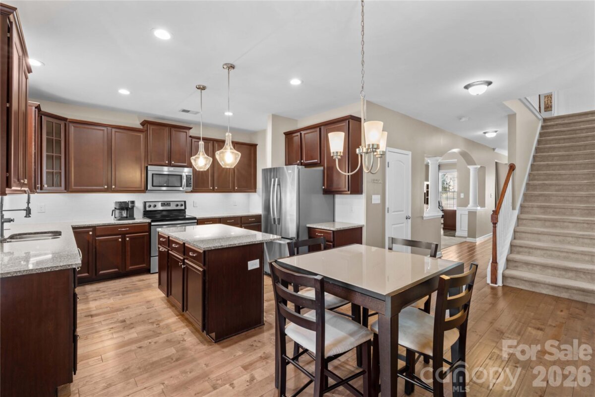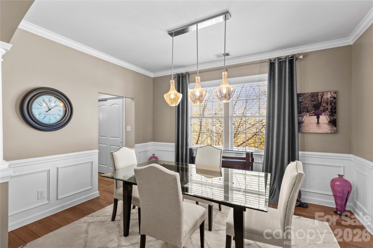 Welcome to your exquisite Mattamy-built home located in Summers Walk, a meticulously maintained residence offering a spacious 4 bedrooms, 3.5 bathrooms, home with an additional 1200 square footage unfinished, walk out basement. Plumbed for a full bathroom and separate bedroom. Step inside to discover an elegant main level featuring stunning 5-inch wide Castillian hand-scraped engineered hardwood floors. The thoughtful layout includes a formal dining room and a versatile flex space, perfect for a second living area or a dedicated home office. The heart of the home, the kitchen, is a chef's delight with stainless steel appliances, luxurious granite countertops, a central island, dark cabinetry, and new modern lighting. Living room offer comfort with a gas fireplace and easily accessible to the outdoor living space. Outdoor living is a dream with a covered deck, complete with ceiling fans, and a reinforced hot tub area—all overlooking a private, fenced-in backyard. Upstairs the generous size primary bedroom offers tray ceilings. Step inside the full primary bath with generous size walk in closet. The home continues to impress with three more bedrooms and two full bathrooms and a dedicated, separate laundry room for convenience. Need storage? No problem – don’t miss the finished storage space. It's easily accessible. Enjoy the Pinnacle Spa model 743 on the back deck or take advantage of the vibrant community that offers resort-style amenities including a pool, clubhouse, dog park, bike paths, and nature trails that connect directly to West Rocky River. Residents have public, private and charter school options. The prime location provides easy access to the charming shopping, dining, and entertainment of downtown Davidson, Huntersville, and Cornelius. Peace of mind living with a new furnace (2024), UV light on furnace to prevent mold growth, new thermostats and updated lighting. For future expansion, the 1,208 sq. ft. unfinished walkout basement is already plumbed for an extra bathroom and framed for an additional bedroom, offering tremendous potential to customize and grow.