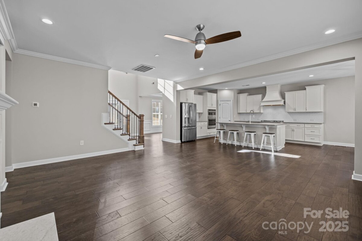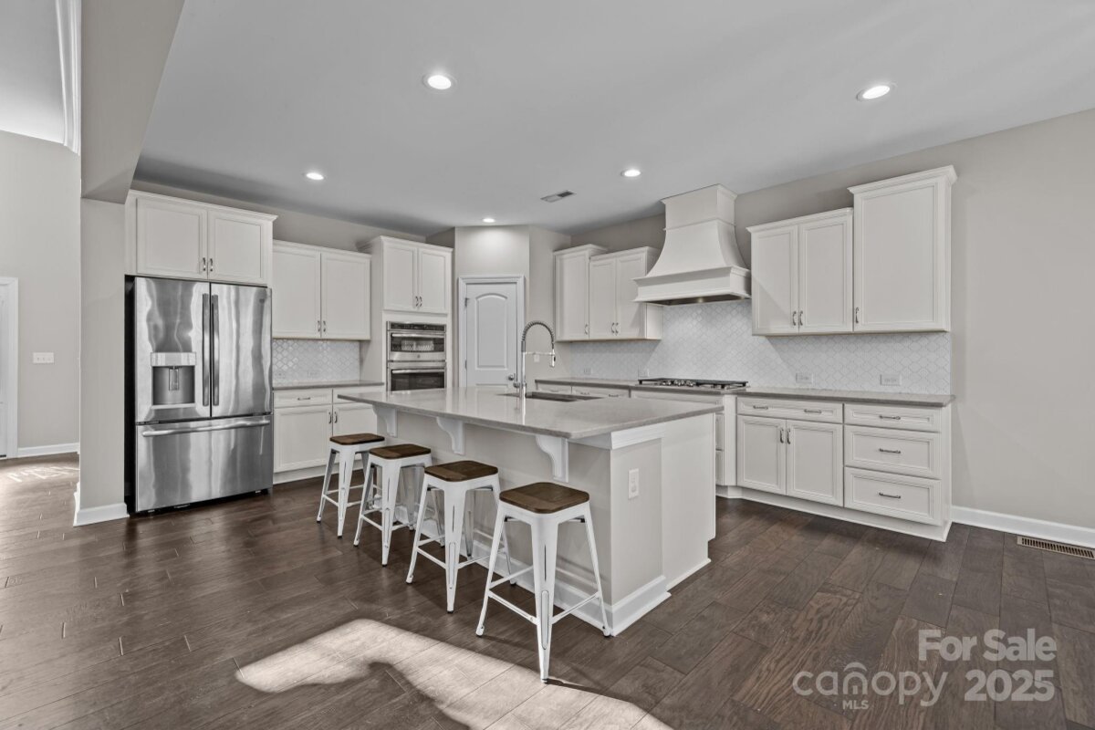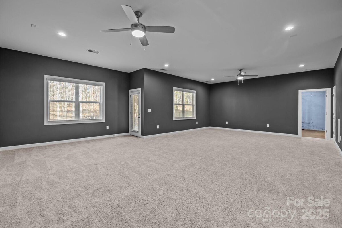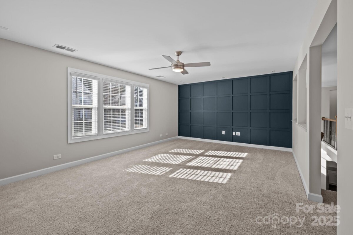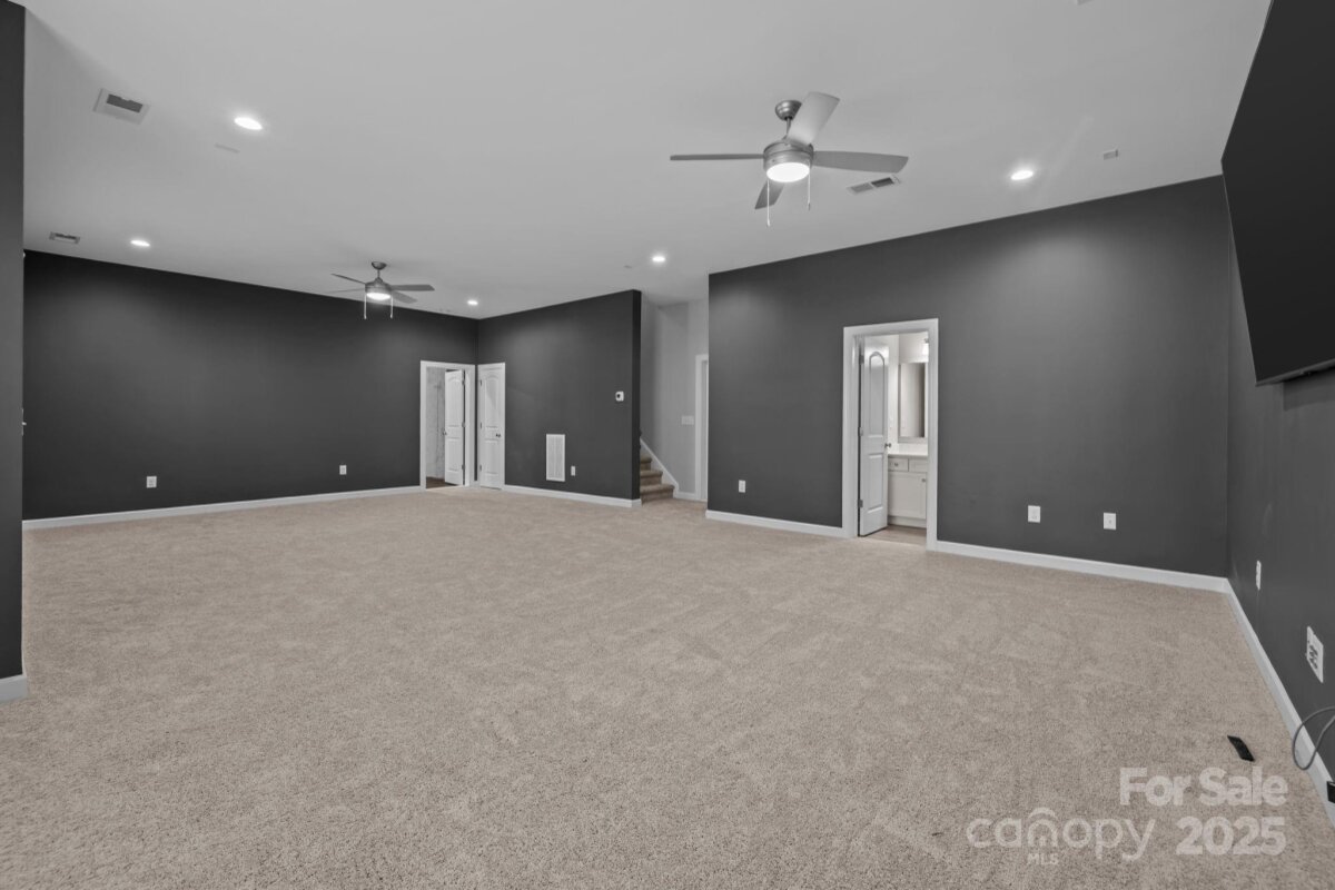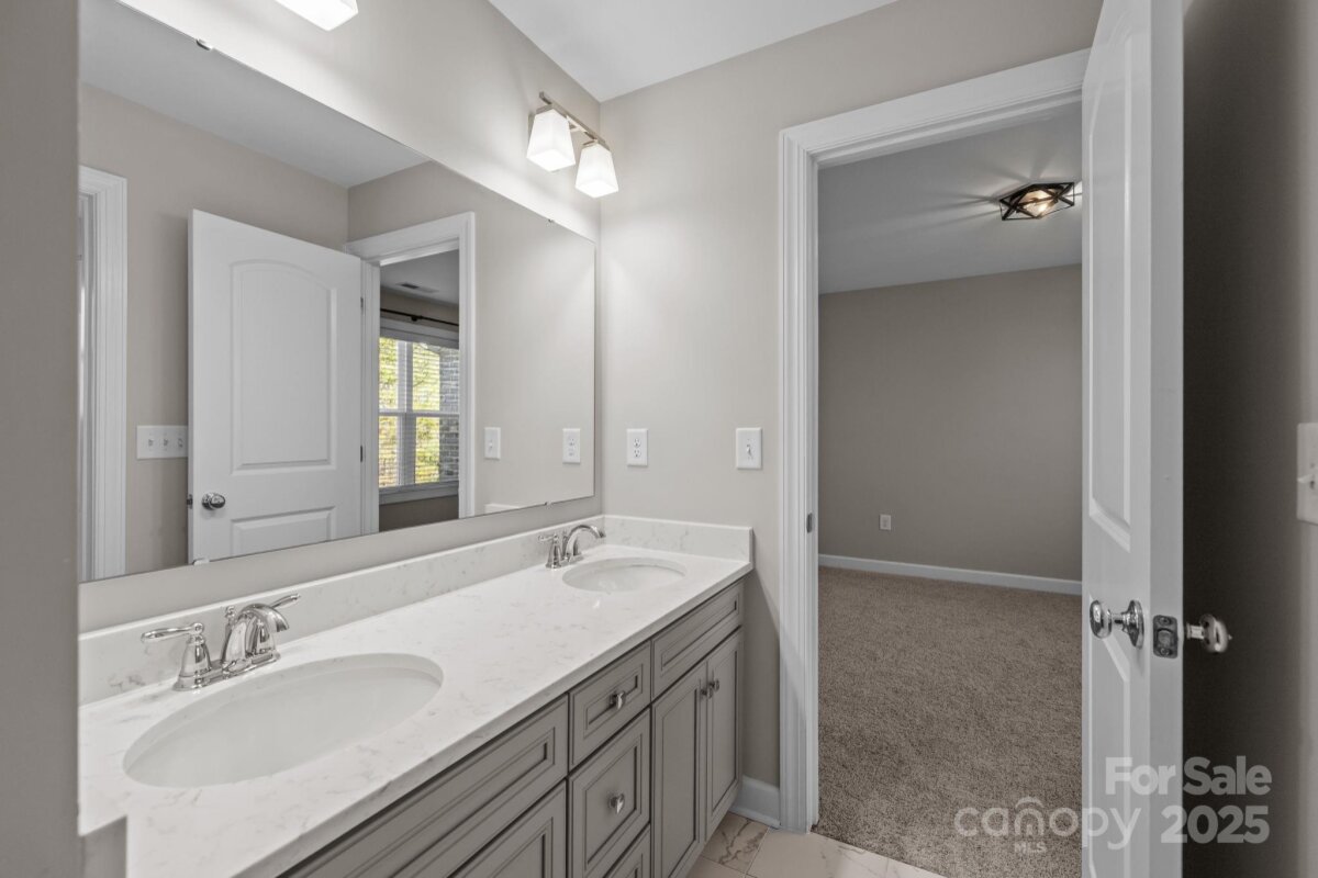 This beautiful all brick home features a two-car side-entry garage and a fully finished walkout basement complete with a gym and full bath - the main patio opens to attractive, low maintenance hardscaping - perfect for entertaining or flexible living. A grand two-story foyer welcomes you inside, providing a versatile flex room with tray ceiling, ideal for a formal living or dining space. The main level offers a first-floor guest bedroom with full bath, while the open-concept kitchen, breakfast area, and family room create an inviting heart of the home. The family room showcases a gas fireplace with dual media niches, and the chef’s kitchen impresses with a large island, quartz countertops, white painted cabinetry, stainless steel split cooking, a 36-inch gas cooktop, and a statement specialty vent hood. The sun-filled breakfast room is wrapped in windows and opens to the rear deck. A functional mudroom with built-in drop zone adds everyday convenience. Upstairs, the spacious primary suite features a tray ceiling, sitting area, and walk-in closet, with the bathroom offering a long double vanity, quartz counters, white cabinetry, tile flooring, and a large tiled shower. Two secondary bedrooms share a Jack-and-Jill bath, all secondary baths featuring quartz countertops and tile floors, plus another generous bonus room for added living space. Hardwood floors span most of the main level, complemented by an elegant staircase with oak treads and wrought iron balusters. Brand new carpet throughout the home! Enjoy exceptional community amenities including a pool, walking trails, fitness center, and residents’ clubhouse—an ideal blend of comfort, style, and lifestyle. A grand retreat for your family! A home that checks every box - see it in person today!