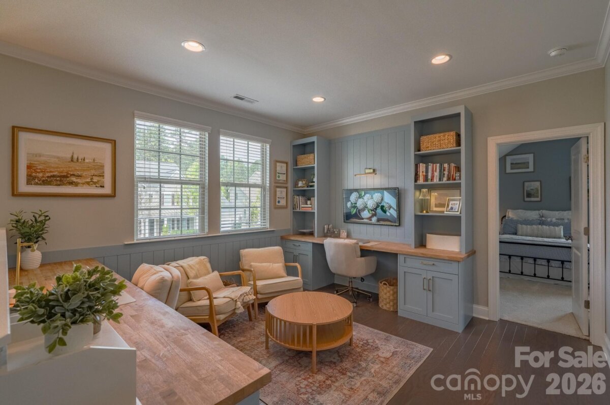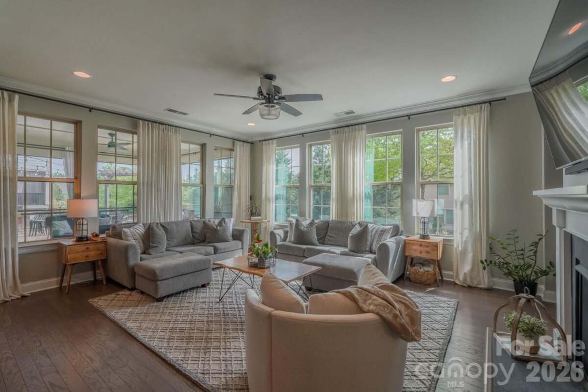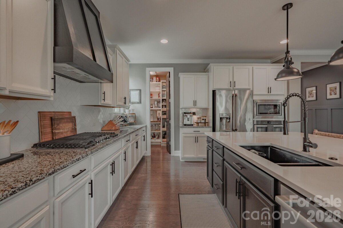Welcome to 17005 Luvera Lane, listed well below recent appraisal and located in the gated community of The Montage within The Palisades. This beautifully upgraded home offers an open floor plan designed for both everyday living and effortless entertaining. The main living area features a spacious kitchen with a large center island, flowing seamlessly into the living and dining spaces. An updated custom pantry provides exceptional storage and organization. Just off the main living area, a screened-in porch extends your living space outdoors and overlooks a custom grilling station and wood-burning fire pit—perfect for relaxing or hosting guests. The home offers 5 bedrooms and 4 full bathrooms, including a guest suite on the main level, ideal for visitors or multi-generational living. A dedicated office features dual desk areas and built-in cabinetry, creating a functional and stylish workspace. Additional highlights include a bonus room with built-in cabinetry for extra storage and a convenient drop zone off the garage that leads into a large storage room, providing practical everyday organization. Upstairs, the primary suite serves as a private retreat, complete with two custom walk-in closets and a spacious en-suite bath. Thoughtful upgrades and custom features can be found throughout the home, enhancing both style and functionality. Exterior features include in-ground irrigation and landscape lighting, adding to the home’s curb appeal and ease of maintenance.Enjoy living in one of Charlotte’s premier communities, offering privacy, amenities, and a highly desirable location within The Palisades.
