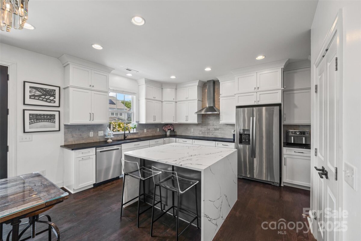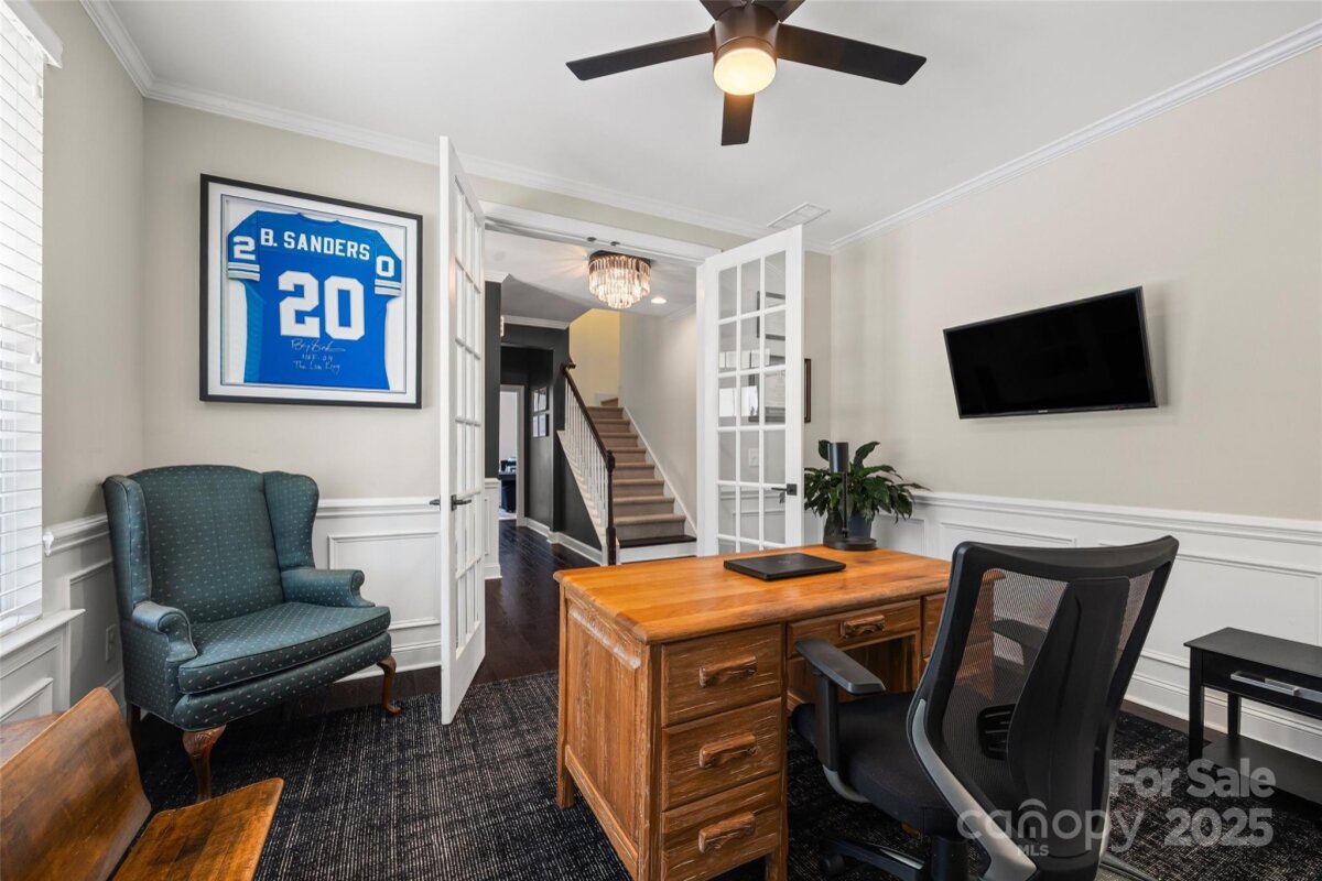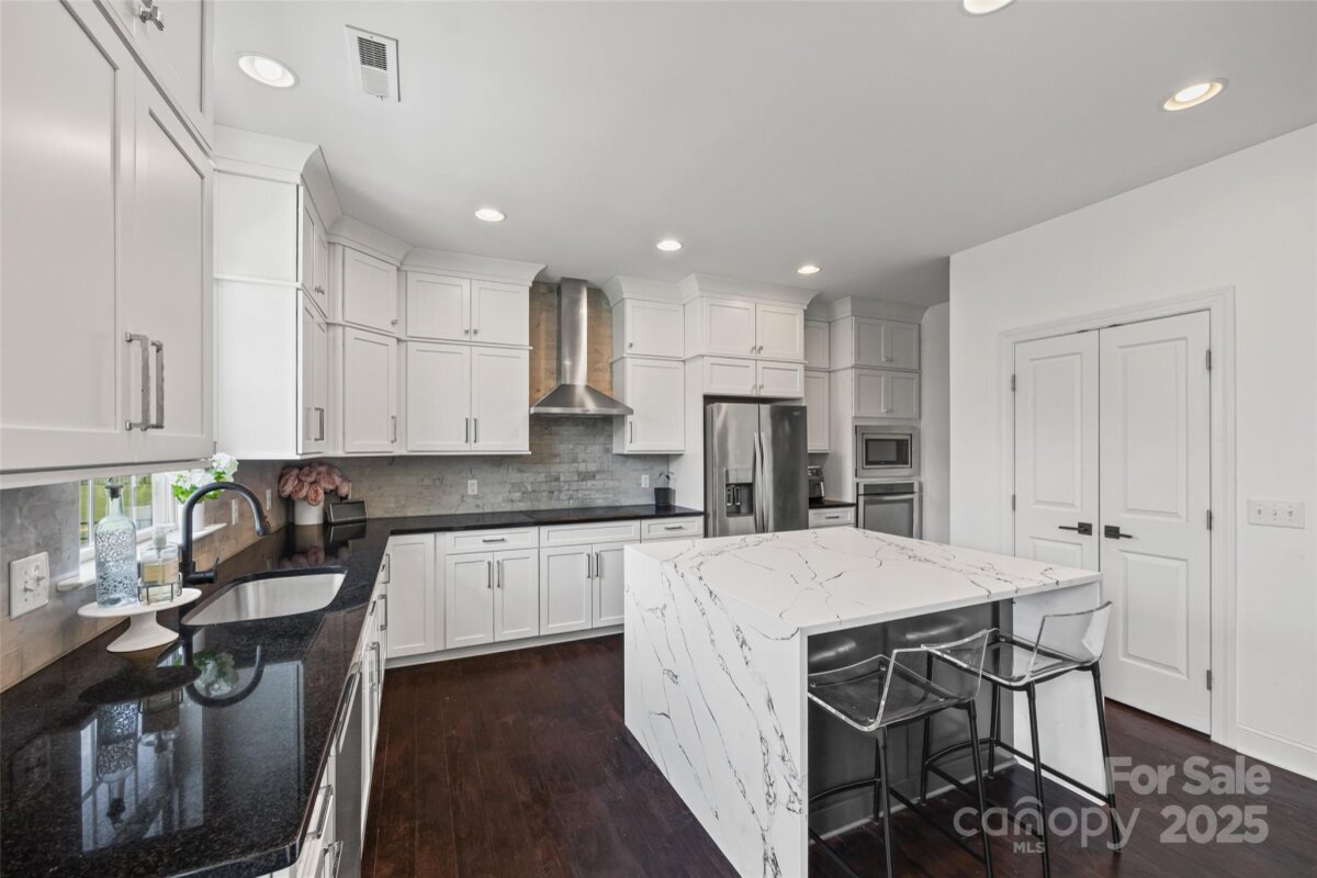 Stylish, spacious, and made for elegant living. From the fabulous curb appeal with in-ground irrigation to the amazing kitchen, every detail has been thoughtfully designed. Inside you will find your dream kitchen with a spectacular waterfall quartz island which opens to comfortable dining and living space-perfect for everyday moments and entertaining alike. Main floor bedroom and full bathroom, ideal for guests or flexible use. A dignified office with french doors makes a perfect work space. Upstairs step into your private retreat-an expansive primary bedroom with an airy layout and beautiful coffered ceiling creating a sense of calm and luxury. The impressive ensuite bathroom has an massive walk-in closet. Laundry room is conveniently located between the 4 bedrooms. The top floor versatile flex room w/ensuite bathroom offers endless possibilities-movie room, home gym, bedroom or playroom to suit your lifestyle. This home provides space, style, and location in one perfect package.