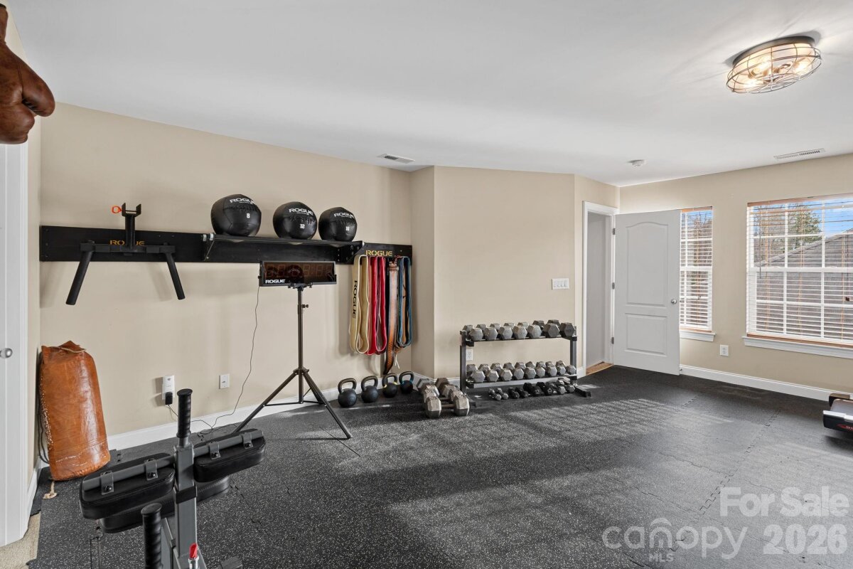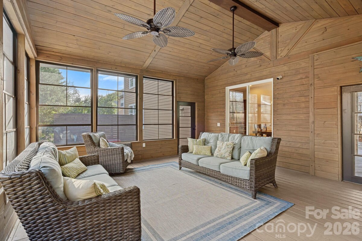 MOVE-IN READY!! Interior freshly painted. New roof, mechanicals, appliances, and more! Gorgeous enclosed wood paneled porch! 5 bed, 3.5 bath 3 level stately Palisades residence that is designed for elevated entertaining on a grand scale, yet remains warm and intimate enough for quiet evenings curled up at home-complete with a professional gym so you never have to leave! Enter an impressive two story foyer flanked by a columned living room on one side and a guest bedroom/office on the other. Hardwood floors, wainscot paneling, tray ceilings and recessed lights are just some of the elegant details that set this home apart. There is a large formal dining room with built in cabinetry/bar. The expansive kitchen w island has an abundance of cabinetry, granite countertops, new appliances, separate breakfast area , walk in pantry and bar counter. The kitchen opens to the great room that is anchored by a gas fireplace w mantel-or pass through glass sliders into the cozy wood paneled chalet-like enclosed porch w EZ Breeze windows. The rear porch overlooks the stone patio that is an outdoor playground complete with step lights, granite countertop bar w beverage fridge-keeps all at your fingertips while you soak in the hot tub or sit around the fire-pit. Upstairs find the primary BR & 3 additional BRs. The primary has 2 walk-in closets and large spa-like bathroom w double vanities, soaking tub, shower, water & linen closets. Two of the bedrooms share a jack n jill bath. There is an additional hall full bath. Upstairs laundry room w upper cabinets. Oversized BONUS ROOM overlooks the flowering tree yard. Looking to get your sweat on? Head upstairs to the completely outfitted professional gym with wet bar and walk in closet. Homeowners have done numerous updates! Roof '23, Water heater '23, AC & 1st Flr Furnace '22. (2 furnaces: 1 for 1st flr & 1 for upper 2 floors ). Crawlspace sealed & dehumidified '23, all upstairs carpet '22, exterior painted '22. New appliances: Dishwasher '22, microwave '23 electric range '22, fridge '25. Enjoy access to community amenities, including walking trails, sports courts, pool, playground, fitness center and the Palisades Country Club, which is an optional membership, all just minutes from Lake Wylie, shopping, and CLT Airport.