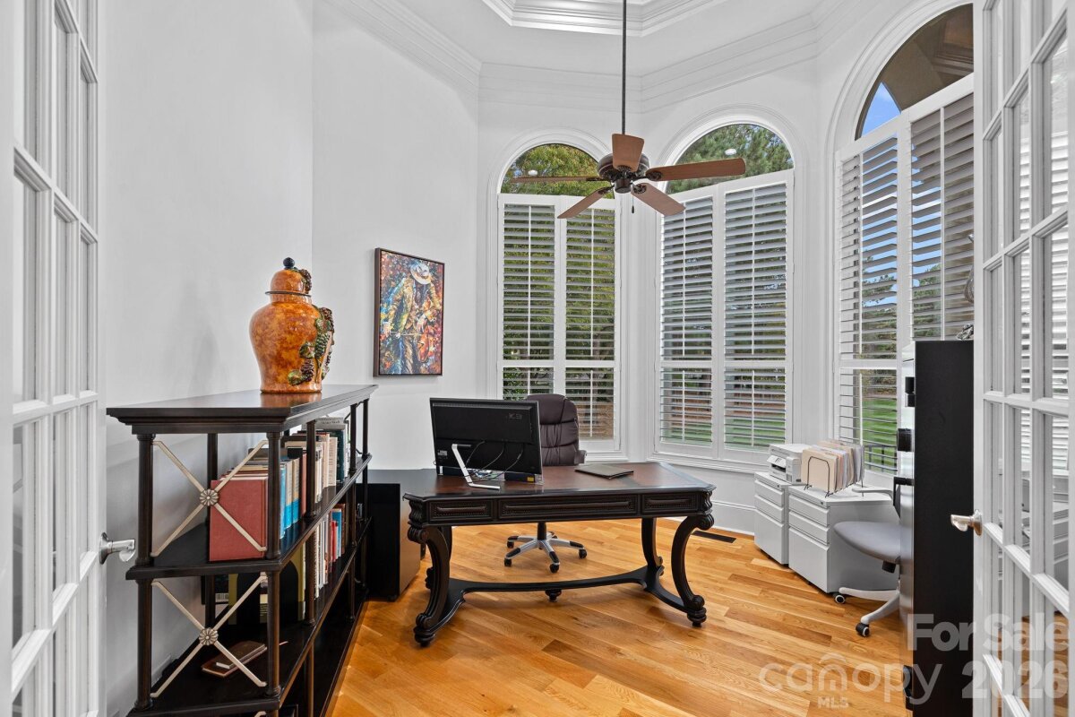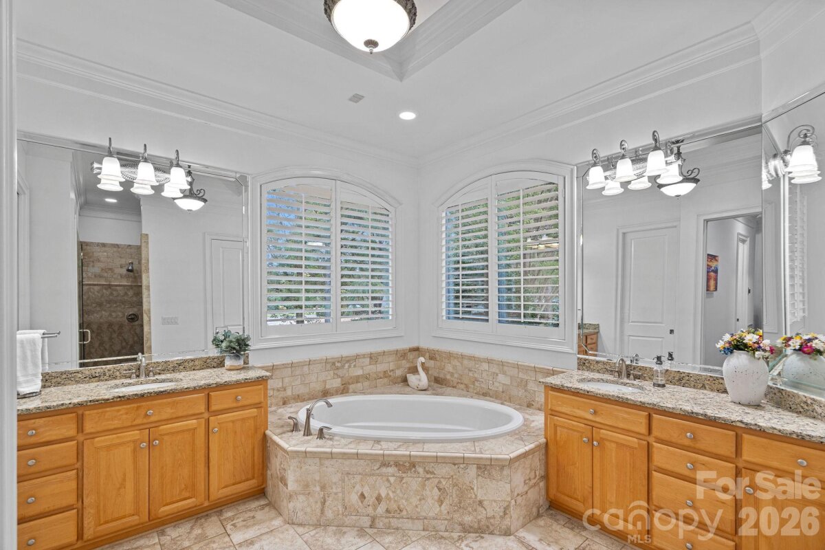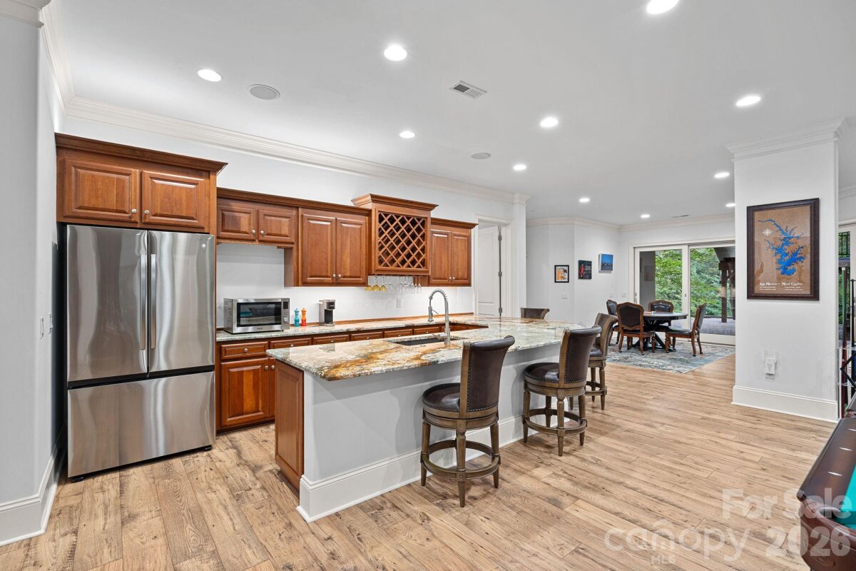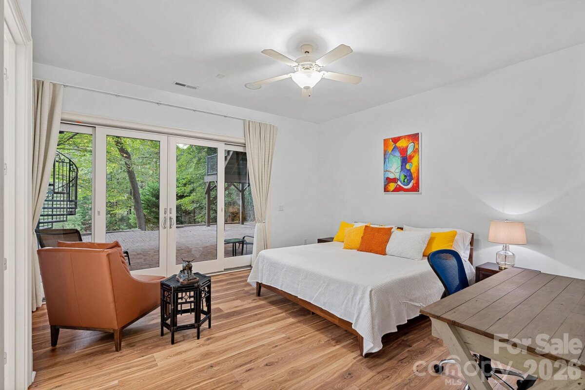 Situated on 1.3 acres in The Point’s prestigious Sturbridge Village, this two level waterfront estate offers views of Lake Norman and Trump National’s 13th fairway. Recently updated with NEW lighting, interior paint, flooring and more, this home exudes refined elegance. Designed with five beautifully appointed bedroom spaces (permitted for four per septic) and over 6,300 SF of luxury finishes. Experience true open concept living as soon as you step inside. Custom curved floor to ceiling windows frame the exquisite views while vaulted ceilings on both levels give the home a light, airy feel. A true chef’s kitchen features Cambria quartz countertops, Thermador professional appliances, and a custom pantry with built-in wine cooler and bar cabinet. The main-level primary suite includes a spa-inspired bath, dual closets and private balcony access. Two additional bedrooms with ensuite baths and a private office are located on the main level. The lower lake level provides an opportunity for second living quarters with kitchen, theatre room, recreation area and two bedroom suites. Outdoor living shines with expansive covered terraces, outdoor kitchen, stone fire pit, private dock with deep-water access and room for a pool. Additional features include a full home instant hot water system, oversized 3-car garage with plenty of guest parking, newer HVAC systems, and walk-in storage areas. Enjoy world-class amenities at Trump National Golf Club—golf, tennis, dining, fitness, social activities. NEW pickleball courts located right across the street.