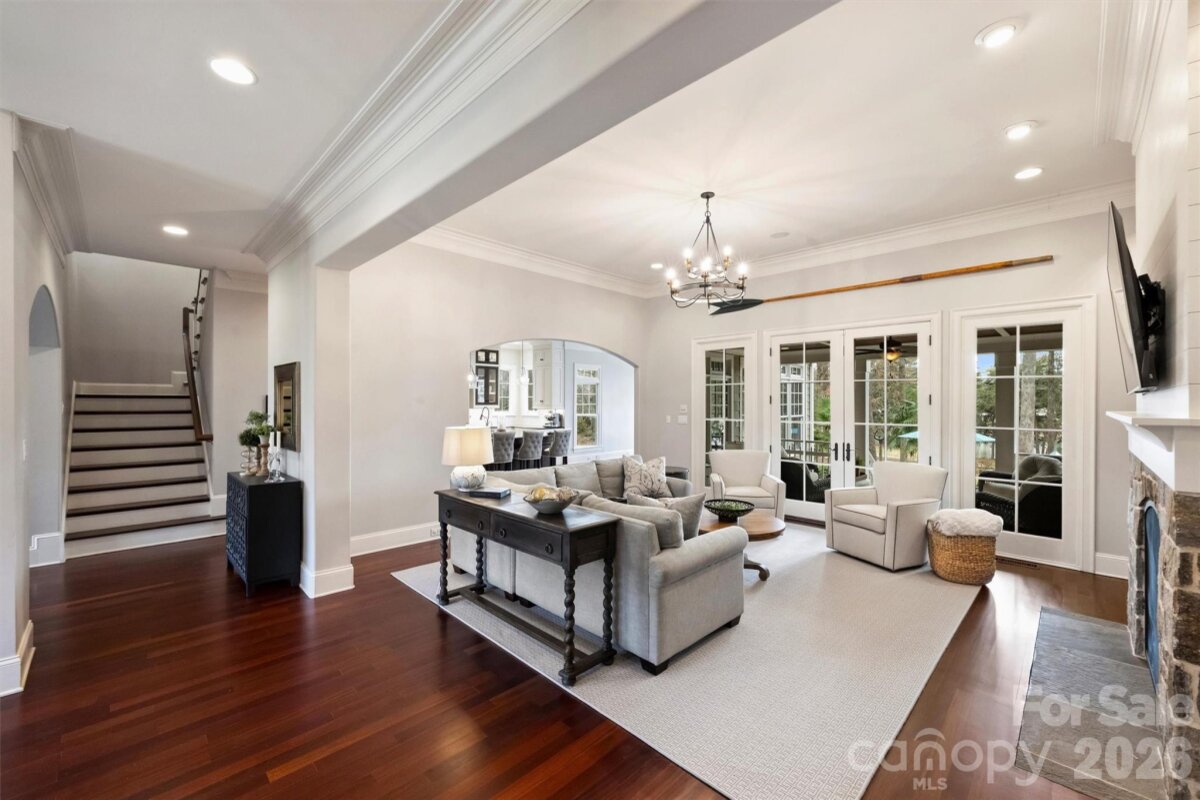 There are homes that impress — and homes that move you. 127 Heathand Lane in The Point does both. Built by Kingswood Custom Homes and set on a premium golf course lot on the 13th green of TNCCC with breathtaking year-round water views, this extensively renovated, move-in-ready luxury residence features refined architecture, designer finishes, and exceptional indoor-outdoor living in one of the area’s most prestigious communities. A comprehensive 2017 main-level renovation transformed the heart of the home, including the chef’s kitchen, breakfast room, wine alcove, laundry room, drop zone, and powder bath. The open-concept entertainer’s kitchen features Monogram appliances, a six-burner gas range with griddle and double ovens, a cabinet-paneled refrigerator, dual refrigerator drawers, granite countertops, an oversized island with seating and two refrigerator drawers, a farmhouse sink, an appliance cabinet/coffee station, and a butler’s pantry with leathered granite and a built-in ice maker. Custom cabinetry and floor-to-ceiling storage blend elegance with functionality. A custom wine alcove with built-in shelving and a U-Line wine cooler completes the space. Architectural details include cherry hardwood floors, heavy crown moulding, plantation shutters, rounded wall corners, solid-core wood doors, and custom millwork throughout. The living room centers around a vented stone fireplace with built-ins and a shiplap accent wall, while the formal dining room showcases refined mouldings ideal for entertaining. The luxury primary suite offers direct access to the covered porch and panoramic views of the golf course and water. The spa-inspired bath, fully renovated in 2020, features heated tile floors, dual quartz-topped vanities, a deep-soaking tub with built-in shelving, an open-concept shower with a bench, a private water closet, and two walk-in closets. Upstairs features three spacious bedrooms with newly renovated en-suite baths (2026) showcasing marble countertops, new vanities, designer tile surrounds, updated lighting, fixtures, mirrors, and new toilets. A large bonus room provides flexible recreation space, and the private executive office/Den includes cherry floors, built-ins, a gas fireplace, and breathtaking lake views. Outdoor living is exceptional, with a covered porch featuring a wood-burning stone fireplace, a built-in ceiling heater, stone flooring, a wood-accented ceiling, and removable wind panels for year-round enjoyment. A lower patio with a built-in wood-burning fire feature enhances the resort-style atmosphere. Major capital improvements include a new roof (2020), a fully encapsulated crawl space by DryPro (2018), and Trane HVAC systems on both levels (2018 & 2022), each with a warranty, providing energy efficiency and long-term value. Boat slip Z-Dock, slip 33, with a boat lift is included (an ideal location at Z-dock). Luxury, privacy, panoramic views, and turnkey updates — this is elevated golf course/lake living at its finest.