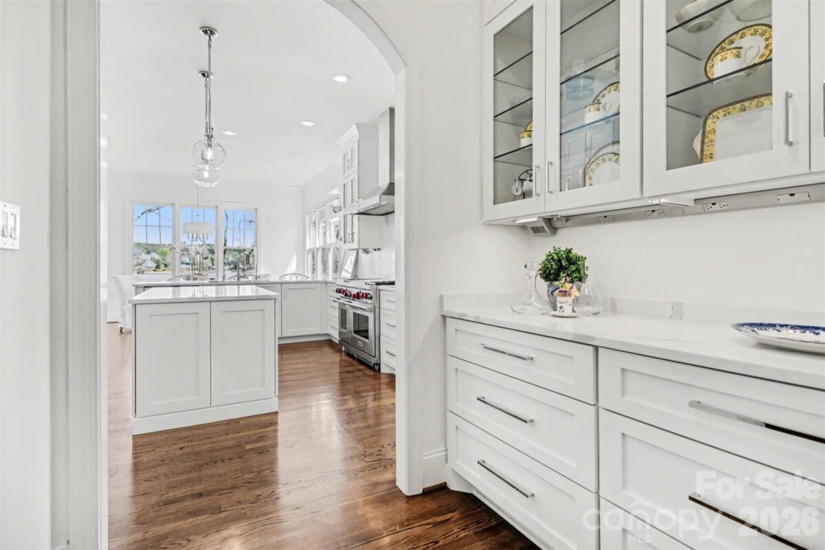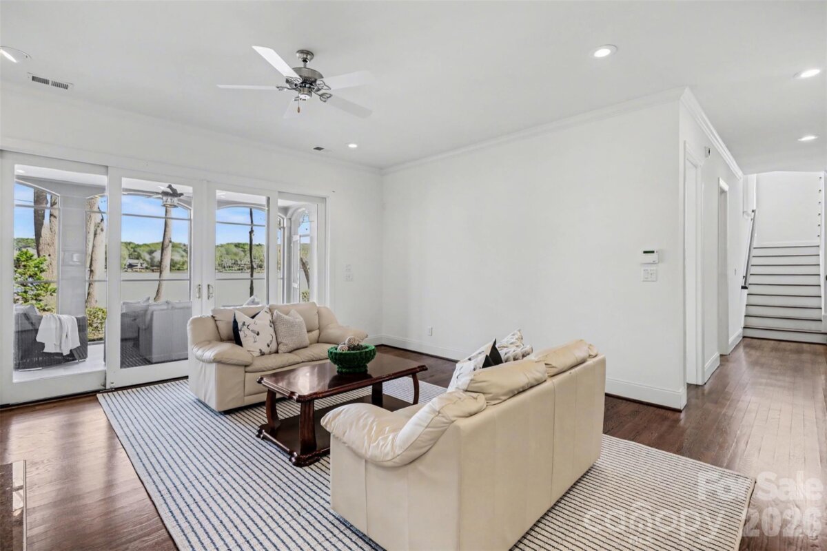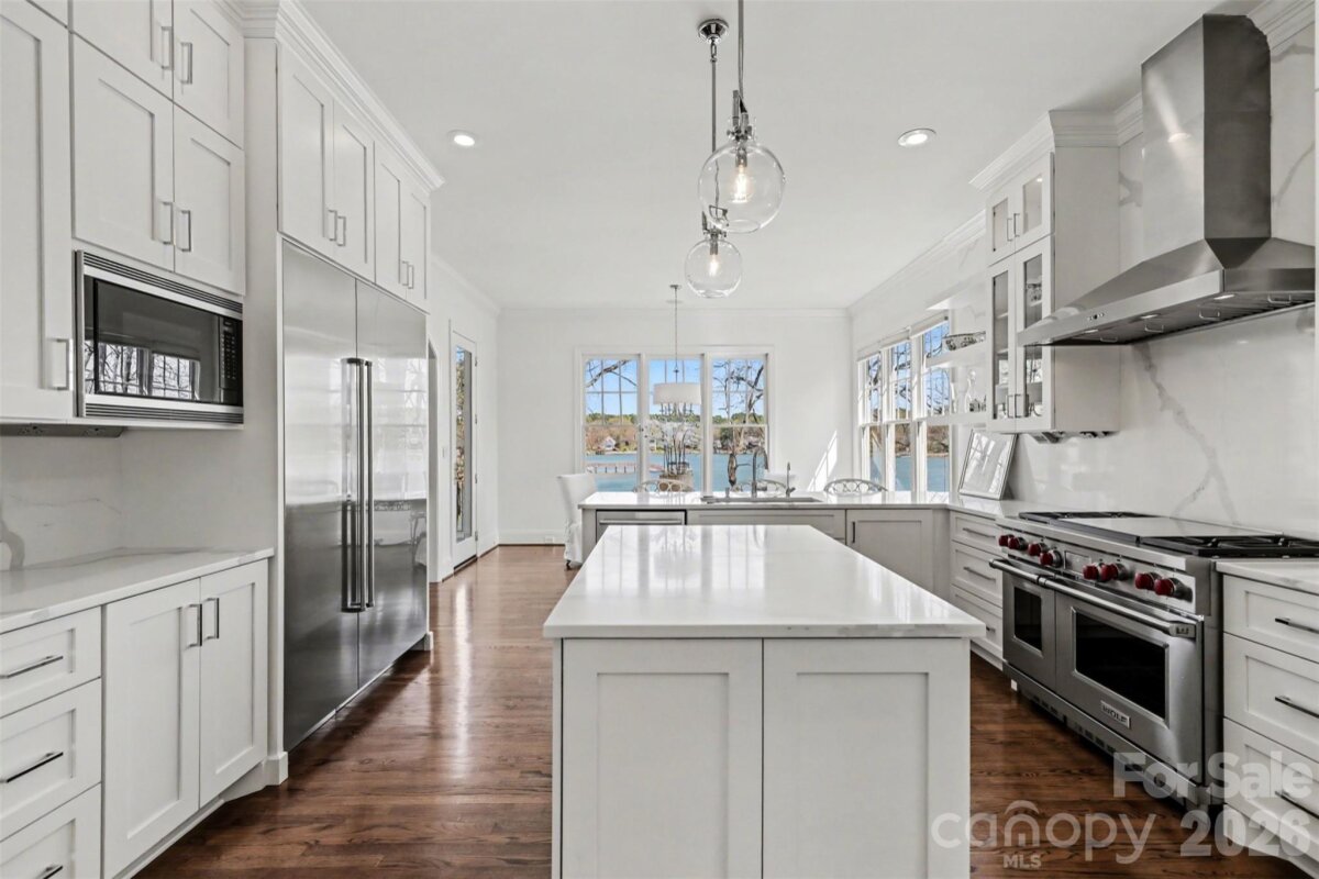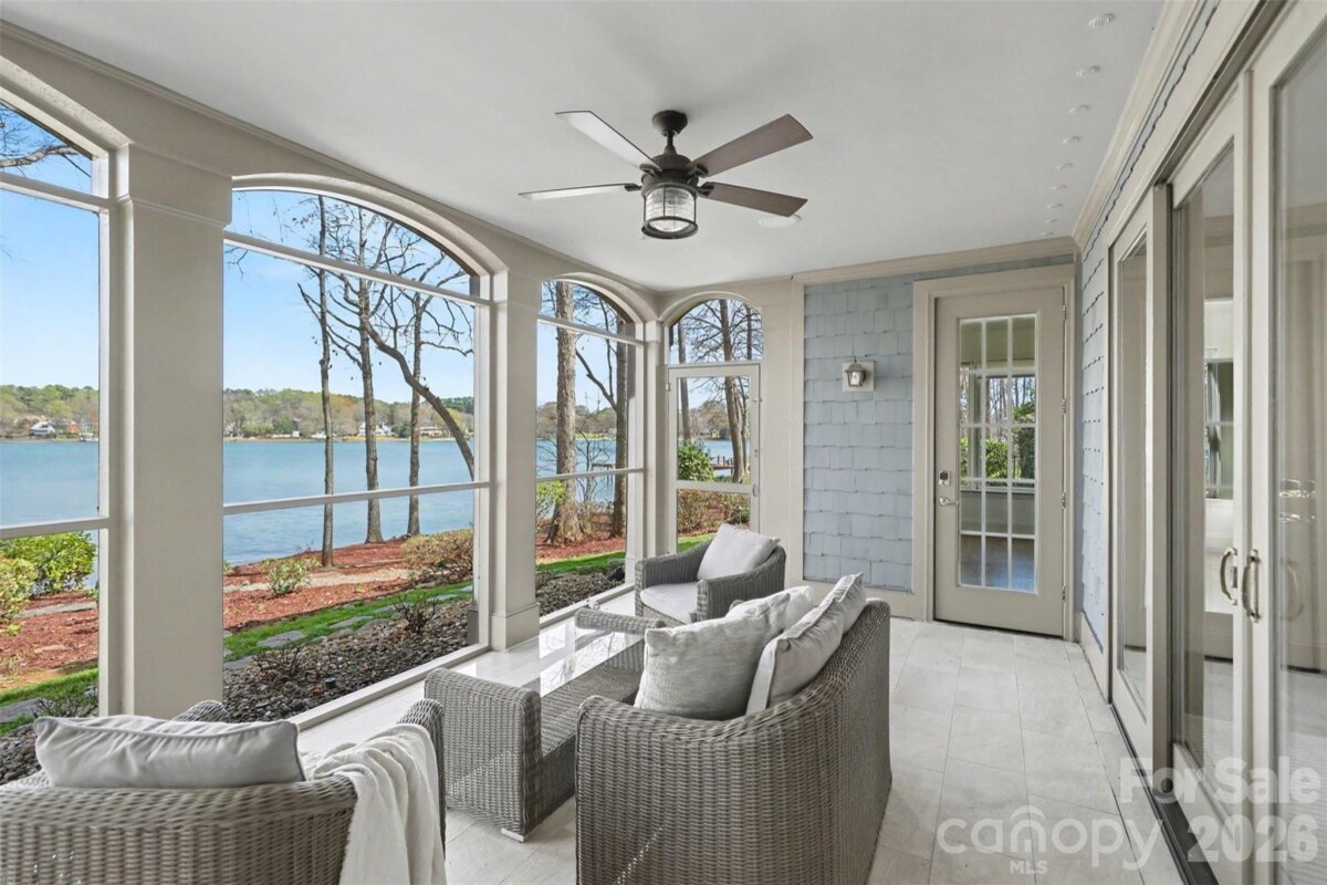 Waterfront Luxury at The Point — Walk to Trump National Charlotte. Welcome to a beautifully appointed waterfront retreat in Phase 1 of The Point, just a short walk from the exceptional amenities of The Club. Perfectly positioned on a professionally landscaped .89-acre lot, this home offers breathtaking water views from nearly every room. With expansive windows designed to capture the beauty of Lake Norman, the home feels as though you're living aboard a luxury yacht. The chef’s kitchen is designed for both everyday living and entertaining, featuring a 48" dual-fuel 8-burner Wolf range, Sub-Zero refrigerator, and an elegant butler’s pantry with illuminated shelving—ideal for showcasing china and glassware. Recently refreshed with fresh interior paint, the home feels bright, clean, and move-in ready. The thoughtfully designed floor plan offers comfortable luxury without excess, with the primary suite and a second bedroom on the main level. The secondary suite—currently used as a private office—includes its own en-suite bath, creating the perfect work-from-home retreat. The lower level expands the living space with two large bedrooms with en-suite baths, along with three additional flexible rooms perfect for a gym, media room, or hobby spaces. An unfinished storage area provides ample room for organization and seasonal items. A convenient dumbwaiter located in the laundry room offers easy access between levels. Step outside to enjoy the peaceful lake setting from the screened porch just off the family room, the perfect place to unwind during quiet evenings by the water. For boating enthusiasts, the property includes a private dock and pier complete with a boatslip and lift, offering immediate access to the open waters of Lake Norman. This exceptional home delivers luxury waterfront living in a thoughtfully sized floor plan, combining elegance, comfort, and an unbeatable location in one of the Lake Norman area’s most sought-after communities. WELCOME HOME!