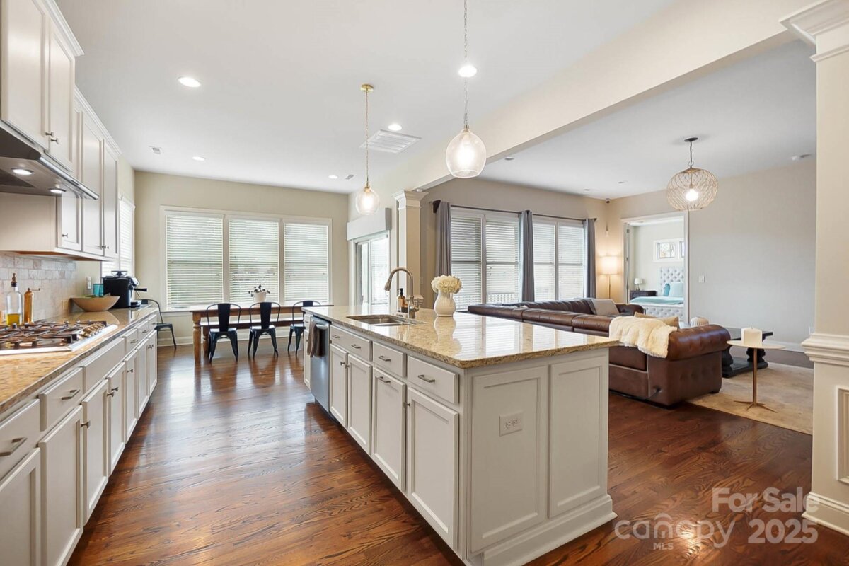 Welcome to this open, light-filled home sitting on a 1/2 acre lot! This popular Somerset, 1.5 story floor plan, by Bonterra features the primary and 2 additional bedrooms on the main with 10' ceilings ,8' interior doors, hardwoods in the main rooms and a beautiful stained wood staircase. Step inside to the entry hall where you will find an office, two generous size secondary bedrooms with full bath and the formal dining room with plenty of space to host holiday gatherings or casual family night meals. The well appointed kitchen features a 5 burner gas cooktop, wall microwave/oven, large center island with barstool seating and a breakfast area with plenty of windows for natural light. The kitchen opens directly into the large great room with a 1 story stone fireplace! The primary suite offers a special retreat for the owner with tray ceiling, private luxury bath with shower and separate soaking tub and a generous size walk-in closet. A conveniently located laundry room completes the main level. On the upper level you will find a bedroom with full bath and large walk in closet and a bonus room that can also serve as an additional bedroom if needed. Exterior features include a 3 car garage, full irrigation, and a covered back deck with beautiful views of the fenced back yard! Great location with Blair Mill Park close by and the Greenway Trail adjoins the Vickery Neighborhood. Access to I-485 is only 1 mile away.