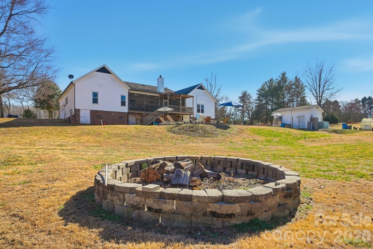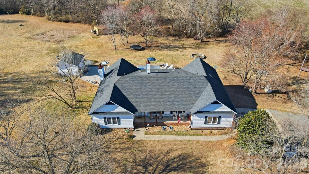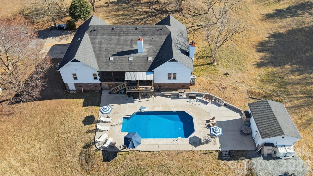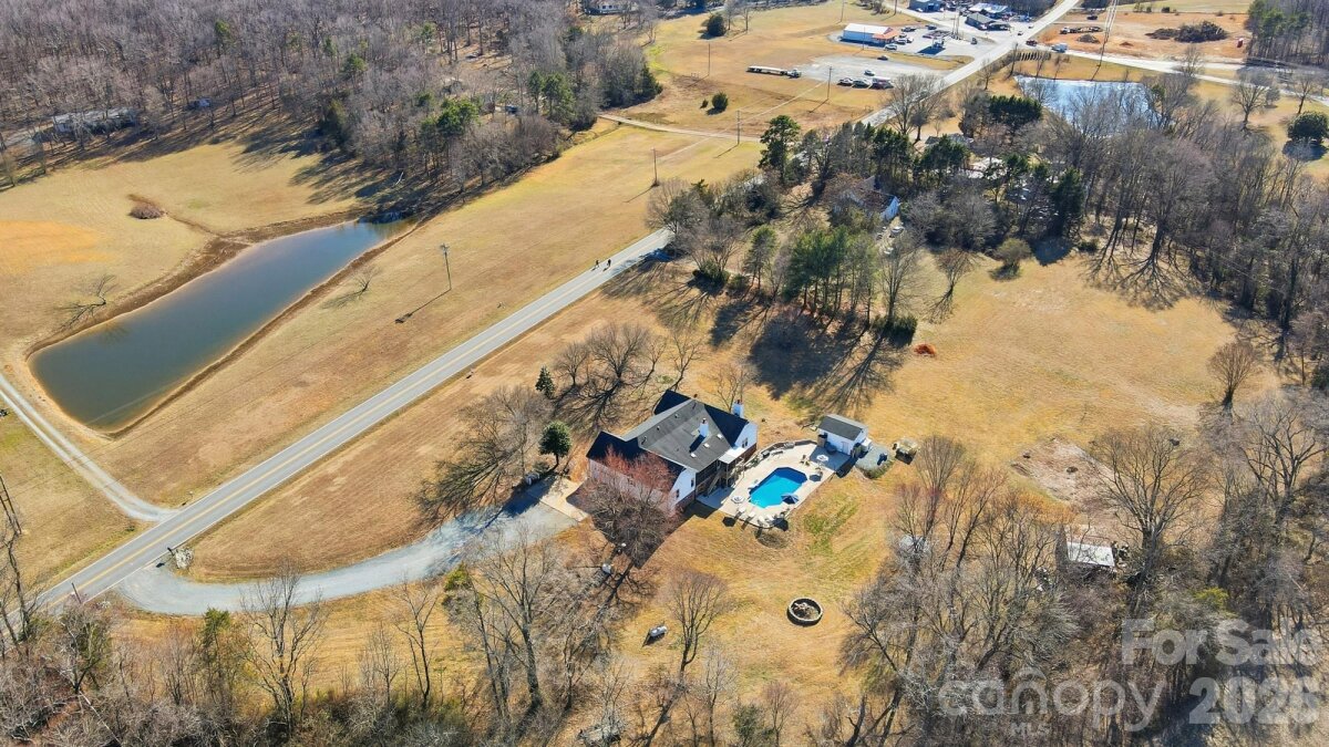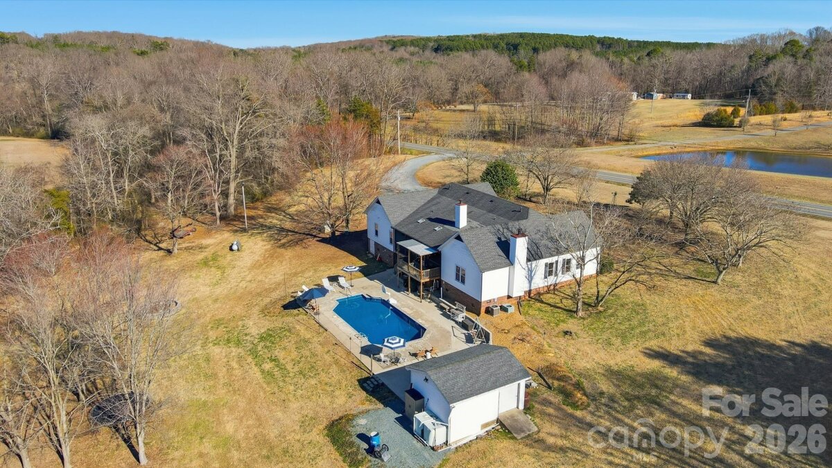 Welcome to country living at its finest with no HOA! This beautiful farmhouse is located on 8+ acres with a warm and thoughtfully designed interior that blends modern updates with timeless charm. Features include 3 bedrooms, 2.5 bathrooms plus an office and a flex space with closet. The split bedroom floor plan allows for privacy with a generously sized primary bedroom with two separate walk-in closets. The ensuite bathroom was renovated in 2021 and features his-and-her vanities, a freestanding soaking tub, and separate walk-in shower. The luxury kitchen was also updated in 2021 featuring quartz countertops and ample cabinet space, plenty of storage and prep area, double ovens, and an induction cooktop. The extra-large family room showcases a gas burning fireplace with custom mantle and beautiful accent wall. Cozy up for family dinners with an additional fireplace in the dining area. There are two generous size secondary bedrooms, an office and a flex space with closet that can be used as a second office or craft/hobby room. Additional interior features and updates include a dedicated laundry space with cabinets for extra storage and most windows were updated in 2021. Enjoying the outdoors is easy from the covered front porch or relax on the large screened in back porch, with dual ceiling fans, overlooking a beautiful, wooded backyard view. Enjoy grilling out on the extended back deck or lounge by the beautiful in-ground pool (new liner). The pool deck also features a pool house to store all of your outside equipment and pool accessories. Cleared acreage surrounding the house is perfect for country living! Plant a garden, add a chicken coop for farm fresh eggs, enjoy your off-road toys or hunt in the woods. Property features an additional septic system that perced for a 2 bedroom on the permit. Perfect to build a mother-in-law suite. Further inspection may be needed to bring system to operational use. Containers and tractor with implements can be negotiated, along with some living room furniture. Great Union County location and Piedmont School assignment!