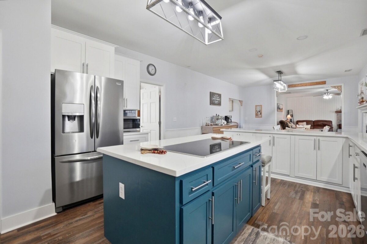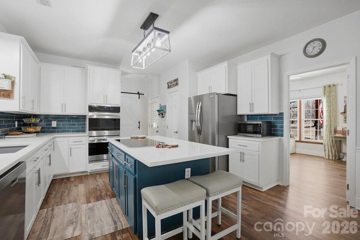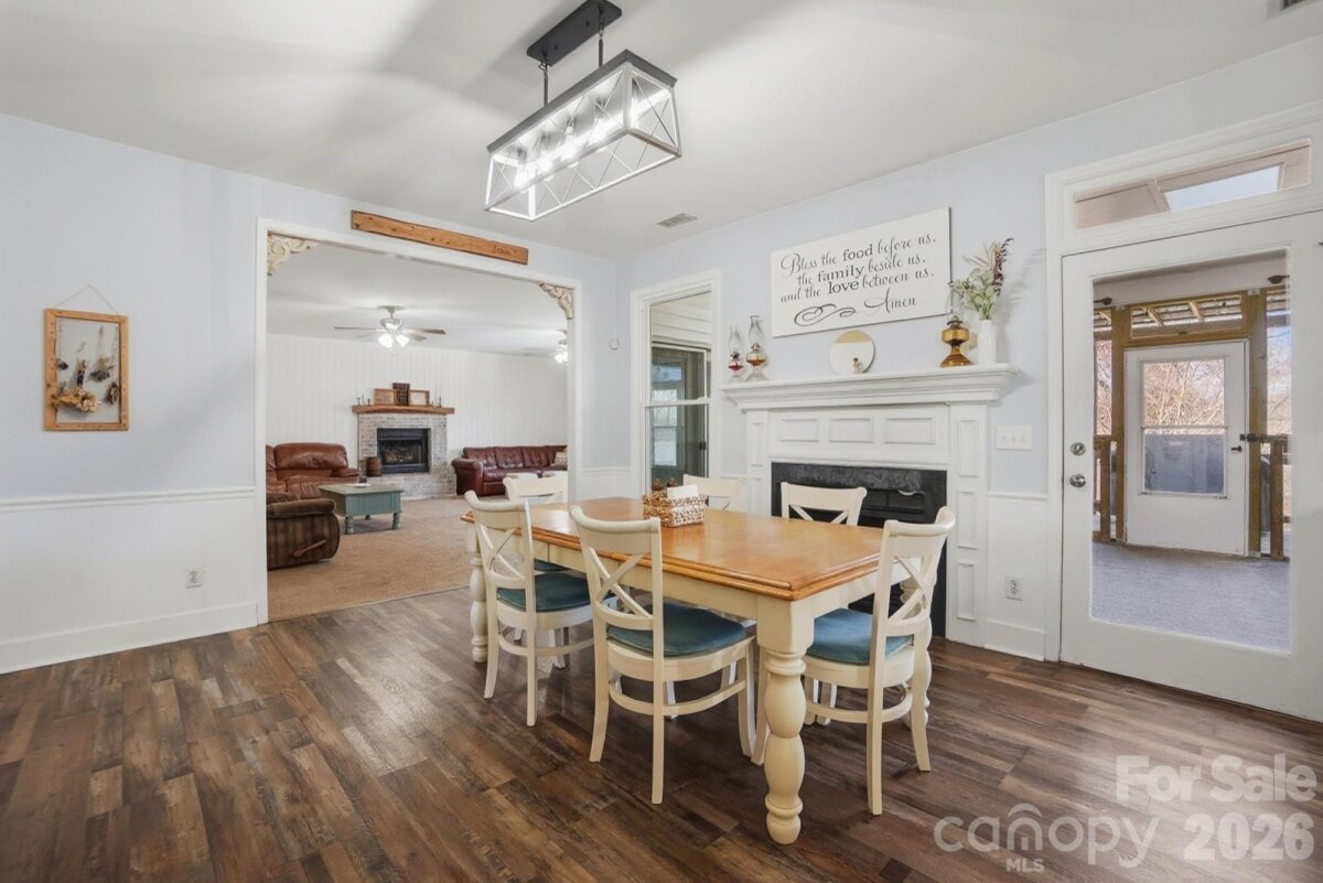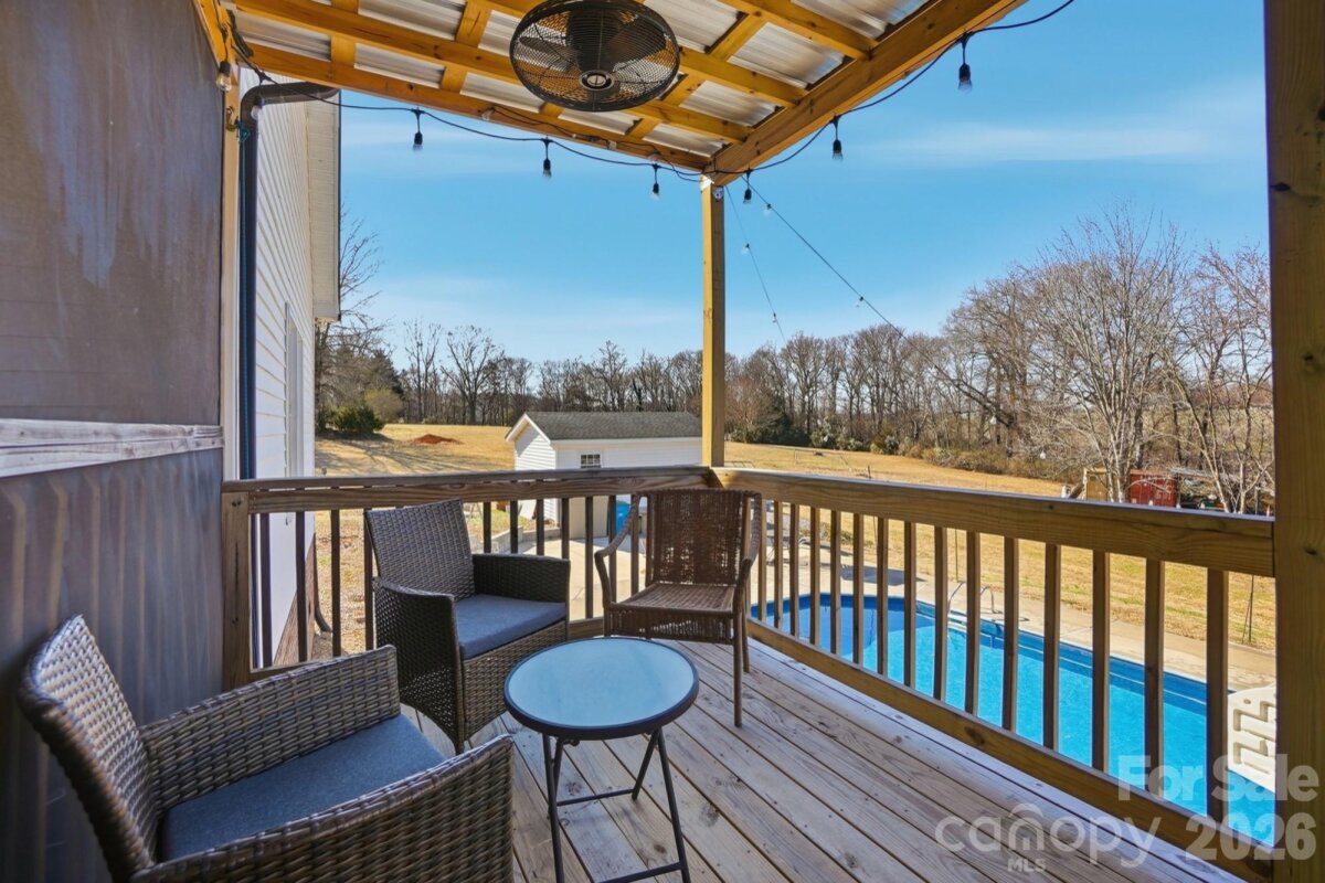 Welcome to country living at its finest with no HOA! This beautiful farmhouse is located on 8+ acres with a warm and thoughtfully designed interior that blends modern updates with timeless charm. Features include 3 bedrooms, 2.5 bathrooms plus an office and a flex space with closet. The split bedroom floor plan allows for privacy with a generously sized primary bedroom with two separate walk-in closets. The ensuite bathroom was renovated in 2021 and features his-and-her vanities, a freestanding soaking tub, and separate walk-in shower. The luxury kitchen was also updated in 2021 featuring quartz countertops and ample cabinet space, plenty of storage and prep area, double ovens, and an induction cooktop. The extra-large family room showcases a gas burning fireplace with custom mantle and beautiful accent wall. Cozy up for family dinners with an additional fireplace in the dining area. There are two generous size secondary bedrooms, an office and a flex space with closet that can be used as a second office or craft/hobby room. Additional interior features and updates include a dedicated laundry space with cabinets for extra storage and most windows were updated in 2021. Enjoying the outdoors is easy from the covered front porch or relax on the large screened in back porch, with dual ceiling fans, overlooking a beautiful, wooded backyard view. Enjoy grilling out on the extended back deck or lounge by the beautiful in-ground pool (new liner). The pool deck also features a pool house to store all of your outside equipment and pool accessories. Cleared acreage surrounding the house is perfect for country living! Plant a garden, add a chicken coop for farm fresh eggs, enjoy your off-road toys or hunt in the woods. Property features an additional septic system that perced for a 2 bedroom on the permit. Perfect to build a mother-in-law suite. Further inspection may be needed to bring system to operational use. Containers and tractor with implements can be negotiated, along with some living room furniture. Great Union County location and Piedmont School assignment!