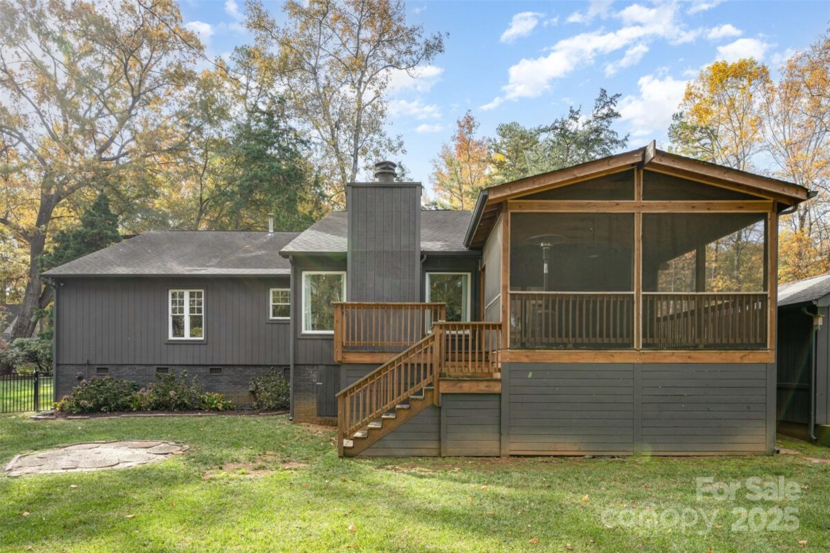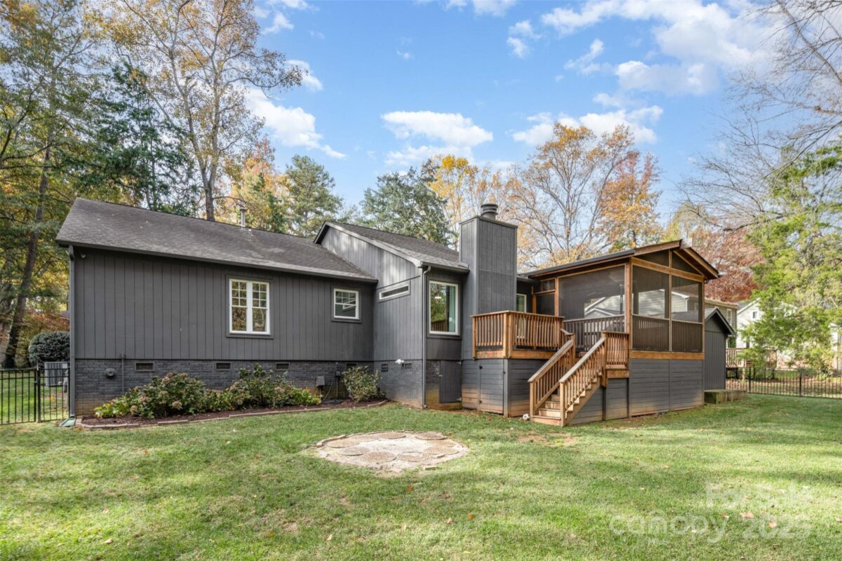 Welcome to Woodbridge! This highly sought after neighborhood offers a warm, wooded retreat with a close commute to the city. 2025 Down to the studs remodel offers beautiful oak floors, a new stone fireplace, tastefully remodeled bathrooms and recessed lighting. New picture & transom windows in living room by the wood burning fireplace. Walk in closet in the primary suite is ready for your desired storage design. Settled on a half acre lot, featuring a screened in back porch, a fully fenced back yard and a natural area behind the back fence. Woodbridge is a warm community with tons of seasonal activities for all ages. Close proximity to Strawberry Hill plaza, SouthPark Mall, restaurants and shopping.
