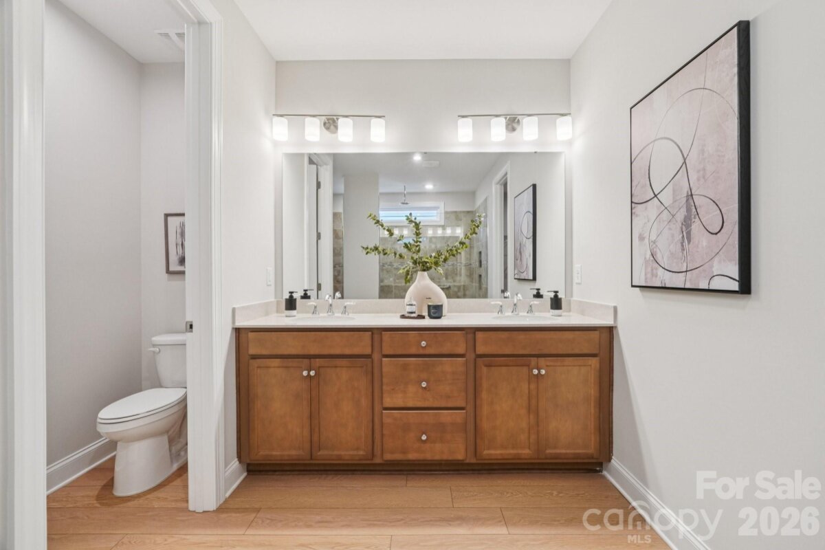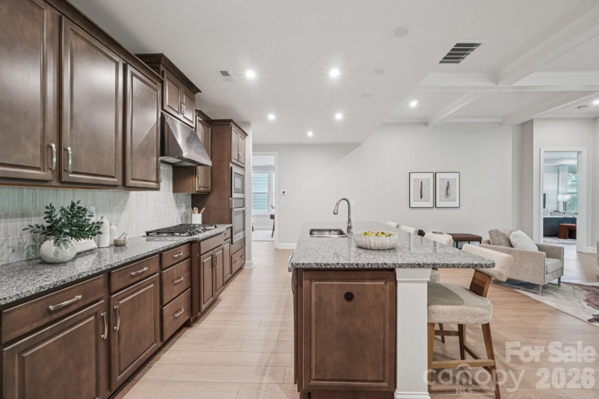 Welcome to 13222 Cozy Court, a stunning nearly new home in the Cresswind Charlotte community. This thoughtfully designed residence blends the benefits of modern construction with timeless craftsmanship, offering energy efficiency, open living spaces, and carefully curated finishes that elevate both style and function. Every detail has been selected to make daily life comfortable, while the larger community setting delivers the ultimate in resort-style living. From the moment you arrive, the curb appeal is undeniable. Brick accents, a covered front entry, and manicured landscaping create a welcoming first impression. Step inside and you’ll immediately notice the natural light and LVP flooring that carry throughout the main living areas, enhancing the sense of openness. At the heart of the home, the kitchen showcases rich wood cabinetry, gleaming granite counters, a large center island with seating, stainless steel appliances, and a beautiful tile backsplash. Directly off the kitchen is a sitting area that creates a cozy retreat with comfortable seating, offering additional lounge and entertainment space. The great room is anchored by large windows that frame views of the backyard, creating a warm and inviting atmosphere year-round. The primary suite is a peaceful retreat, thoughtfully placed for privacy. The expansive bedroom offers space for a sitting area, while the spa-inspired bath features dual vanities with granite tops, a frameless walk-in shower, and upgraded tile selections that add a touch of luxury to everyday routines. A spacious walk-in closet completes the suite. Upstairs, a spacious flex room can easily serve as a bedroom, game room, media room, or hobby space—an adaptable area ensuring this home grows with your lifestyle. Outdoor living is equally impressive. Step onto the covered patio and you’ll find the perfect spot for morning coffee, grilling with friends, or evenings spent unwinding. The landscaped yard offers space to garden, play, or simply enjoy the Carolina seasons. While the home itself is exceptional, life at Cresswind Charlotte is what truly sets this opportunity apart. This 370-acre community was designed around wellness, recreation, and connection. At its center is a spectacular clubhouse offering a fitness center with state-of-the-art equipment, dedicated yoga/aerobics rooms, an indoor lap pool with spa, an arts and crafts studio, and a demonstration kitchen for cooking classes. Residents also enjoy a social ballroom, lounge areas, game rooms, and a veranda designed for gathering with neighbors. Outdoors, the resort-style amenities continue. A sparkling pool invites leisurely swims and afternoons in the sun, while tennis, pickleball, and bocce courts encourage friendly competition. Miles of walking trails wind through wooded green spaces, connecting residents to nature and each other. A community garden, grilling courtyard, outdoor fireplace, and event lawn provide even more options for gathering and recreation, including a dedicated dog park. Life here is made even richer by the full-time lifestyle director who curates a robust calendar of clubs, fitness classes, arts programs, and social events — ensuring that there is always something new to try and new people to meet. Whether you are interested in cooking workshops, games, dances, or outdoor excursions, you’ll find endless opportunities to connect and engage. Convenience is another hallmark of Cresswind Charlotte. Located just minutes from shopping, dining, and healthcare, and with easy access to Uptown Charlotte, highways, and the airport, the community offers both tranquility and accessibility. Cozy Court combines the comfort of a nearly new, move-in-ready home with the unmatched lifestyle of one of Charlotte’s most desirable active communities. With its elegant finishes, thoughtful design, and endless amenities, this is more than just a home, it’s a place where every day feels like a retreat.