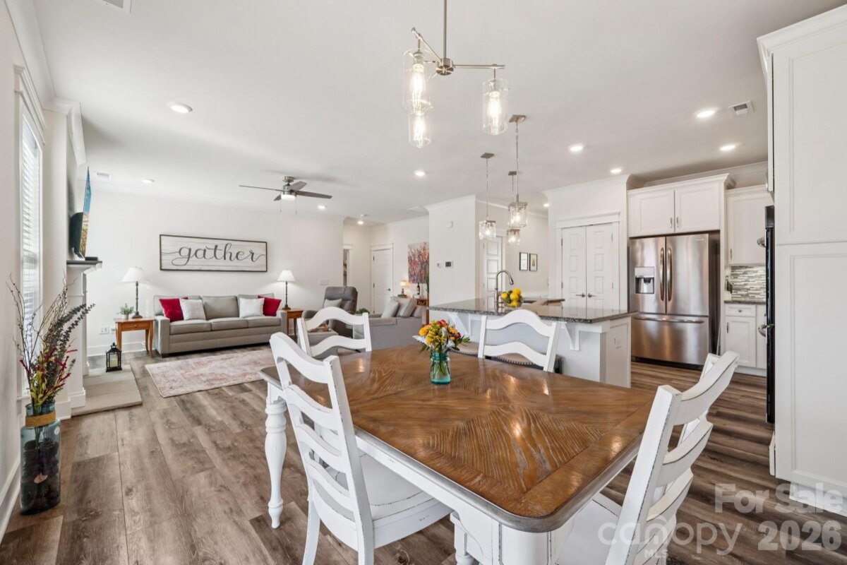 Welcome to this beautifully designed three-story home in a well-appointed Walnut Creek neighborhood, known for its charm and great amenities. The main floor greets you with bright, open spaces and elegant new flooring. The kitchen is a chef’s dream, featuring a double oven, a gas cooktop, and a convenient pot filler. A formal dining room sits nearby, along with a pantry for extra storage. The cozy fireplace anchors the living area, making it warm and inviting. This floor also includes a guest bedroom and a full bath, plus access to the screened patio, where roll-down shades provide the perfect balance of privacy and outdoor comfort. On the second floor, you’ll find the spacious primary suite, a true retreat, with elegant tray ceilings, a spa-like bath featuring a large walk-in shower, and a walk-in closet. Two additional secondary bedrooms and a full bath are also on this level, along with a bright loft space that can serve as a home office or second living area. The laundry room is conveniently located here as well, and you can step out onto the private balcony porch for a quiet outdoor retreat. On the third floor, you’ll discover a private guest suite, offering a full bath and a versatile layout, perfect for visitors or a private home office. This flexible top-level space gives you the privacy and comfort your guests will love, rounding out this thoughtfully designed home. In addition to its thoughtfully designed interiors, this home also boasts a three-car garage, providing plenty of space for vehicles, storage, or a workshop. The fenced yard is a true oasis, featuring a fire pit and a patio with a cozy sitting wall—ideal for evenings outdoors or gatherings with friends and family. This well-rounded home truly offers a perfect blend of comfort, versatility, and outdoor enjoyment. Beyond the home, Walnut Creek residents enjoy a range of amenities designed for an active lifestyle. The community features a clubhouse, a junior-Olympic pool, and a fitness center, offering countless ways to stay active and connected. Walnut Creek Park includes a sports complex with lighted fields for baseball, softball, and soccer. Nearby, Henry S. Nesbitt Park adds even more value with a walking track and direct access to the Carolina Thread Trail—ideal for outdoor recreation. Conveniently located near adorable downtown Waxhaw, bustling Ballantyne, and major employers, this home offers a thoughtful blend of comfort, convenience, and lifestyle.
