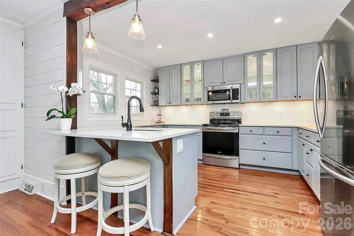 Country living at its finest! This beautiful 5-acre Union County property features a charming 3BR/2BA one-story home with updates throughout. Original hardwood floors and tall baseboards add character, and the home offers three fireplaces (never used, fireplaces & chimneys sold as-is). The updated kitchen shines with new hardwood floors, 42" cabinetry, quartz countertops, tile backsplash, under-cabinet lighting, recessed lighting, and stainless steel appliances. The inviting dining/keeping room accommodates a large table and flows seamlessly into both the cozy den and the kitchen — perfect for everyday living and entertaining. Down the hallway, you’ll find generously sized secondary bedrooms, each with hardwood floors, ample closet space, and ceiling fans. The spacious primary suite features French doors leading to a private back deck overlooking the backyard and pasture, and new hardwood floors. The primary bath includes an oversized frameless glass shower with double shower heads, dual vanities, tile flooring, and a walk-in closet with custom shelving. Tucked into the corner of the home is a large family room — ideal as a flex space, media room, or playroom. A well-equipped laundry room with stackable washer and dryer, folding table/cabinet, coat rack and shoe cubbies complete the interior. Outdoor living includes a screened porch, expansive deck, and fenced rear yard. For hobbyists, business owners, or car enthusiasts, the 4-bay garage is heated and cooled and includes an attached heated/cooled office. There’s also an unheated rear storage area and an attached open shed for equipment. Currently used as a woodworking shop, the dust-collection system conveys with the property. Horse lovers will appreciate the newer 2-stall metal barn featuring a tack room and side storage area large enough for a trailer, pontoon boat, tractor, or additional equipment. The large rear pasture is fully fenced with electric fencing (rear near pond is not electrified). Solar panels were installed on the 4-car garage in 2022 (permit on file) and will be paid off at closing. Surrounded by beautiful farmland, this versatile property offers endless possibilities — truly a must-see!