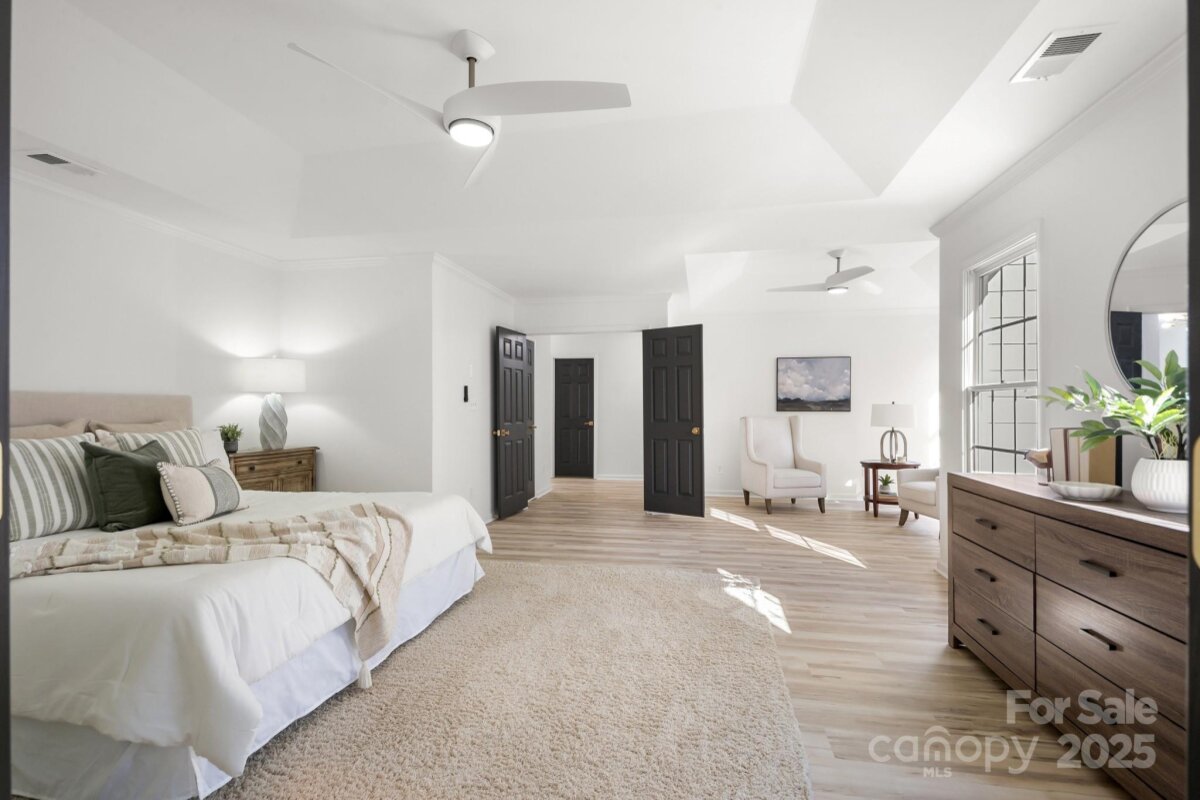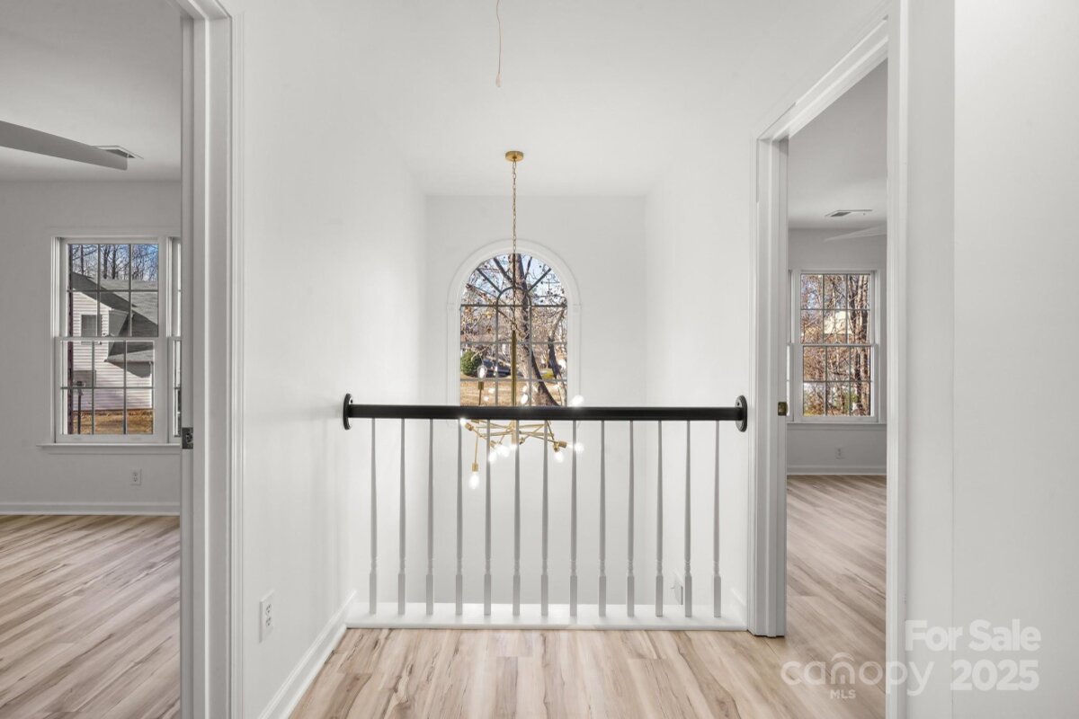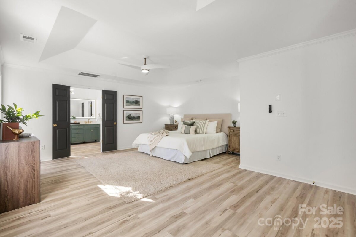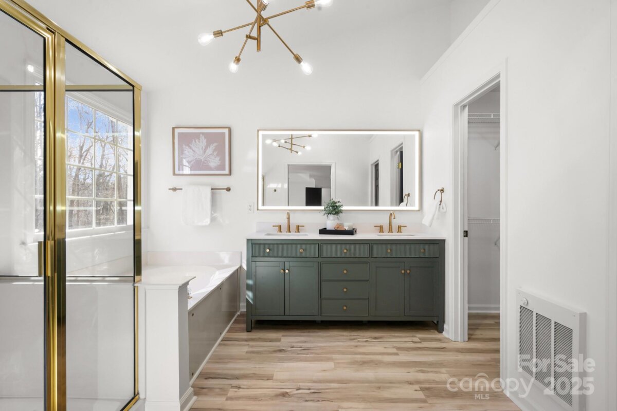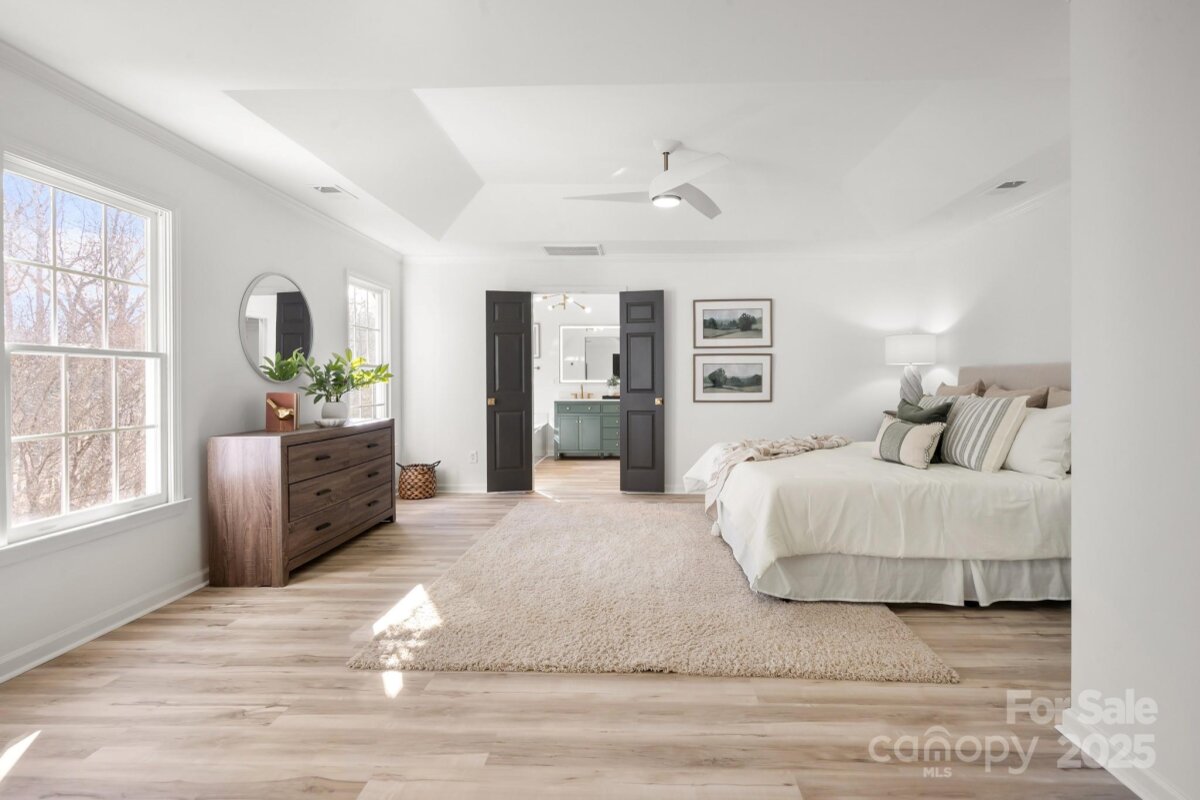 This incredible turnkey property checks all the boxes on your wish list - .54 acre cul-de-sac lot, brick and fiber cement exterior, attached two car garage, open floor plan, full finished walk out basement, over 3700+ SF, private wooded lot, and endless possibilities. Inviting two story foyer entrance leads your eyes in all directions to take in this beautiful and complete interior renovation. You will be greeted with brand new continuous LVP floors throughout the main and upper levels including staircase, fresh interior paint throughout, intricate double stacked crown molding, elegant picture molding accents, all new light fixtures, and sleek six panel Urban Bronze doors with new brushed gold hardware and hinges. Professionally staged to ensure a wonderful showing experience. The main level features a perfect combination of traditional formal rooms combined with a large open living room, kitchen, and breakfast nook area that is perfect for entertaining. Abundant natural light throughout with insulated windows, storm door, bay window, and brand new sliding glass door leading to relaxing raised deck. The transformed kitchen boasts granite countertops, refreshed cabinetry, new brushed gold hardware, new custom tile backsplash, new brushed gold faucet, stainless steel appliances with desirable gas range for cooking, breakfast bar for additional seating, and convenient pantry. The living room shines with a gas log fireplace as the focal point, wall of windows with private tree-lined view, and a rear hidden staircase leading to second floor. The oversized primary bedroom retreat is the "WOW" factor for the property - double door entry, perfect condition with separate sitting room, tray ceilings, brand new ceiling fans, and great natural light. The ensuite primary bathroom flaunts vaulted ceilings, brand new double vanity with LED lighted mirror, new chandelier, garden tub, shower stall, private doored water closet with dual flush commode, spacious walk-in closet, and walk in attic access. Three generously sized auxiliary bedrooms and updated second full bathroom complete the second story. Highly sought after full finished basement provides flexible space to meet your personal needs - second home office, bonus room, craft room, exercise room, guest area, endless possibilities. Brand new carpet, fresh interior paint, new light fixtures, new ceiling fans, and renovated half bathroom create a renovated blank slate in the basement for your imagination. The basement offers both interior access off the foyer and separate exterior access via walkway from driveway. Prime .54 acre cul-de-sac lot with private wooded views and easy to maintain yard. Ornate gate in backyard has stairs leading to lower tier of property and serene babbling creek for relaxing setting and wildlife/nature lovers. Great storage throughout home and basement. Finished attached two car garage with custom overhead storage racks, fresh paint, sealed/painted garage floor, and garage openers. Runners, walkers, cyclist, and outdoor enthusiast will appreciate the convenient neighborhood access to the Mallard Creek Greenway linking to miles of trails just footsteps away from home. AGENTS ARE OWNERS.