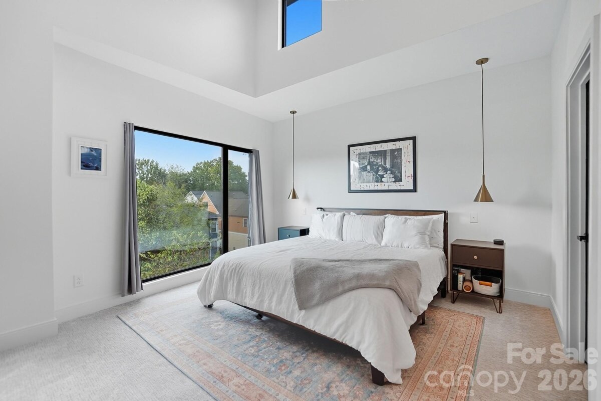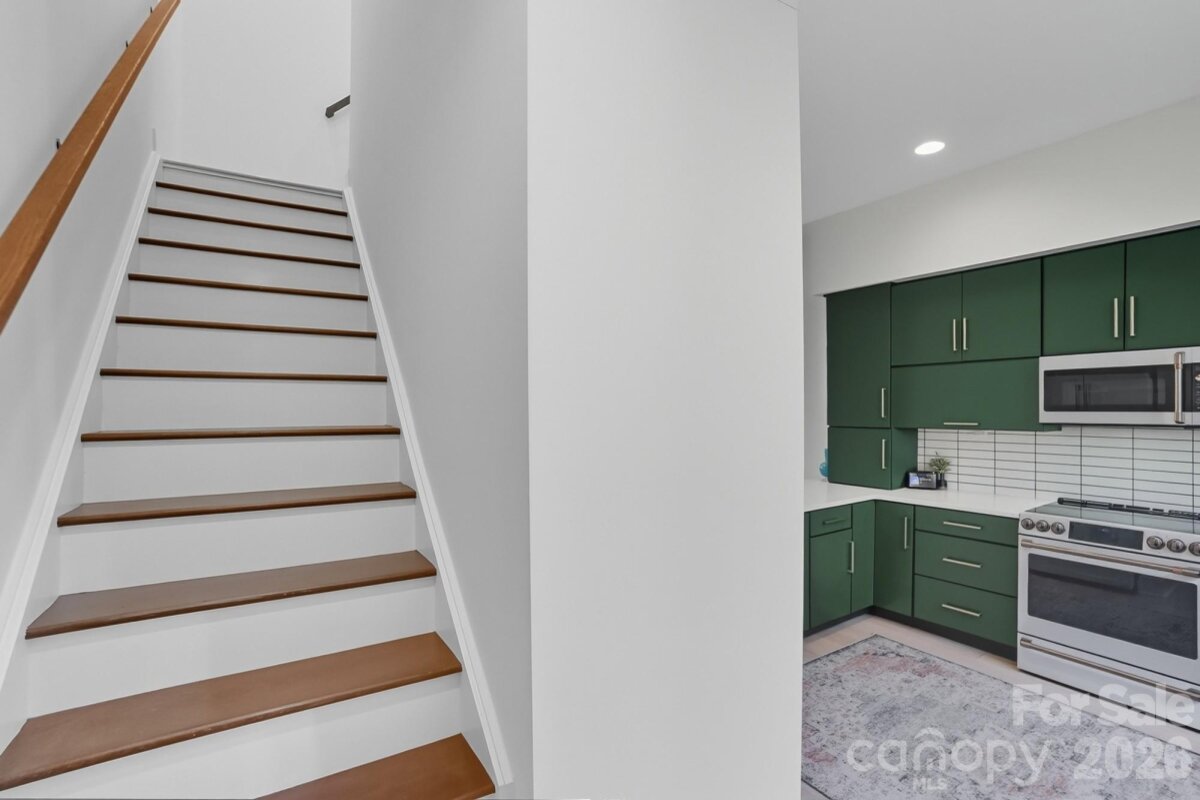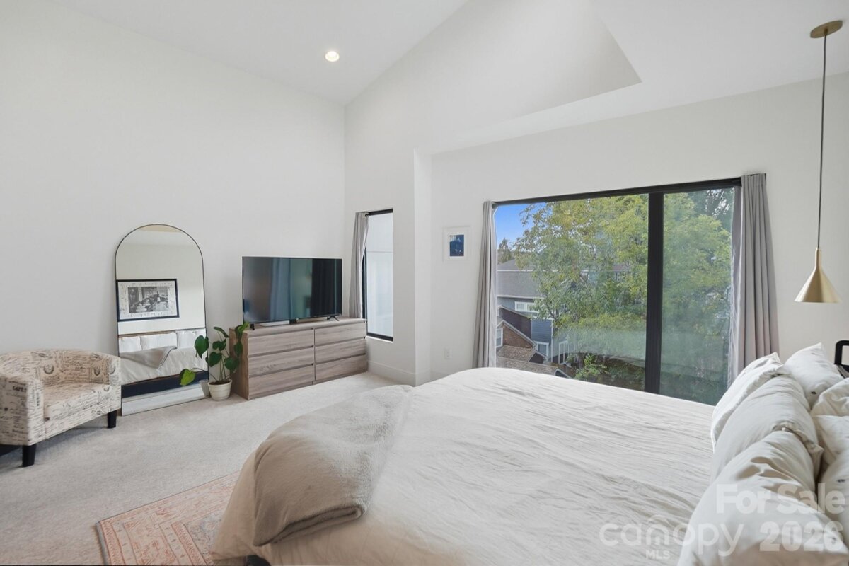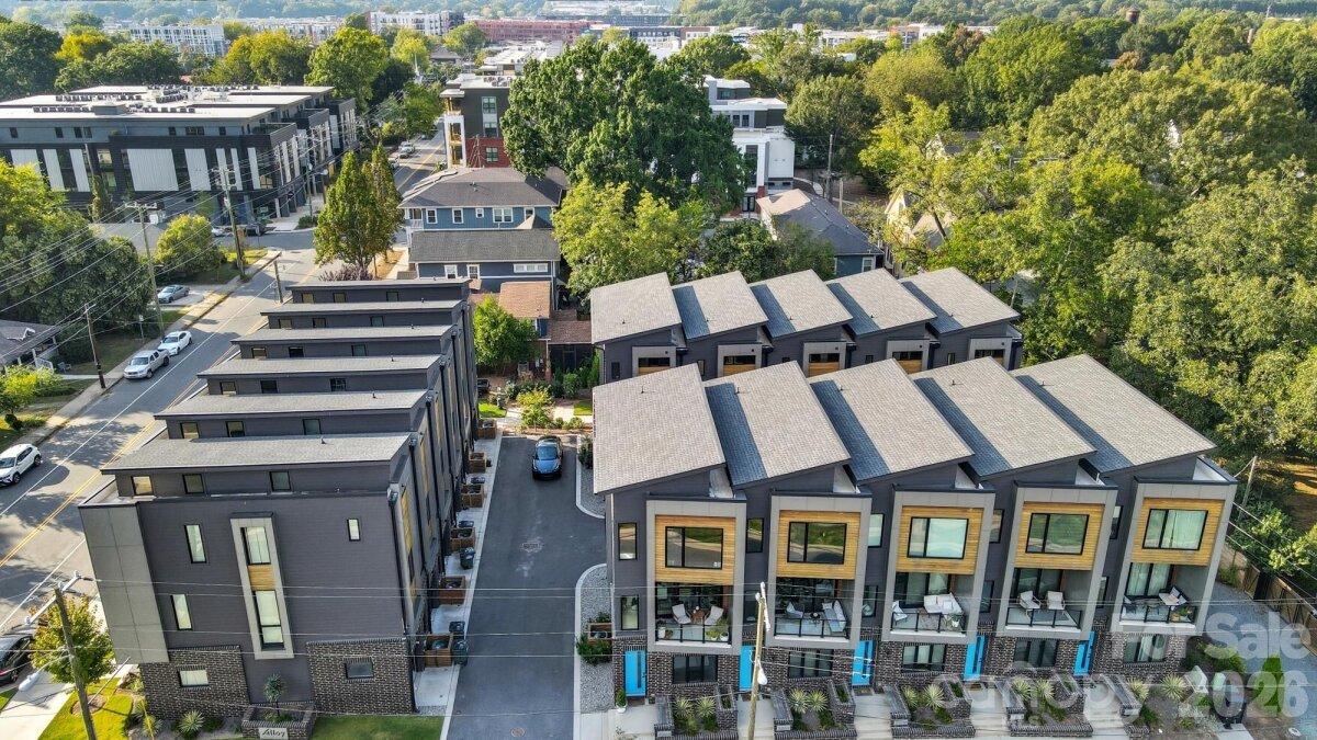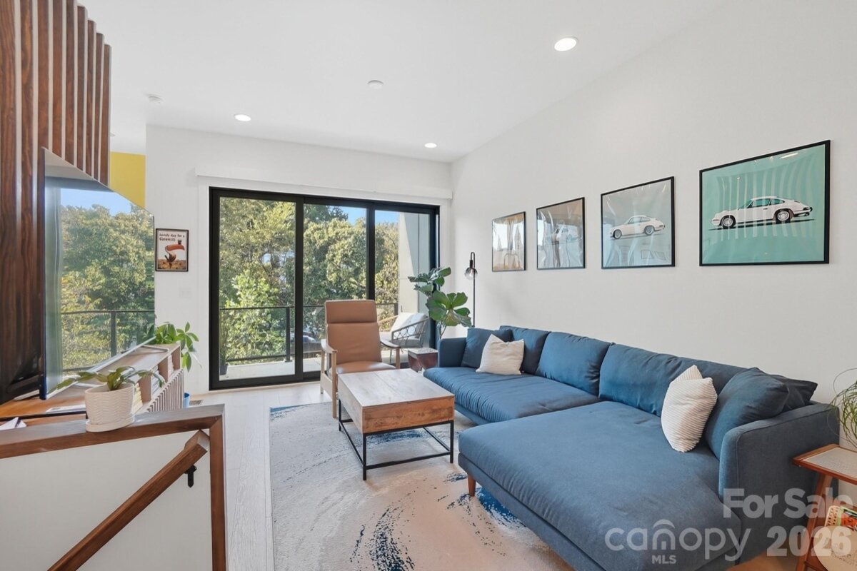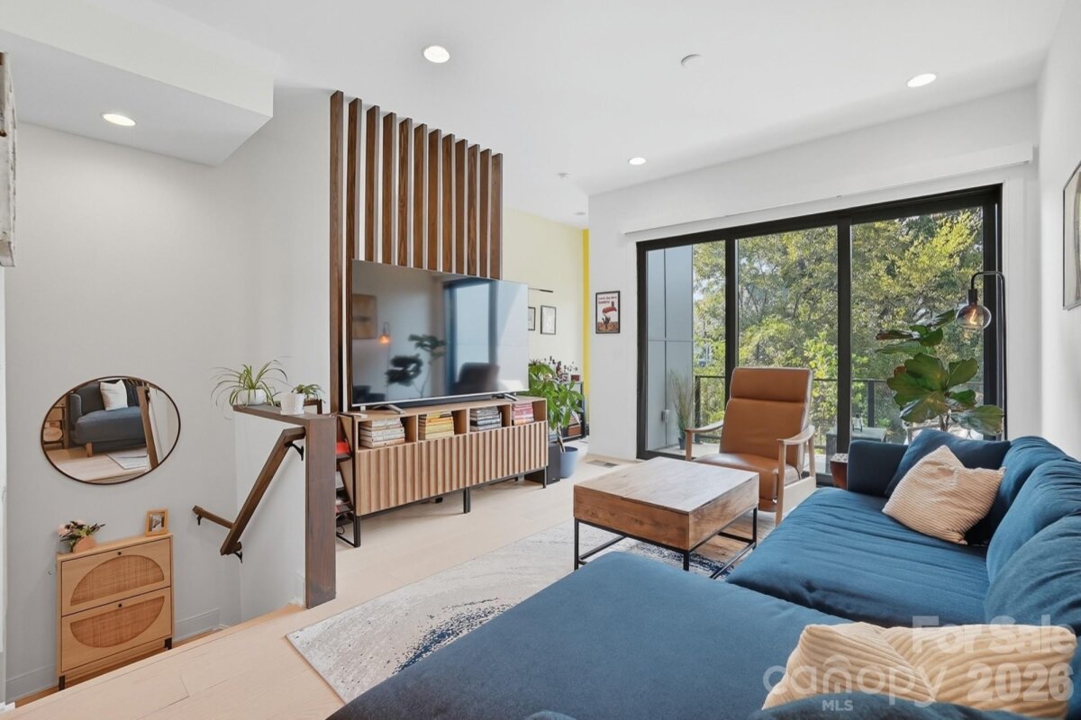 Experience the pinnacle of urban living in this 2023-built masterpiece by the award-winning Revolve Residential. Nestled in the Alloy community, this three-story townhome offers a rare blend of mid-century modern soul and high-end luxury. The entry level features a versatile bedroom with a full bath, providing a private sanctuary for guests or the ultimate quiet home office. The main level is a showstopper, featuring a designer kitchen with emerald green cabinetry, brushed gold accents, and professional-grade GE Café appliances. The living space, anchored by a custom wood-slat feature wall, transitions seamlessly through 3-panel sliding glass doors to a private, covered balcony finished in premium Thermory wood. This space is elevated by custom, automatic remote-controlled shades on the kitchen window and the 3-panel sliding glass doors. The entire third floor is dedicated to a massive Owner’s Retreat, complete with vaulted ceilings, dual walk-in closets, and a versatile flex space perfect for a home office, nursery, or gym. Located just steps from the 36th Street Light Rail, the new Sprouts, and NoDa’s iconic dining scene, this home offers a quiet, green-view sanctuary without sacrificing city proximity. Rounding out this tech-forward home is a spacious one-care garage equipped with a dedicated electrical vehicle charging port.