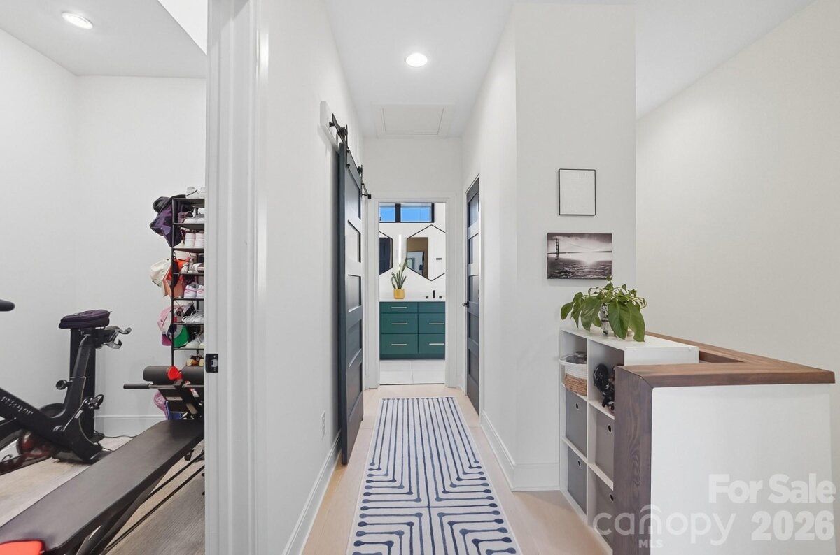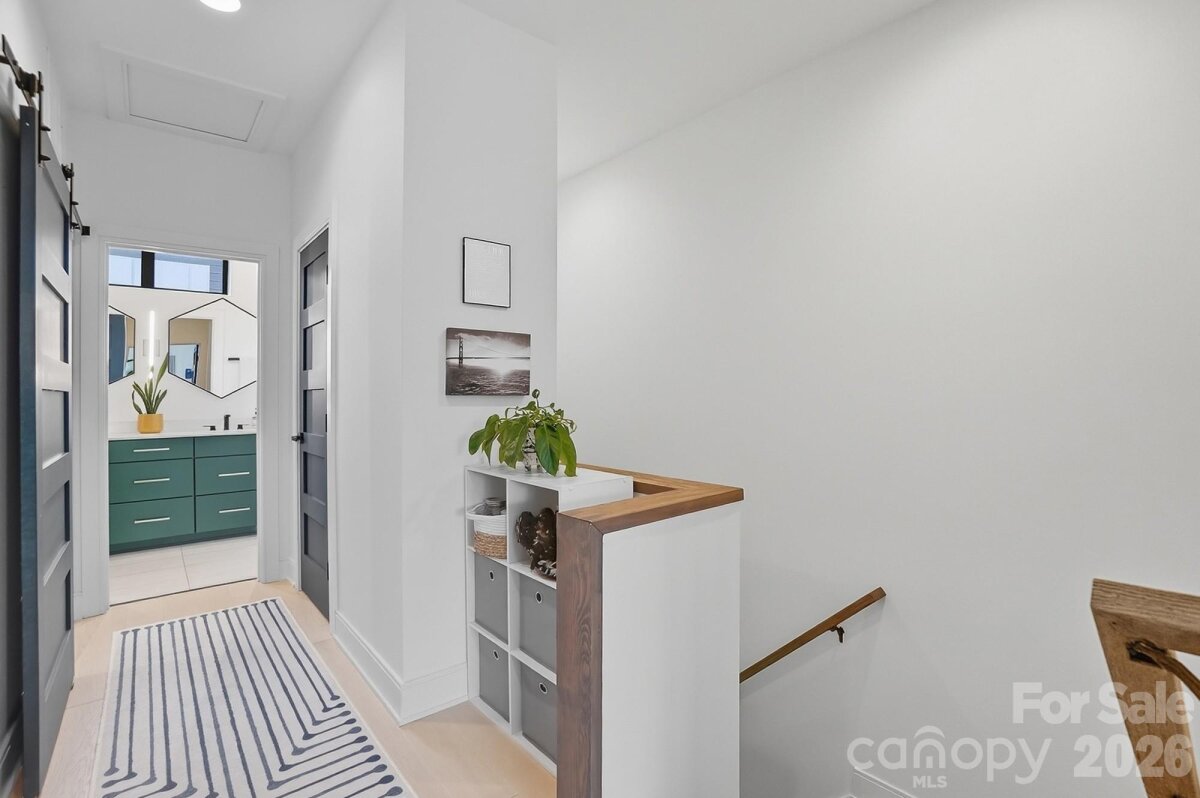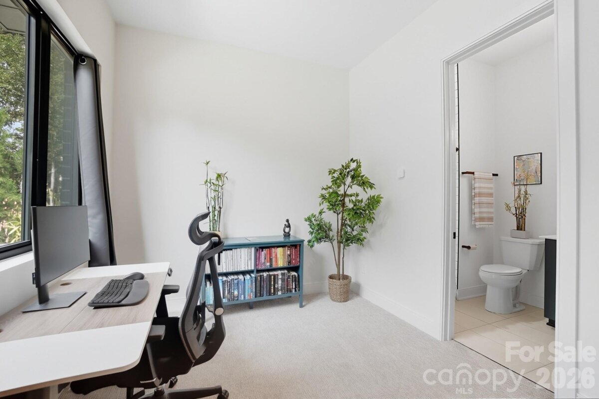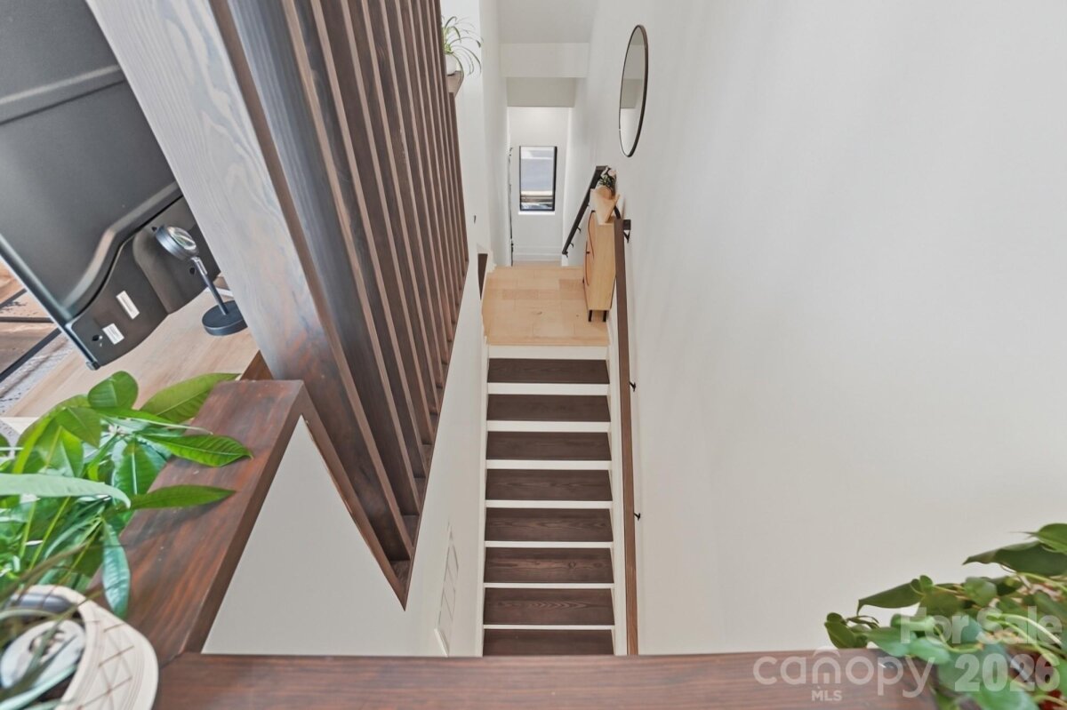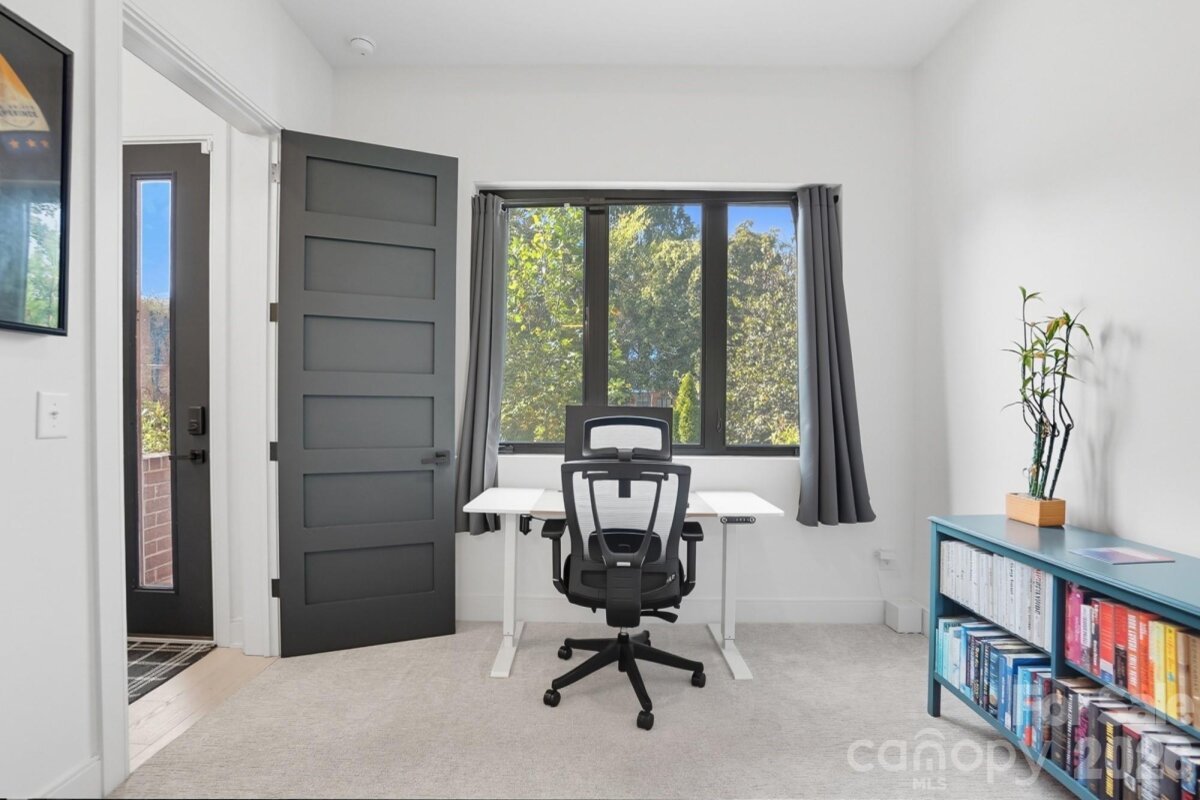 Experience the pinnacle of urban living in this 2023-built masterpiece by the award-winning Revolve Residential. Nestled in the Alloy community, this three-story townhome offers a rare blend of mid-century modern soul and high-end luxury. The entry level features a versatile bedroom with a full bath, providing a private sanctuary for guests or the ultimate quiet home office. The main level is a showstopper, featuring a designer kitchen with emerald green cabinetry, brushed gold accents, and professional-grade GE Café appliances. The living space, anchored by a custom wood-slat feature wall, transitions seamlessly through 3-panel sliding glass doors to a private, covered balcony finished in premium Thermory wood. This space is elevated by custom, automatic remote-controlled shades on the kitchen window and the 3-panel sliding glass doors. The entire third floor is dedicated to a massive Owner’s Retreat, complete with vaulted ceilings, dual walk-in closets, and a versatile flex space perfect for a home office, nursery, or gym. Located just steps from the 36th Street Light Rail, the new Sprouts, and NoDa’s iconic dining scene, this home offers a quiet, green-view sanctuary without sacrificing city proximity. Rounding out this tech-forward home is a spacious one-care garage equipped with a dedicated electrical vehicle charging port.