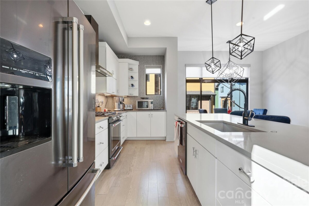 This peak modern 3-bedroom, 3.5-bathroom home in the vibrant art district of Charlotte, NC. Located near NODA this house is a masterpiece of design and functionality. Featuring spacious open-concept living areas adorned with contemporary finishes, large windows that flood the space with natural light, and a state-of-the-art kitchen perfect for culinary enthusiasts. Enjoy outdoor living with a sleek balcony, ideal for entertaining guests or relaxing in style. Embrace the artistic spirit of the area with nearby galleries, cafes, and cultural experiences at your doorstep. Everything you would want can be found within a mile of this house. Beautiful views, shopping, dining, parks, and major roadways, making commuting and daily errands simple. Want to spend some time outside but don't want to drive, walk out to and unwind in the neighborhood's shared green space, perfect for relaxing outdoors.