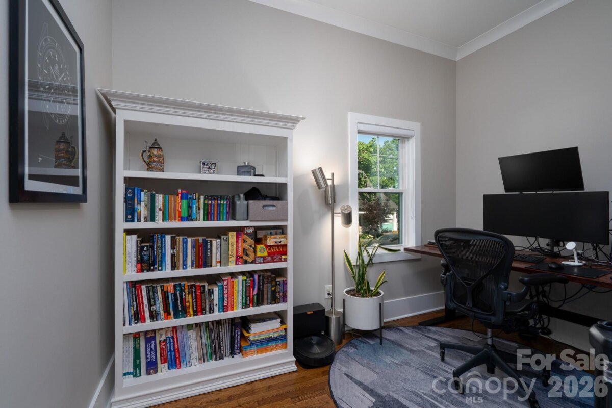 Tucked on popular Warp Street in the heart of NoDa, this custom-built home blends style, space, and a rare lot setting. Featuring 4 bedrooms, 3.5 baths, a versatile bonus room and a separate loft, along with a large walk-in pantry and laundry room. The primary bedroom is on the main level, and the layout offers both everyday comfort and flexibility for work or play. Don’t miss the hidden office nook to the left when you walk in! The home opens to bright, thoughtfully designed living spaces and flows seamlessly to a screened porch - perfect for relaxing or entertaining year-round. Situated on a large, flat corner lot, the outdoor space is a true standout with lush landscaping and unique touches, including Apple, Pear, Cherry and Peach trees alongside Raspberry, Blueberry and Blackberry bushes. Watch the Light Rail in the distance from your kitchen window while not hearing a peep inside this meticulously built home. A one-of-a-kind opportunity to enjoy custom living in one of Charlotte’s most vibrant neighborhoods. Walk, ride or bike everywhere in Noda. Coffee shops, Breweries, Art Galleries, Shopping, Bakeries, Pet Grooming, Live Music featuring local and national concerts. This area has some of the best food Charlotte has to offer. Walk to one of the two light rail stations and don’t miss the New Sprouts grocery store just down the street.