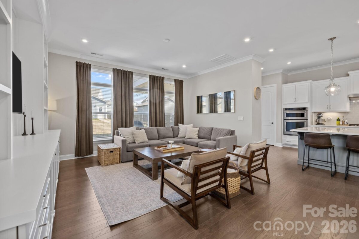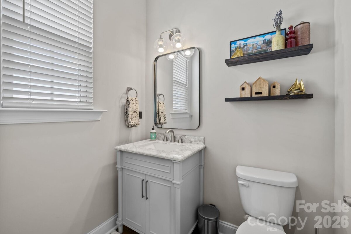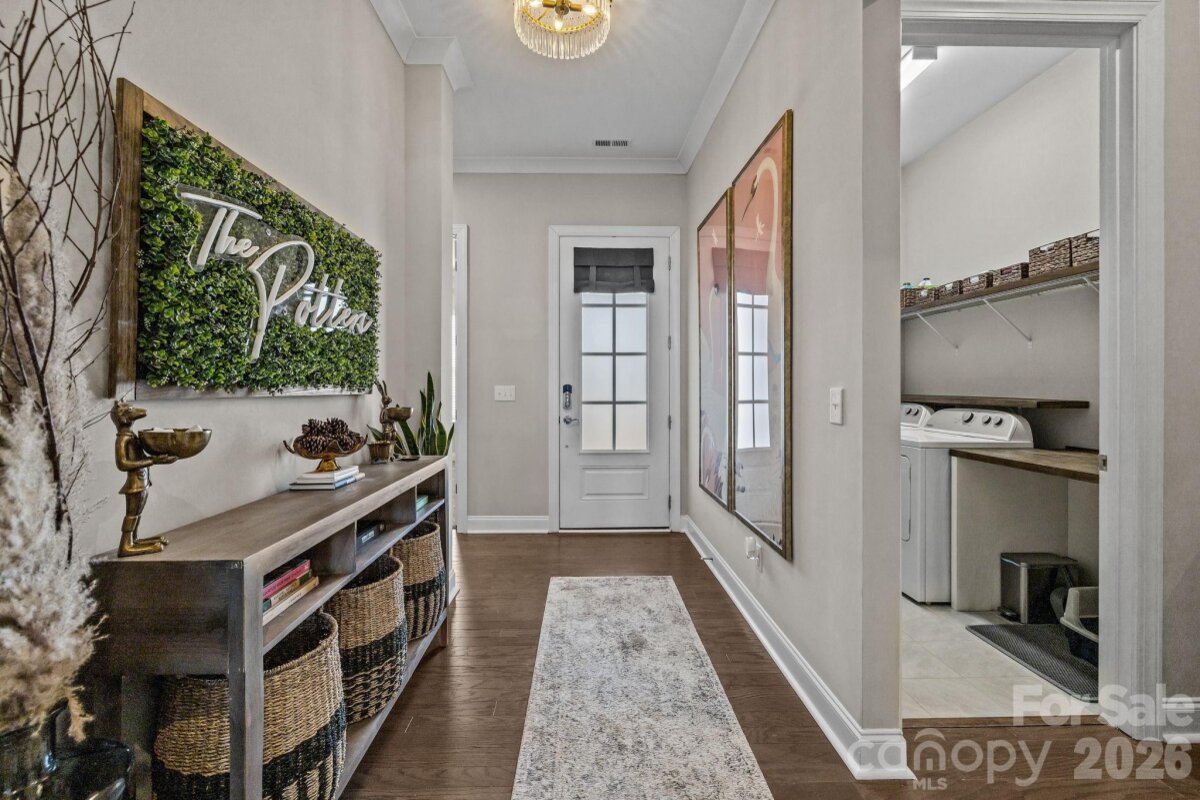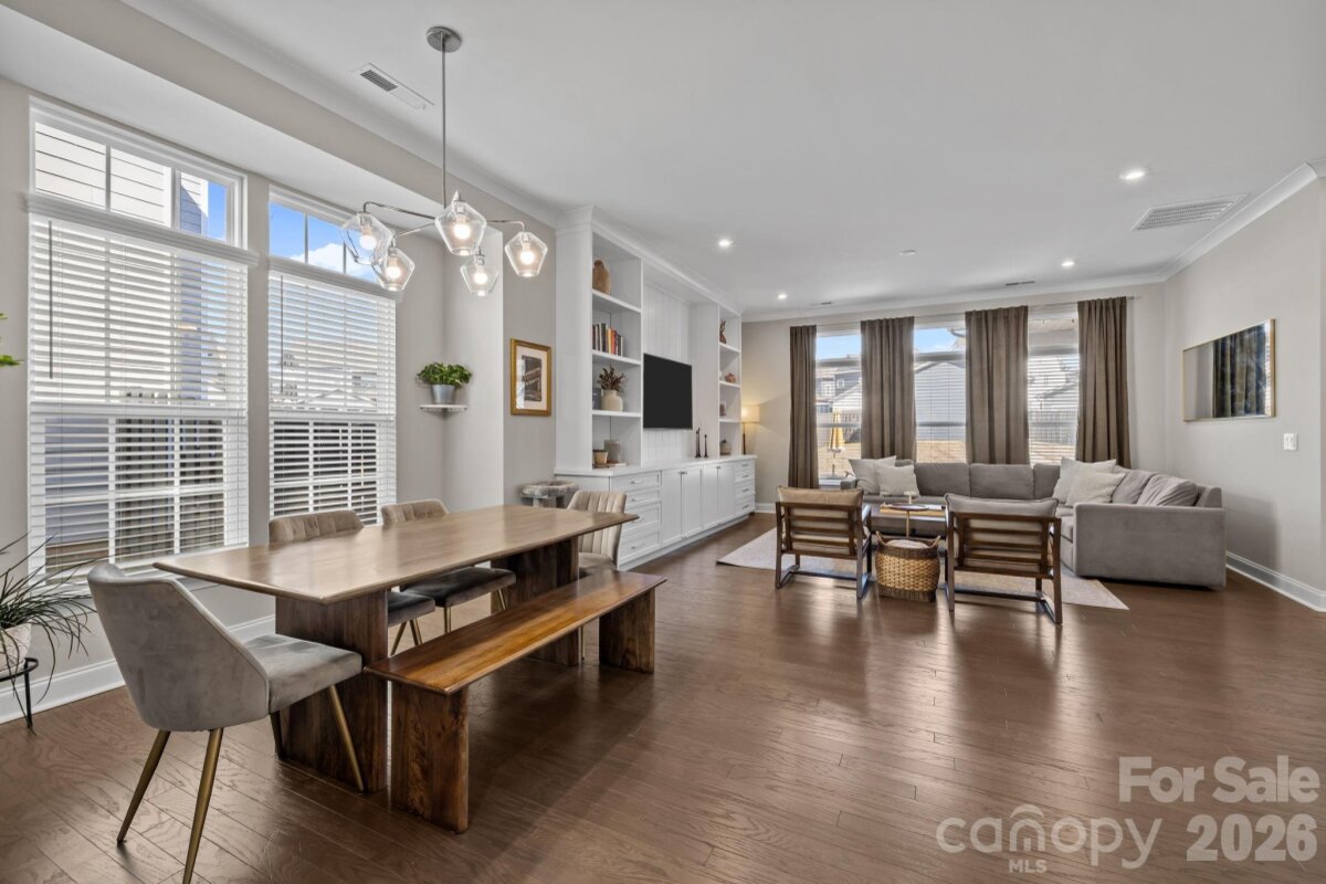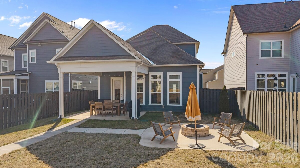Welcome home to the wonderful community of McCullough. Located minutes from downtown Pineville, with a short drive to I77 and 485, with a plethora of shopping, dining, and grocery options nearby, this home is ready for new owners! Meticulously maintained, and thoughtfully laid out, this home's floor plan features a luxurious owner's retreat on the main level, with a spa-like walk in shower! The laundry room is thoughtfully placed off of the main hallway into the home, with a large half bathroom for guests, then the room opens up to a gorgeous chef's kitchen with dining and living areas. Entertaining in this kitchen is a dream, with a large island, natural gas cooktop, and high end stainless appliances. The living room features custom built-ins and large windows with lots of natural light. Leading the way out back you have a beautiful setting with a fenced in yard, covered patio, and custom wood burning fire pit, capped off with the detached garage on the other side. Upstairs you'll find two more bedrooms, with a full bathroom, and a flex space that can be used in so many different ways. The neighborhood has miles of sidewalks, walking and biking trails, and the town of Pineville just completed a path from downtown that starts by the pool and clubhouse! There is a tennis court and four Pickleball courts that were just refinished and you can always find a partner to play with! There are several parks, playgrounds, and two pools along with many beautiful green areas. There is an active Social Committee that puts on neighborhood events year round. This home shows like a model, and will not last long! Schedule your showing today.