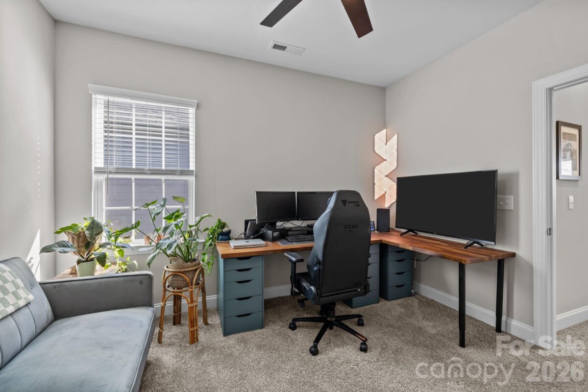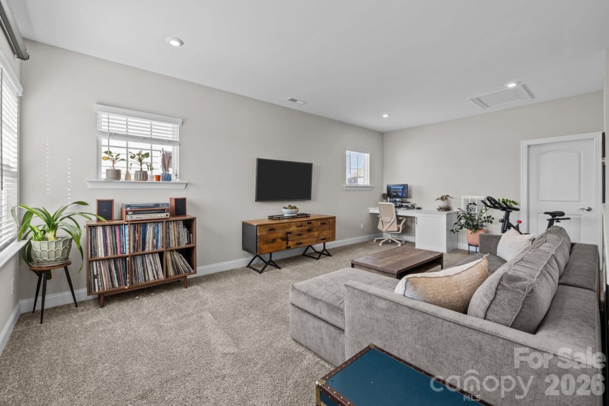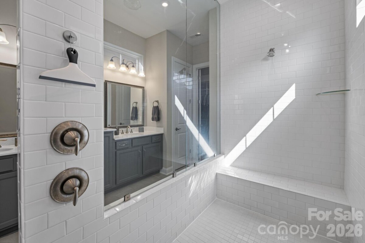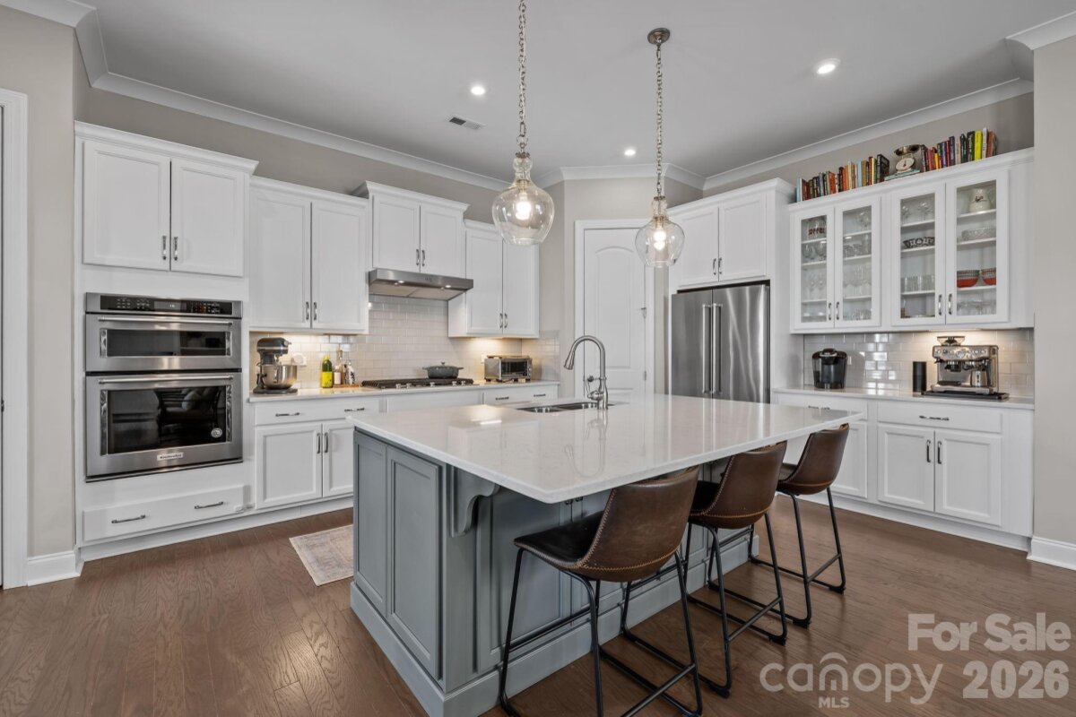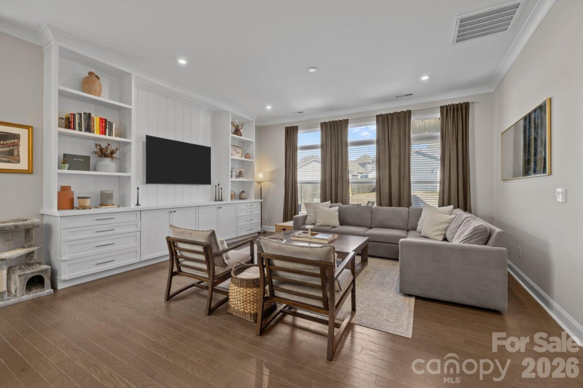 Welcome home to the wonderful community of McCullough. Located minutes from downtown Pineville, with a short drive to I77 and 485, with a plethora of shopping, dining, and grocery options nearby, this home is ready for new owners! Meticulously maintained, and thoughtfully laid out, this home's floor plan features a luxurious owner's retreat on the main level, with a spa-like walk in shower! The laundry room is thoughtfully placed off of the main hallway into the home, with a large half bathroom for guests, then the room opens up to a gorgeous chef's kitchen with dining and living areas. Entertaining in this kitchen is a dream, with a large island, natural gas cooktop, and high end stainless appliances. The living room features custom built-ins and large windows with lots of natural light. Leading the way out back you have a beautiful setting with a fenced in yard, covered patio, and custom wood burning fire pit, capped off with the detached garage on the other side. Upstairs you'll find two more bedrooms, with a full bathroom, and a flex space that can be used in so many different ways. The neighborhood has miles of sidewalks, walking and biking trails, and the town of Pineville just completed a path from downtown that starts by the pool and clubhouse! There is a tennis court and four Pickleball courts that were just refinished and you can always find a partner to play with! There are several parks, playgrounds, and two pools along with many beautiful green areas. There is an active Social Committee that puts on neighborhood events year round. This home shows like a model, and will not last long! Schedule your showing today.